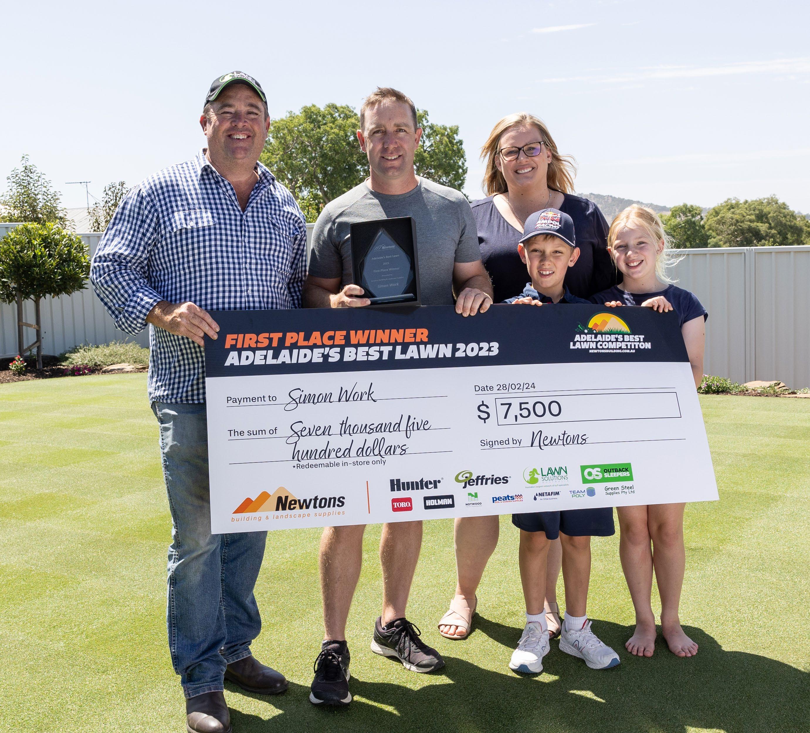 However, it was clear - the winner of the coveted Newtons Adelaide’s Best Lawn Competition had to be Simon Work from Mt Barker, who put in a huge amount of time and effort to maintain his beautiful lawn. Pristine from front lawn to back, complete with a putting green - he even inspired the whole family to get involved in his lawn endeavours! His kids were just as excited and
