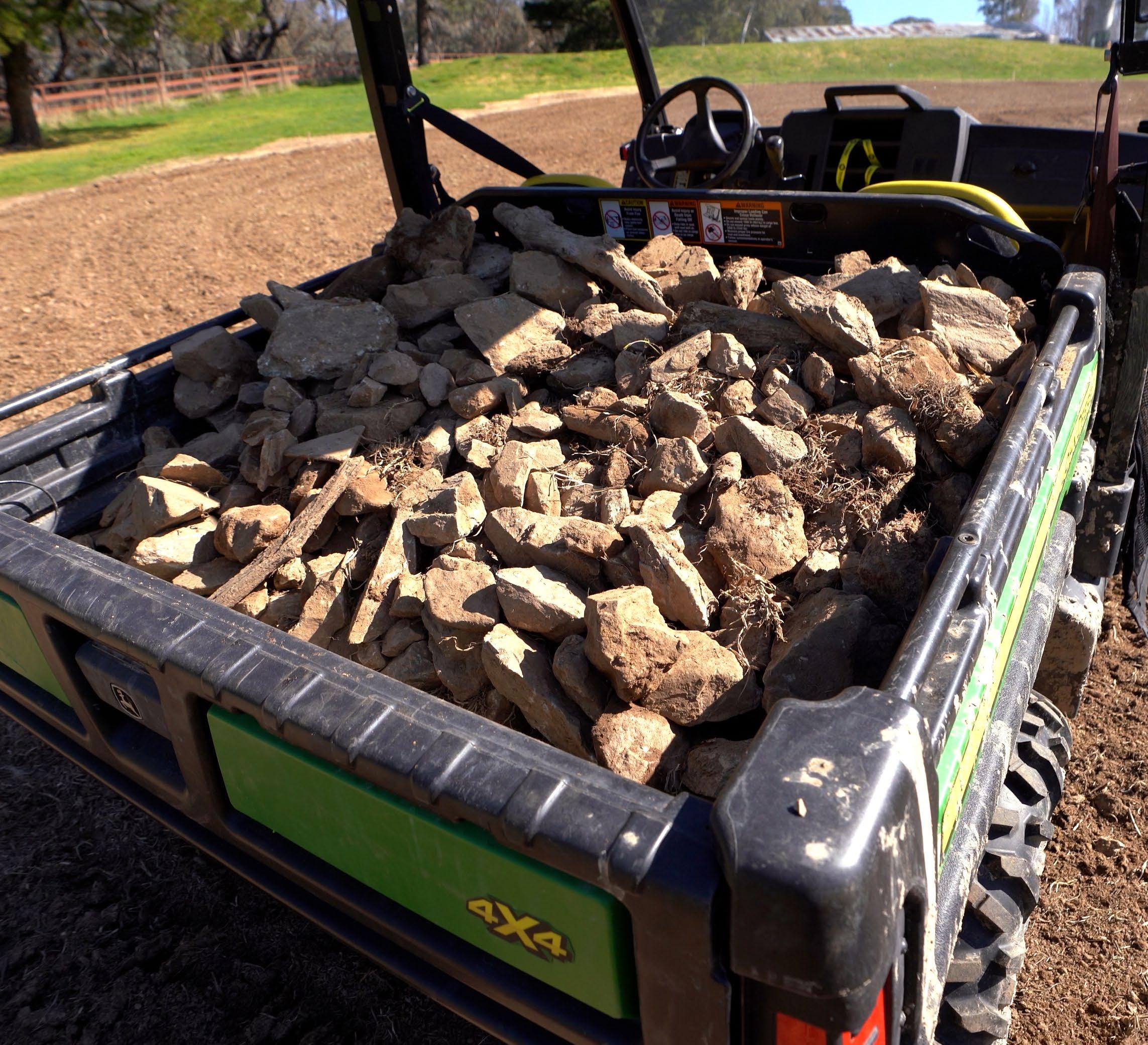 Prepping this area involved several steps. Firstly, I had to clear out all the rocks in the area. There were some decent-sized boulders and a few rock shelves, so it was a bigger task than I had originally expected. I used my John Deere E36ZS Excavator to help dig the rocks out and tidy up the area.