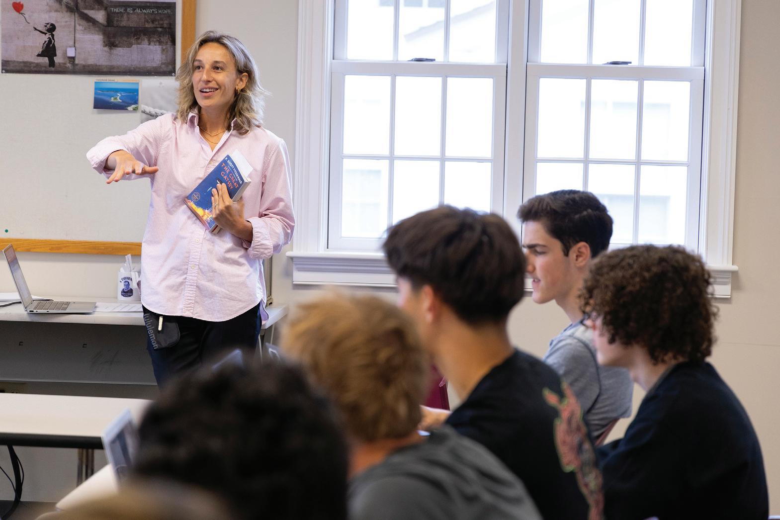 English Composition is a dynamic year-long course that probes the essence and influence of narrative fiction, guided by questions like: What record does a novel or fictional story create? What impact can a novel have? How does literary theory illuminate these inquiries? In the fall, we delve into the American Dream, critically assessing its accessibility, fairness, and value through works like F. Scott Fitzgerald’s The Great Gatsby and Colson Whitehead’s The Nickel Boys. The winter term deepens our exploration with Tim O’Brien’s The Things They Carried, when students dissect narrative contrasts to uncover underlying truths, enhancing their analytical and creative skills through discussions, analyses, and personal storytelling. Spring focuses on the impact of personal and societal perspectives on literary interpretation, featuring a guided choice reading unit that encourages reflection on the resonance between literature and life. Throughout the course, we strive to reveal and understand the intricate connections among texts, themes, and broader societal issues, aiming to demonstrate how thoughtful analysis and literature can contribute to the greater good.