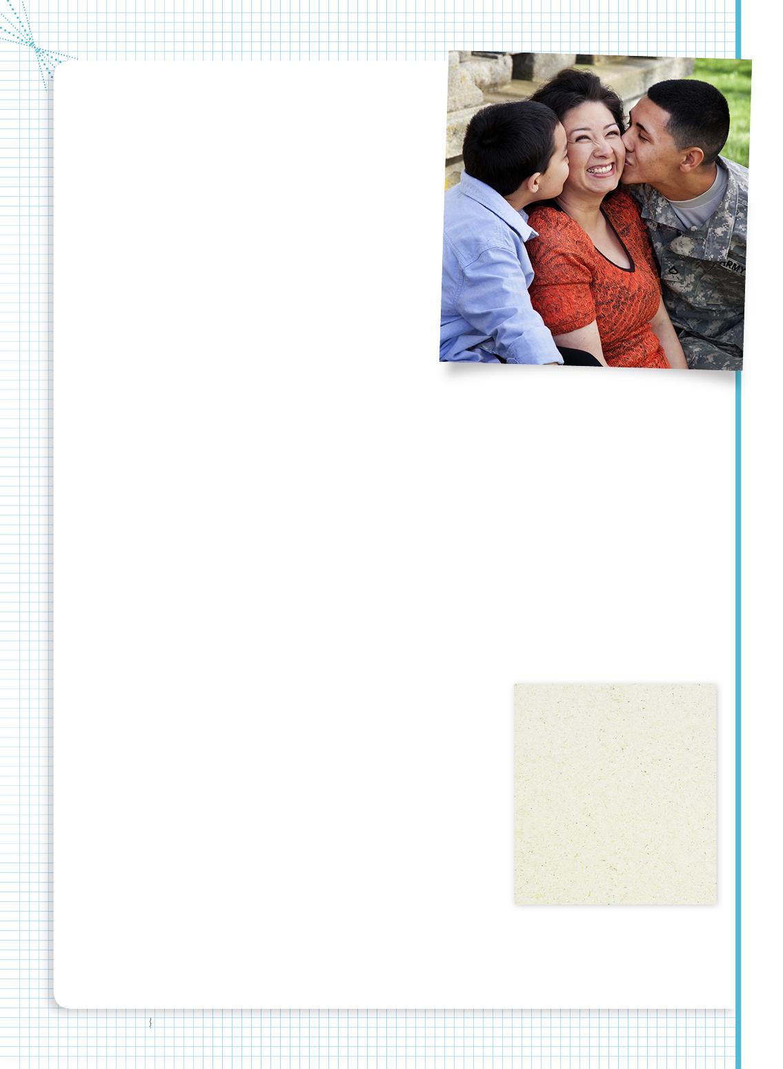 Though she still needs some assistance for food to help stretch her military salary, her life finally feels stable—a testament to her persistence and work ethic. “My kids have seen me fall, but they know that I always get back up,” says Lucy. “I’m a combat veteran, I put myself through school and I overcame illnesses. I’m still here, and w ill never stop tr y ing to make things better for myself and my family.” n
