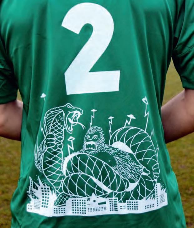 HailKingKong “Fortheback, I tookthewhole fantasy monstertheme a bit furtherandhad KingKong fighting off a giant snake. Why not,eh? Prettyunusual for a footiekit, I admit,buttheguys loved it themoment they sawit. I onlyneeded abouttwo days to finish it.Ittook way longertogettheshirtsactuallymade!”