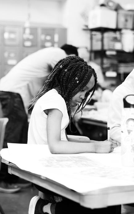 For youth at Van Go, their employment is temporary and meant to provide them with a supportive foundation from which they can continue in a direction of their own choosing. That structure is also reflected in the process of art-making in general. It’s like a “Choose Your Own Adventure” story. Apprentice Artists are given instruction in fundamentals and access to materials, but they must determine on their own how they will be applied. If a drawing doesn’t come out as intended, they can rework it in another direction. When the results are as hoped, though, a small win helps pave the path for future successful decisions. Making art develops independence through goal-setting, taking initiative, problem-solving, “stick-to-itiveness” and self-evaluation. The impact of art on Van Go participants reaches well beyond the murals, benches or handmade gifts the artists create. Each project is an incremental story of personal growth, where these young people find their place and value in their community. Much like taking a rough sketch and developing it into a polished work of art, Apprentice Artists are able to transform themselves by learning new skills, developing confidence, overcoming obstacles and making important decisions. Art can be used as a vehicle to better equip young people with the tools to forge a path uniquely for themselves. p