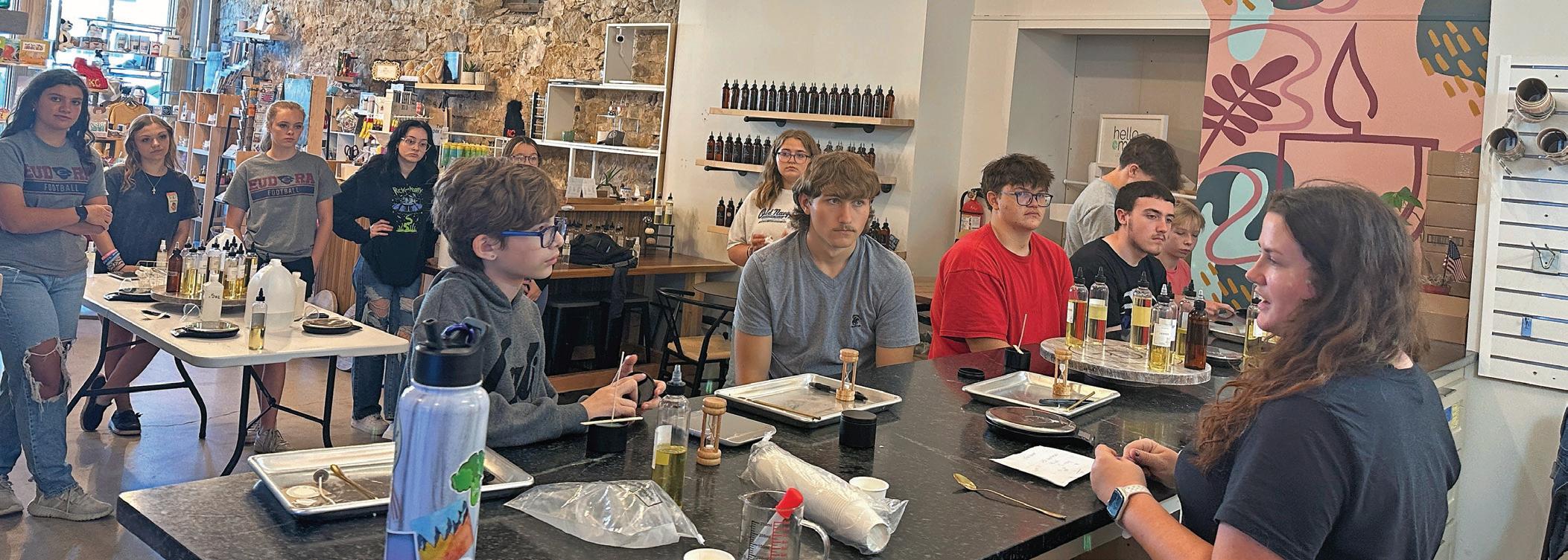 JAG-K students recently visited Fuse Candle Bar in Eudora to gain insight into the workings of a small business. During their visit, they had the opportunity to meet the owner and learn about entrepreneurship. The students also got hands-on experience by creating their own personalized candles and sprays, making the trip both educational and creative. Throughout the school year, JAG-K students are able to partake in various community service projects, classroom activities, and listen to guest speakers from around the area.