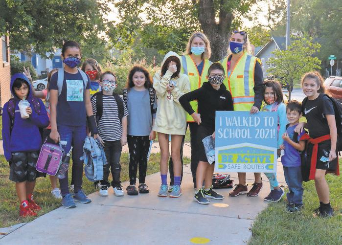 Students and families enjoyed the October 6 National Walk to School Day with the support of community partners, including Safe Routes to School, Lawrence Police Department, and KU Spirit Squad.