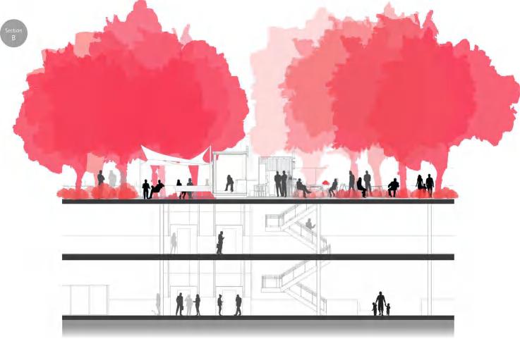 The core of the activity center is still a large-capacity public service parking lot. On the basis of the original functions, we have added a public space that serves the community. In addition to the market, the top floor of the building also has developed gardens and green spaces. These depend on the seasonal changes that the venue can adapt to and the content of the activities arranged.