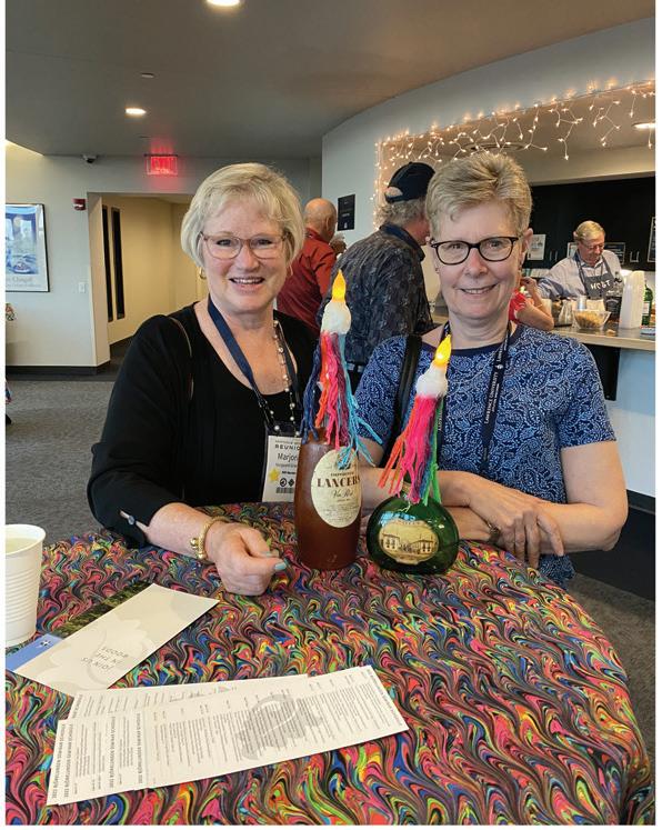 John D. Miller and Celoris Hackbart Miller ’61 • Celoris and I find ourselves, in our ’80s, still quite active in the musical life of Winnipeg. I retired from the Winnipeg Symphony in ’03 but haven’t yet retired from the trombone. Sometimes I play the bass bone, sometimes the red plastic (great for Dixieland!). I play mainly in a Legion band and a 16-piece jazz band. She does some church music and is in demand as accompanist for recitals and our yearly music festival. Our vocal group, the Miller Brew (the two of us, our five children and two in-law children) competed for a number of years in that festival. We are doing a bit of travelling again but are happy to be near our kids (5+5), grandkids (9+2), & greatgrands (2) Go Pack!
