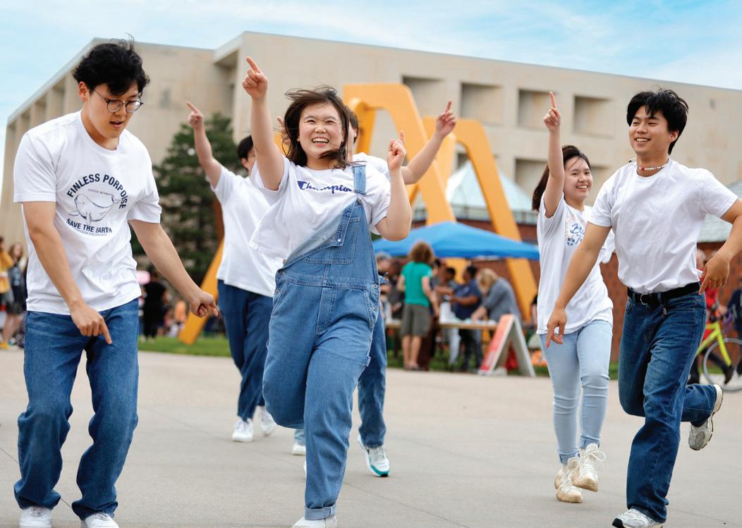 On Main Hall Green, the centerpiece of campus, you’ll find students from all backgrounds frisbeeing, picnicking, stargazing, hammocking, snowmanbuilding, Instagramming, TikToking, and, of course, music playing.