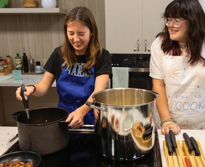 On a weeknight in Fox Commons, long after most classrooms have gone quiet, the PreHealth Commons is still awake. Lights glow from study rooms. Laptops hum over group projects. In the demonstration kitchen, a few students laugh as they test a new, nutritious one-pot recipe. For neuroscience major Taylor Svoboda ’26, it feels like a bridge to the future.