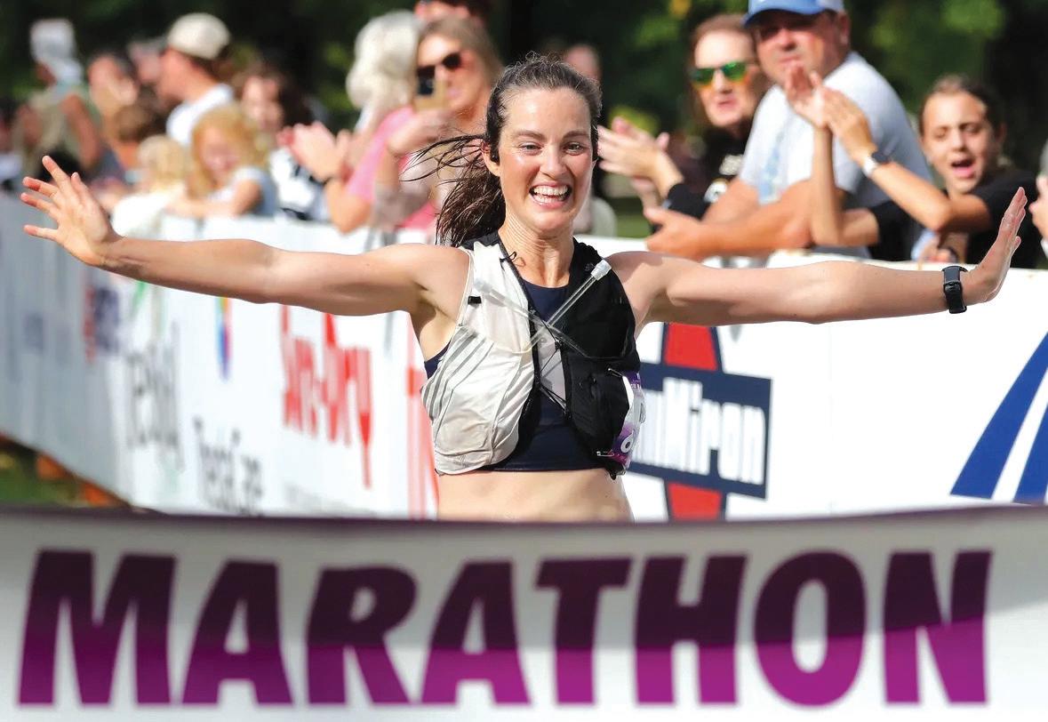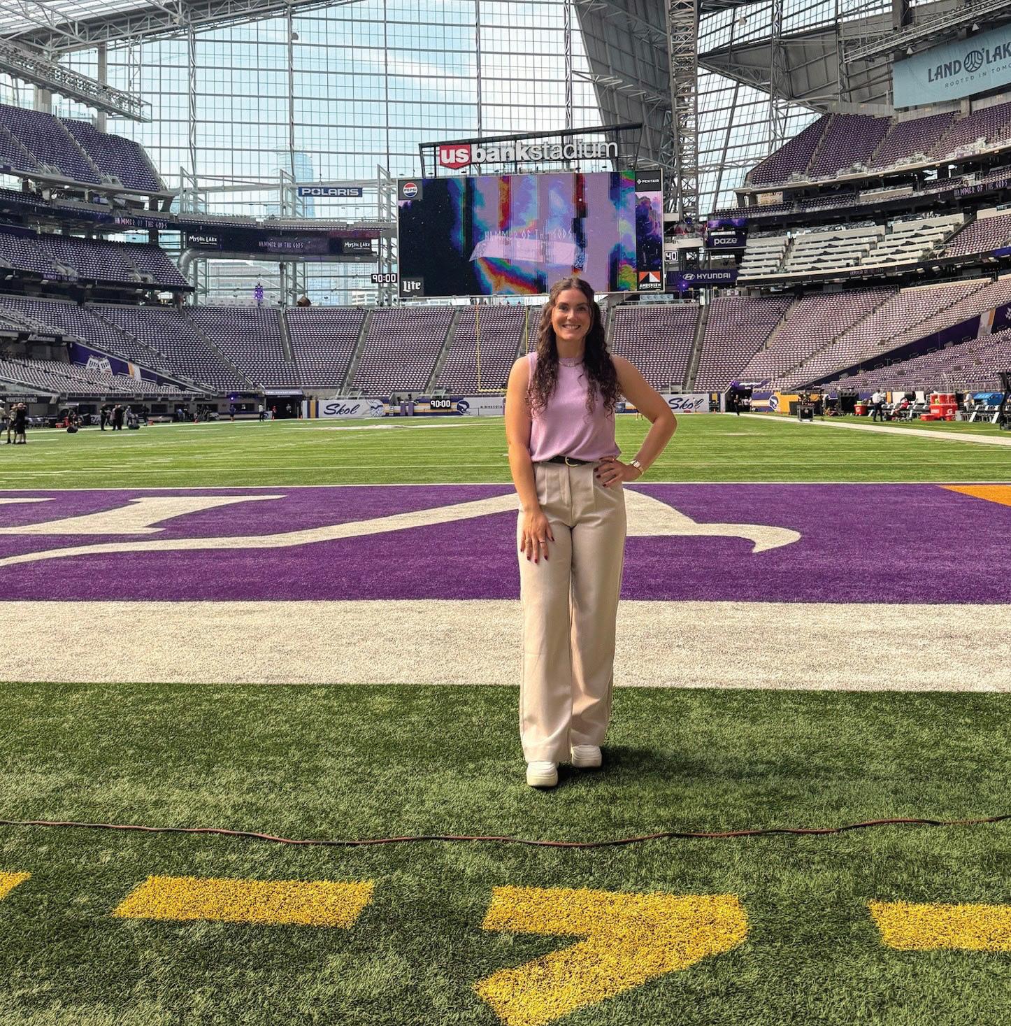 With a heart in hand, Erica Grube ’26 takes the field with the Lawrence University women’s soccer team during its annual Breast Cancer Awareness Game.