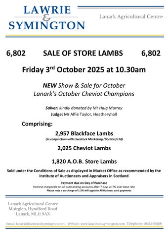 (In conjunction with Livestock Marketing (Borders) Ltd) Also, ALL OTHER CLASSES OF STORE LAMBS