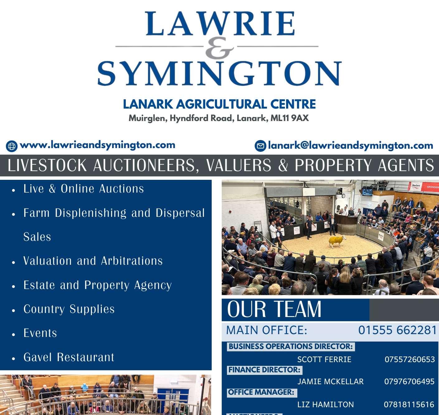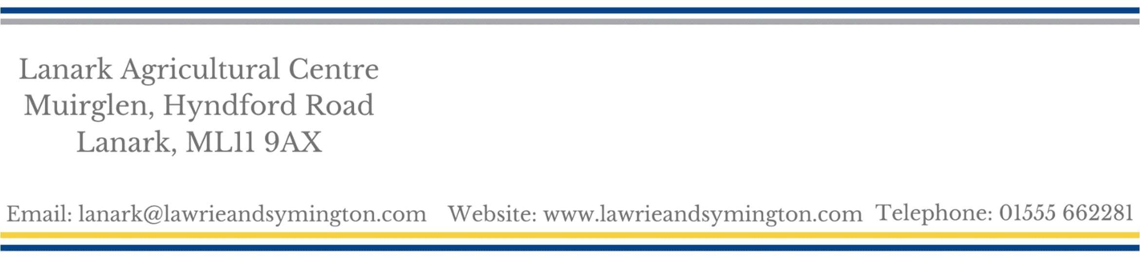 ONLINE TIMED AUCTION SALE OF TRACTORS, FARM IMPLEMENTS AND MACHINERY (Bidding Opens: Wed at 12noon / Bidding Closes: Thur from 12noon) / Further Details: Sandy Moore or Aileen Simpson / Entries to: implements@lawrieandsymington.com or 07918 384360