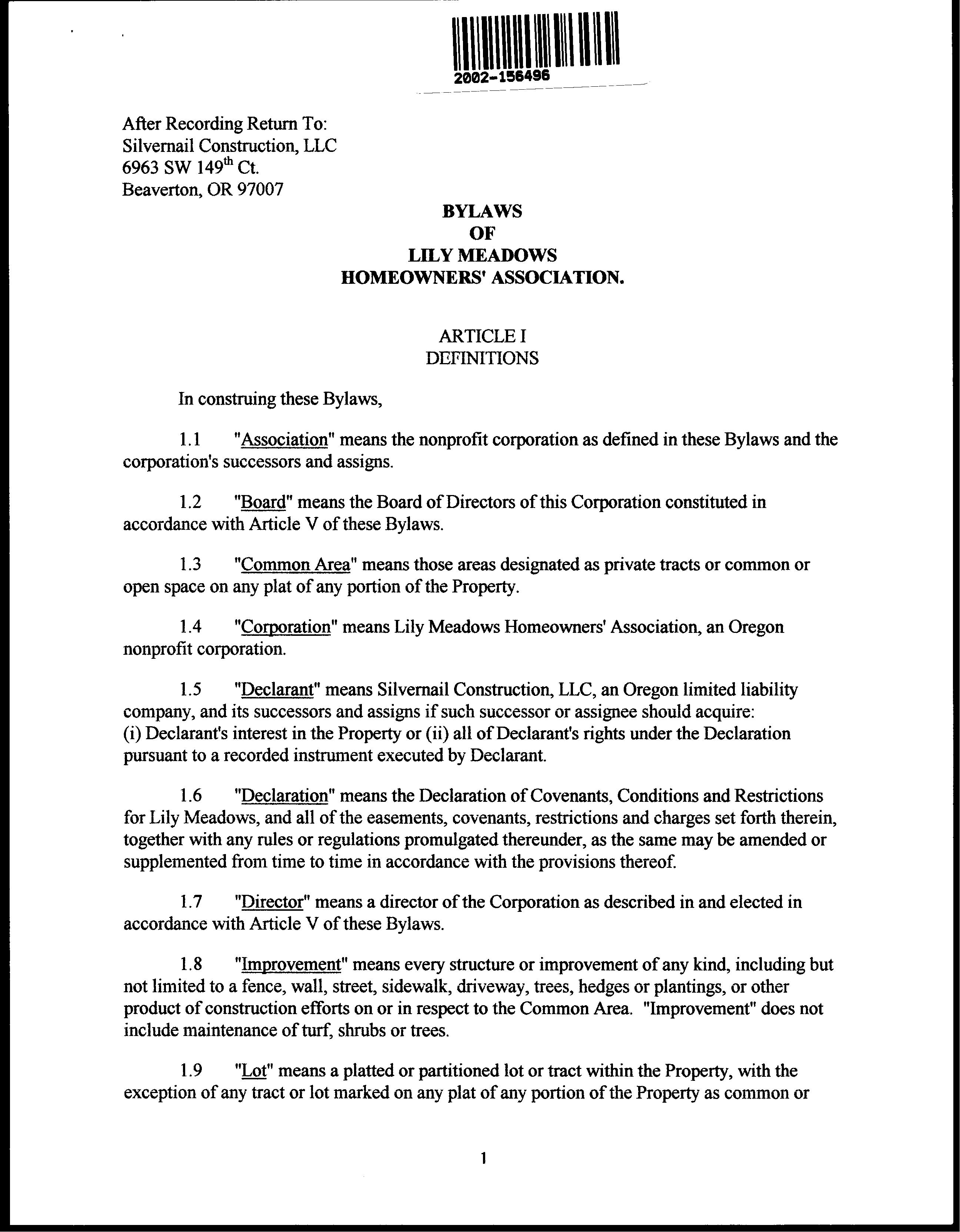 Omitted from the attached document is any covenant or restriction that is based upon, but not necessarily limited to, race, color, religion, sex, sexual orientation, familial status, marital status, disability, handicap, national origin, ancestry, source of income, gender, gender identity, gender expression, medical condition or genetic information, as set forth in applicable state or federal law, except to the extent that such covenant or restriction is permitted by applicable law. Oregon Version 20150707