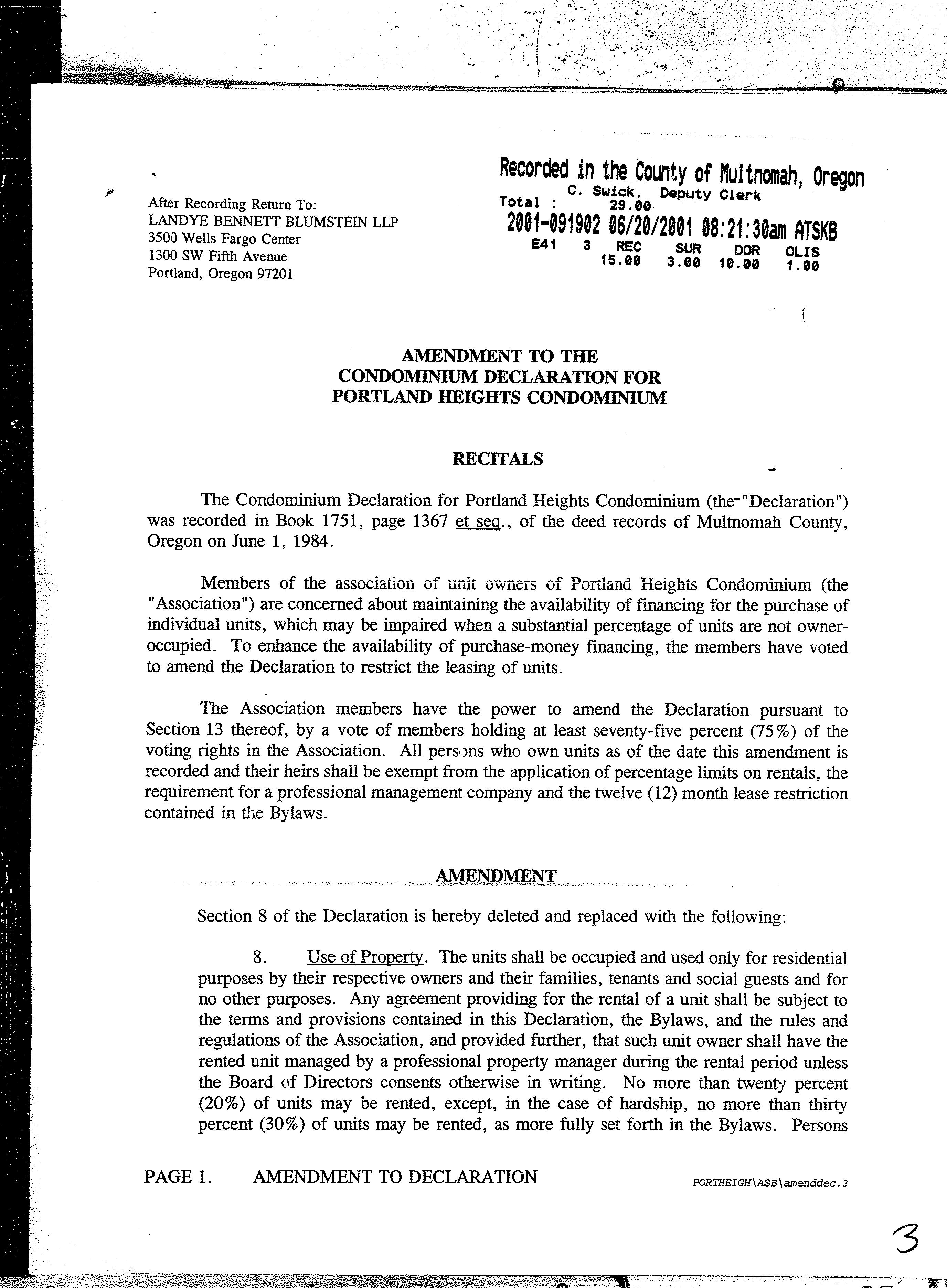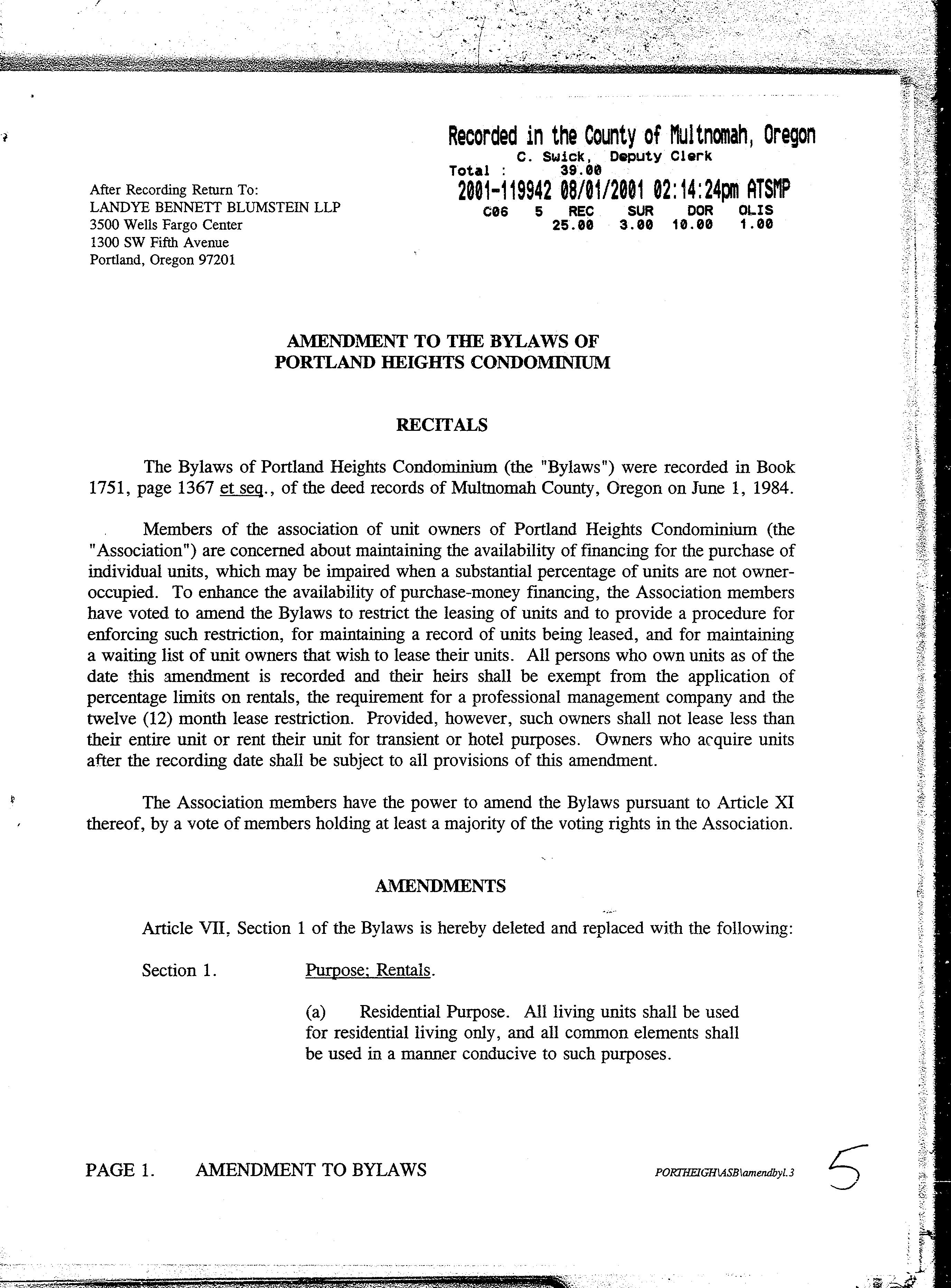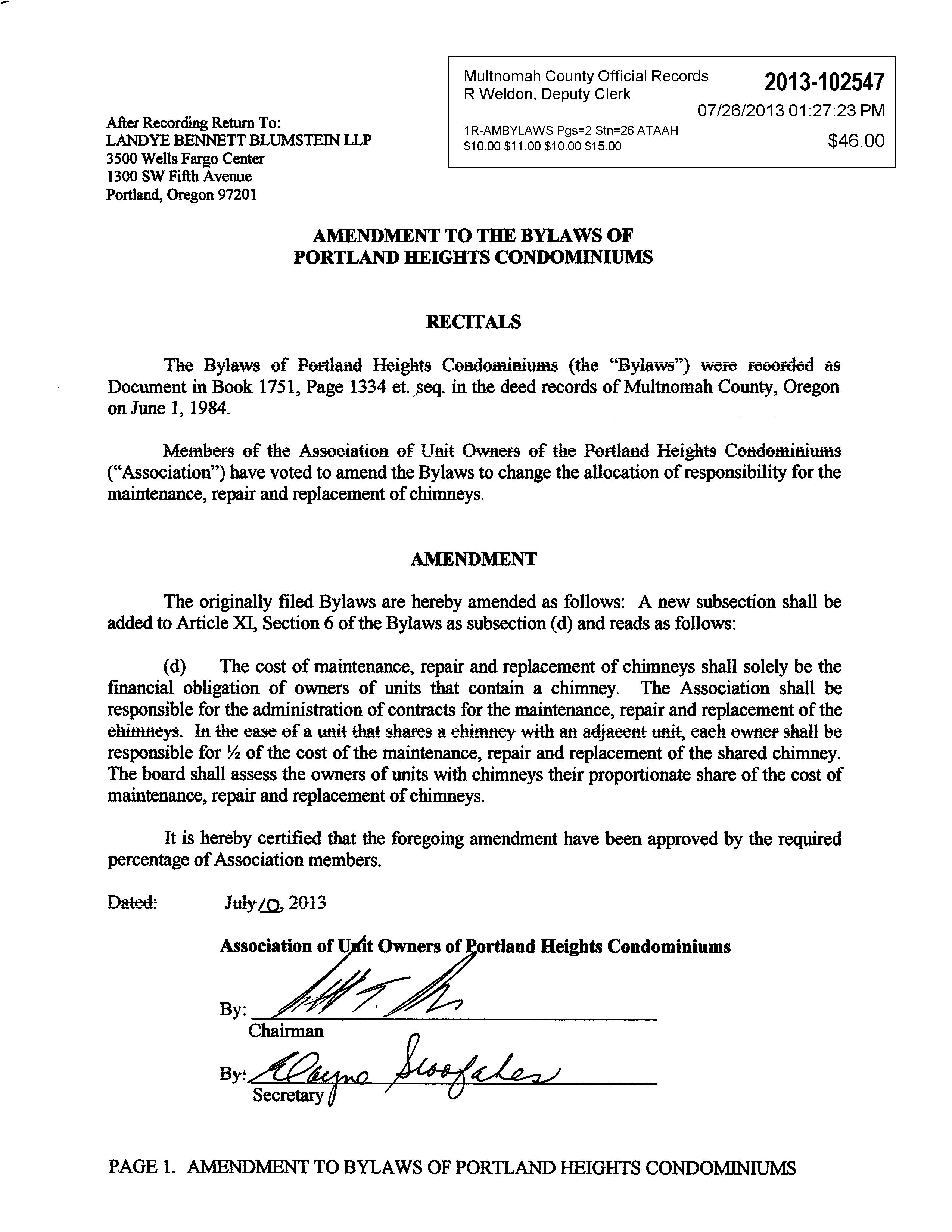 Omitted from the attached document is any covenant or restriction that is based upon, but not necessarily limited to, race, color, religion, sex, sexual orientation, familial status, marital status, disability, handicap, national origin, ancestry, source of income, gender, gender identity, gender expression, medical condition or genetic information, as set forth in applicable state or federal law, except to the extent that such covenant or restriction is permitted by applicable law. Oregon Version 20150707