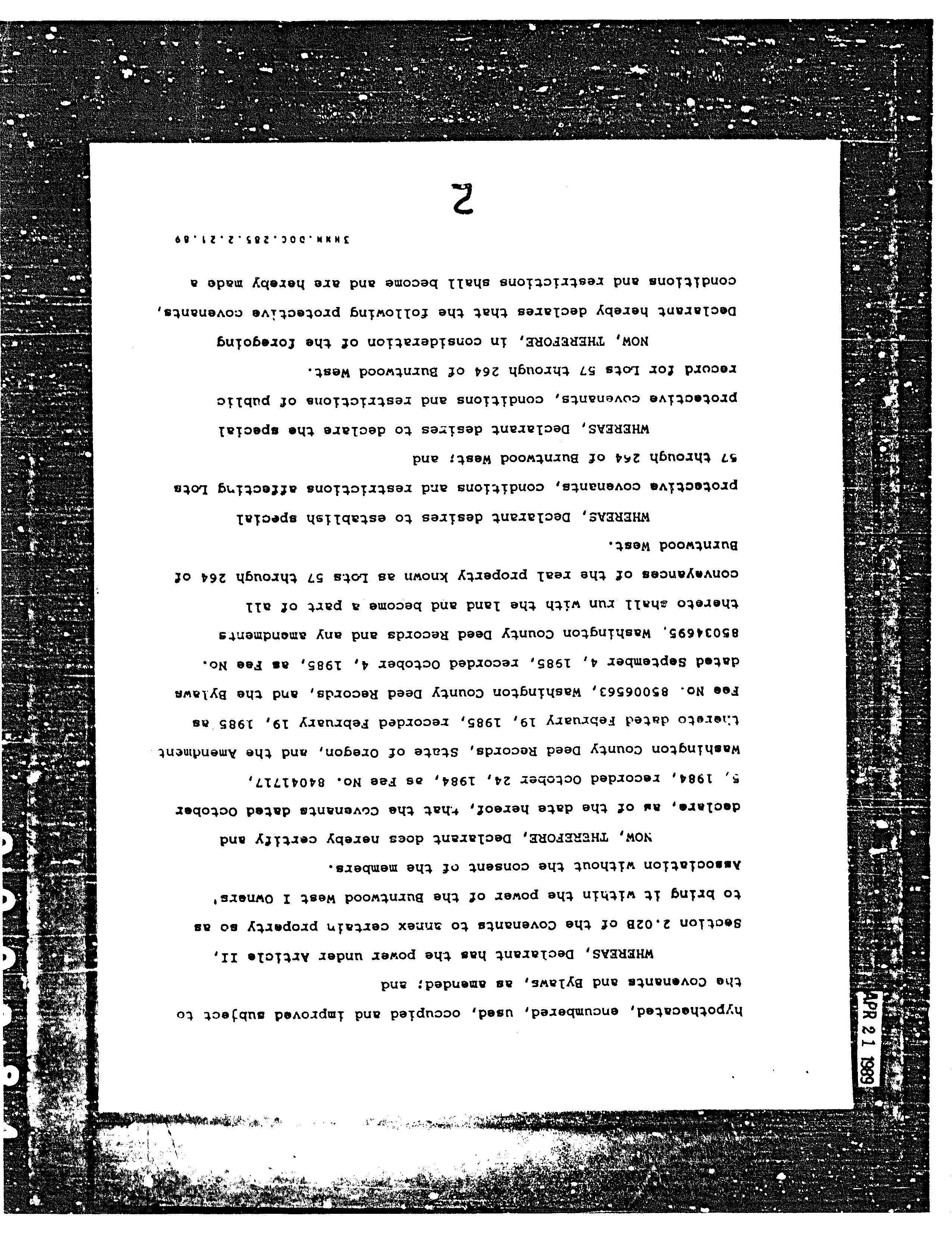 Omitted from the attached document is any covenant or restriction that is based upon, but not necessarily limited to, race, color, religion, sex, sexual orientation, familial status, marital status, disability, handicap, national origin, ancestry, source of income, gender, gender identity, gender expression, medical condition or genetic information, as set forth in applicable state or federal law, except to the extent that such covenant or restriction is permitted by applicable law. Oregon Version 20150707