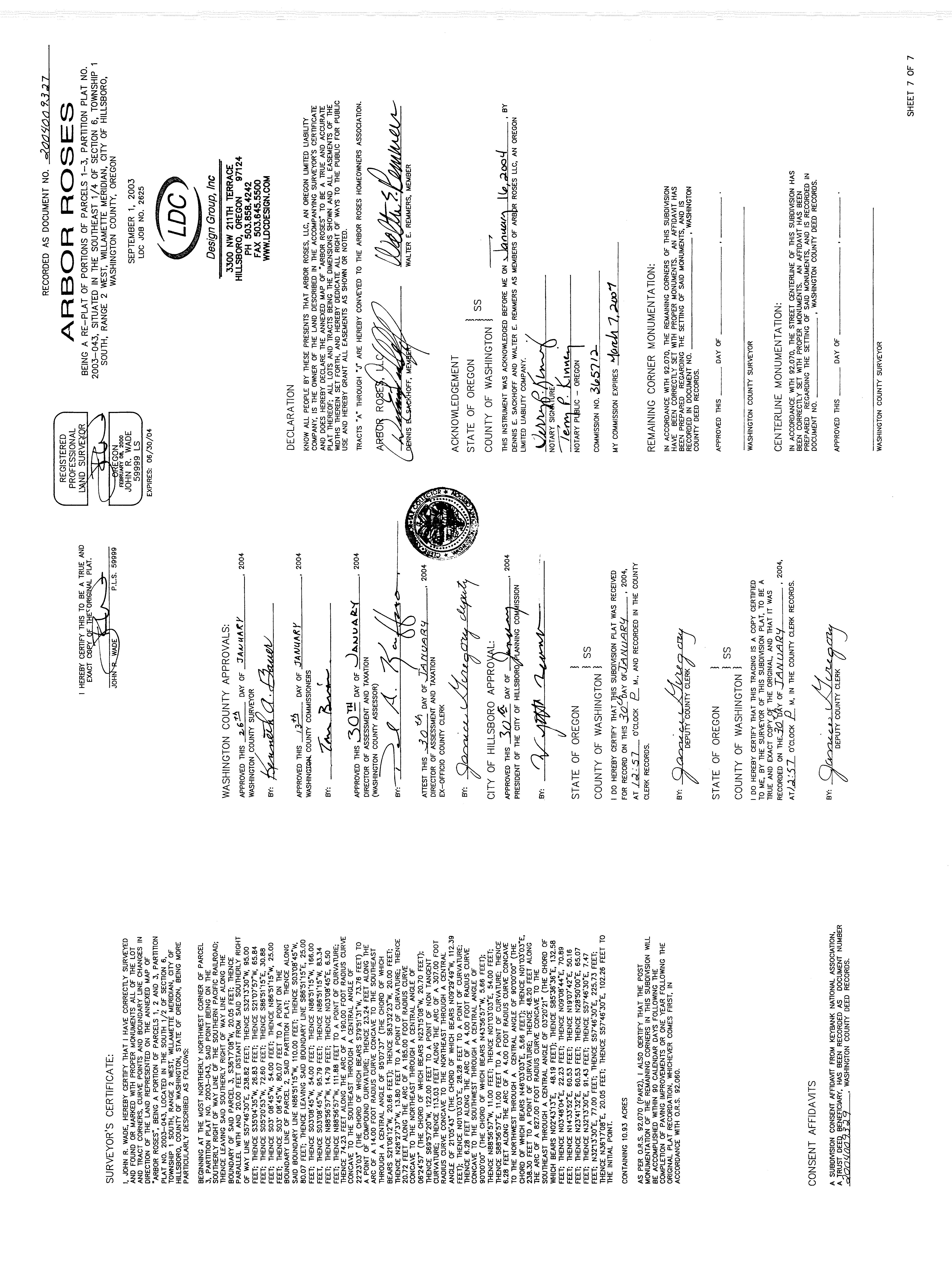 Lt 1, 3 PP 2003-43 6/25/2003 Full 1/26/2004