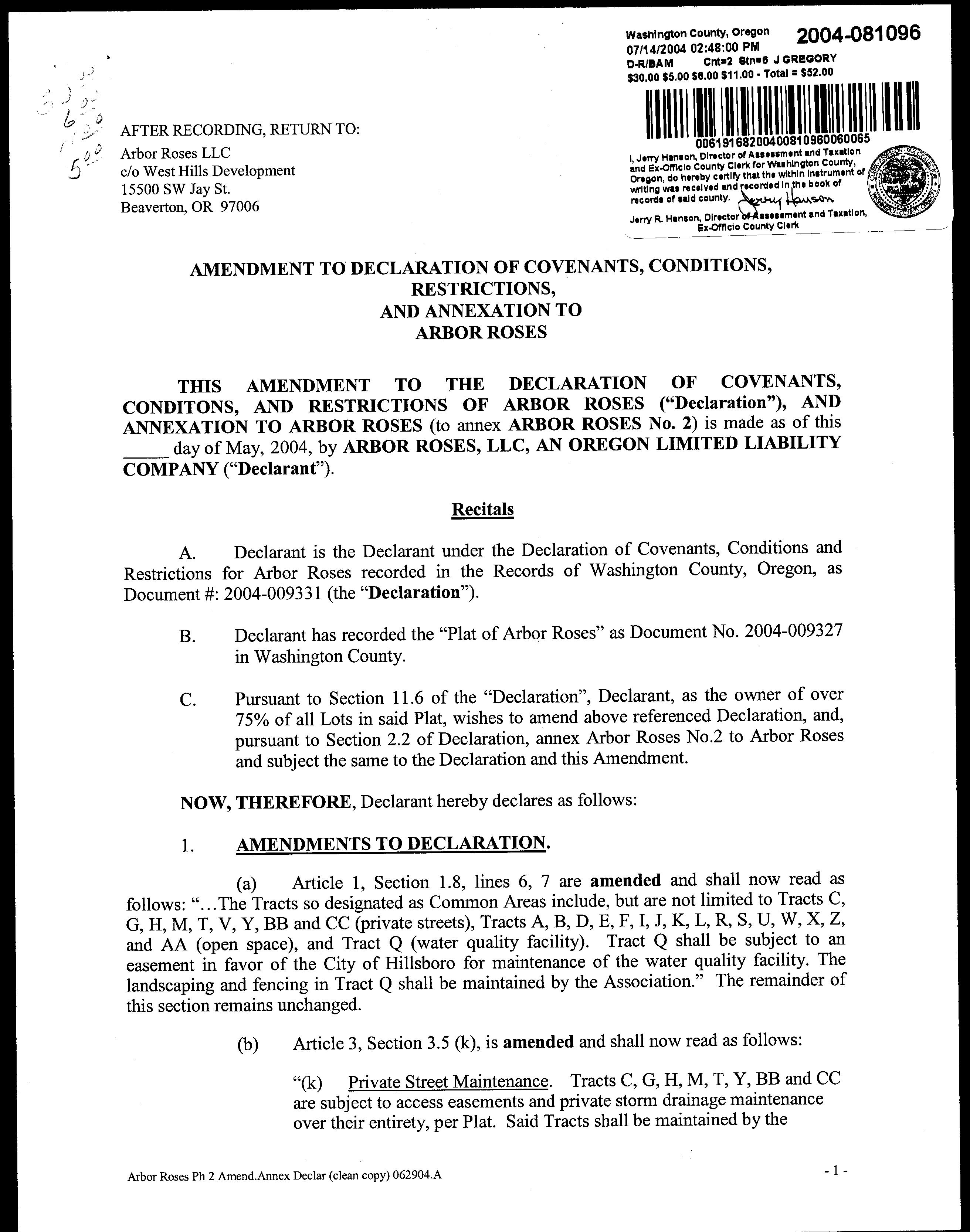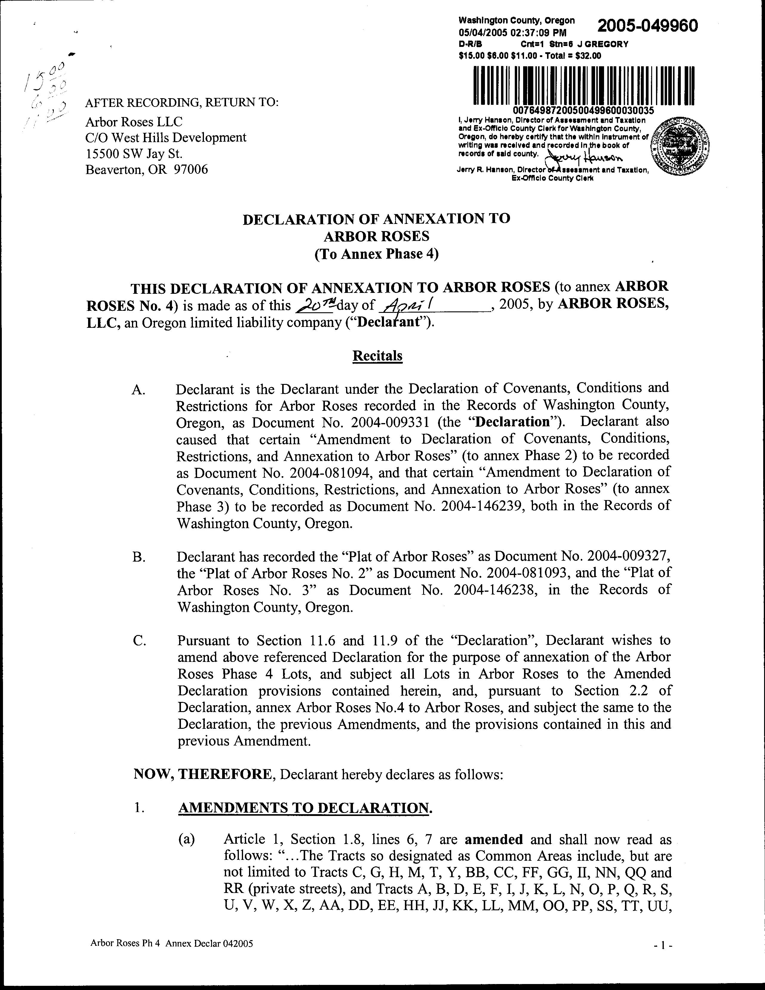 WEST HILLS DEVELOPMENT CO ARBOR HOLDING CORP(+1)