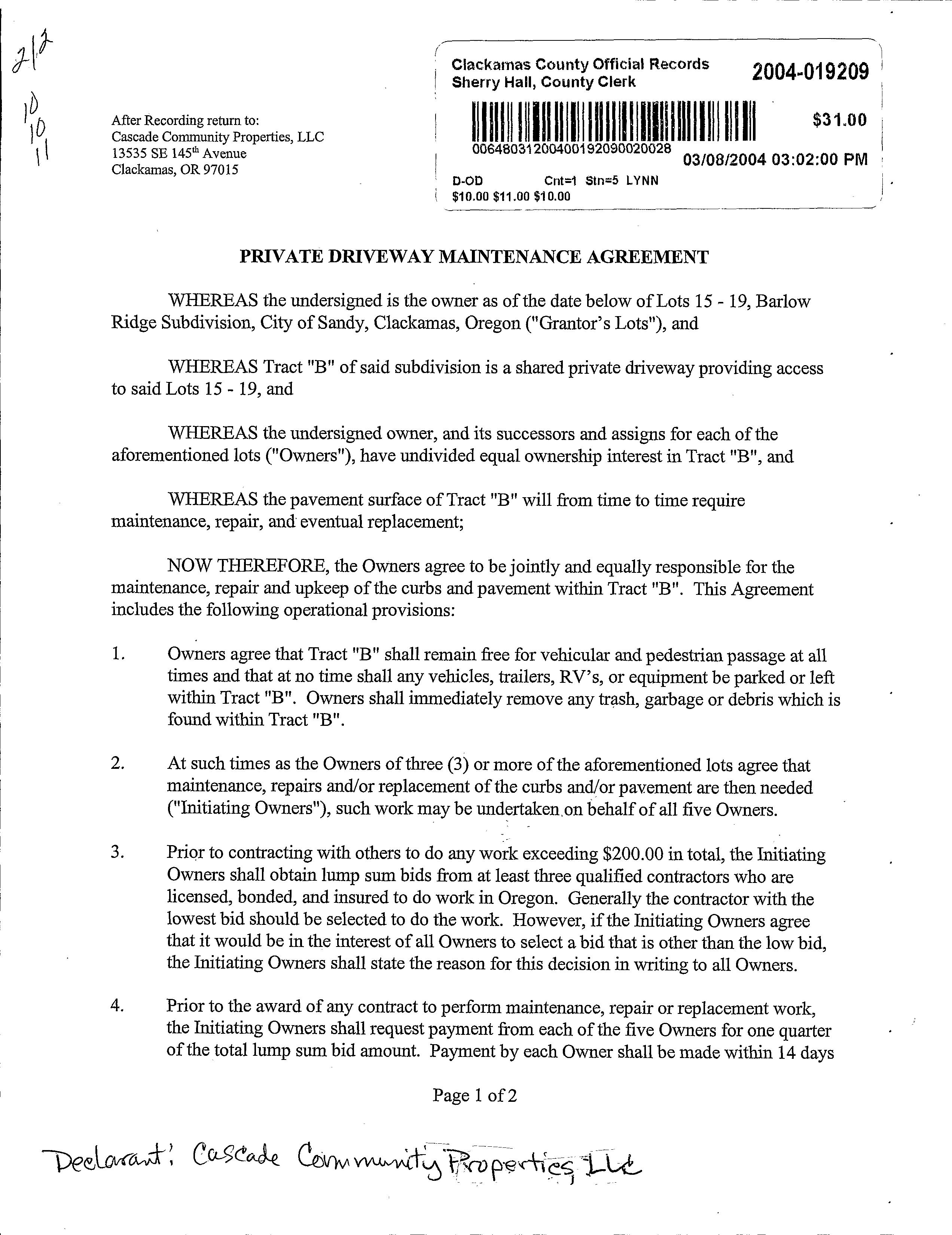 CCR's - Barlow Ridge