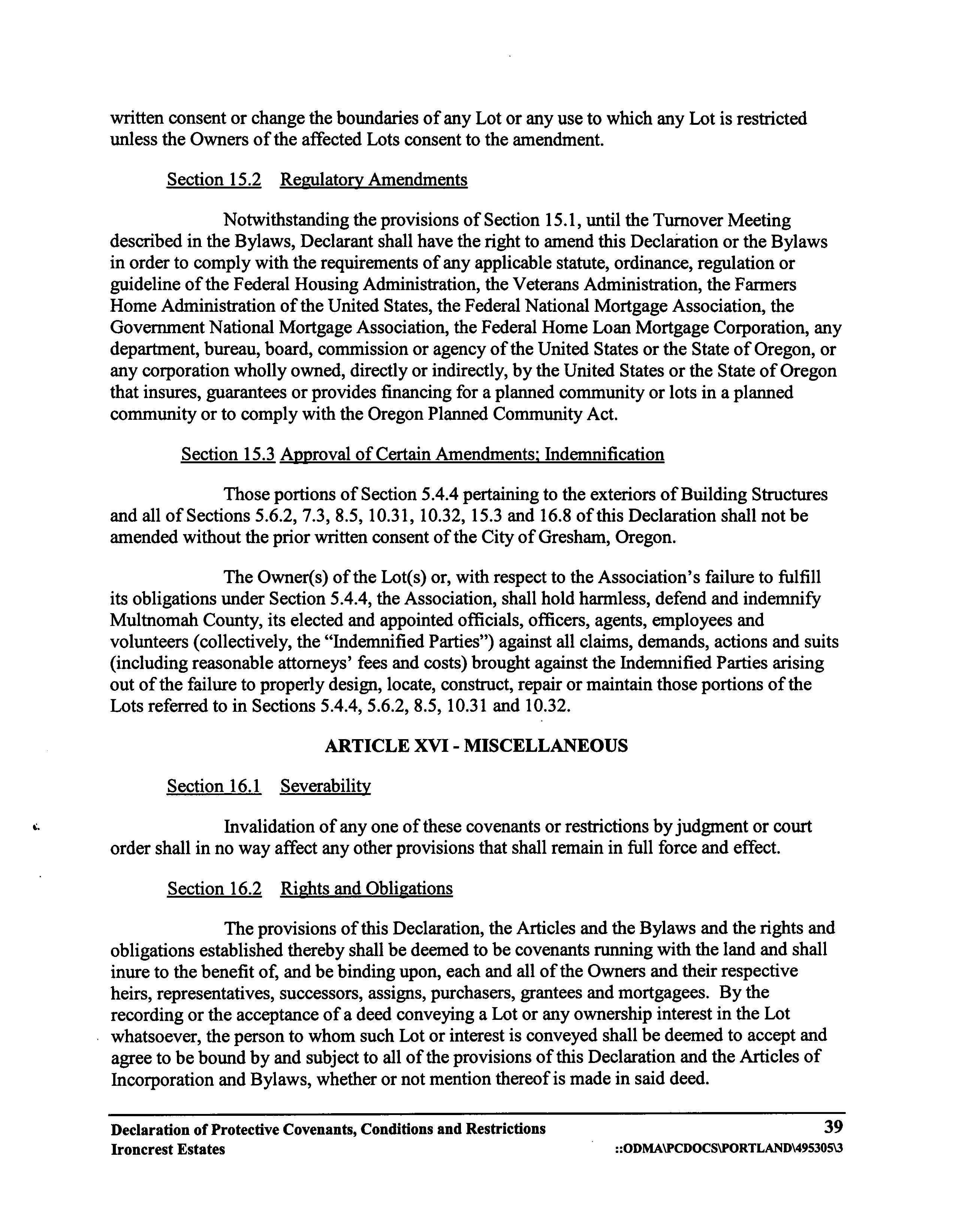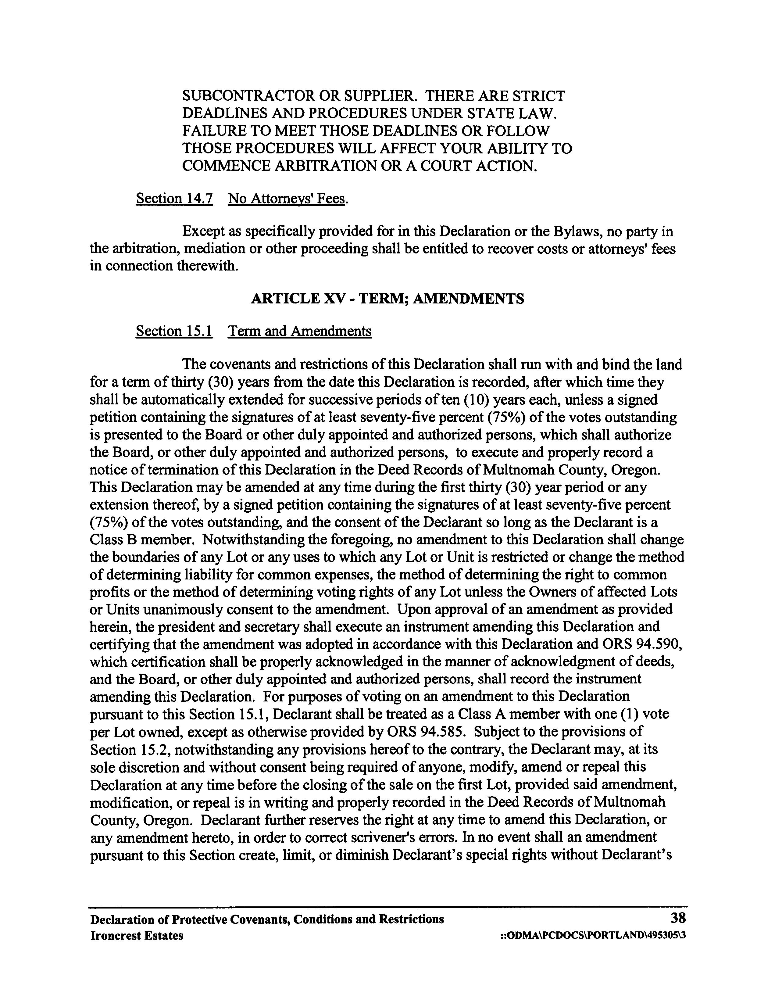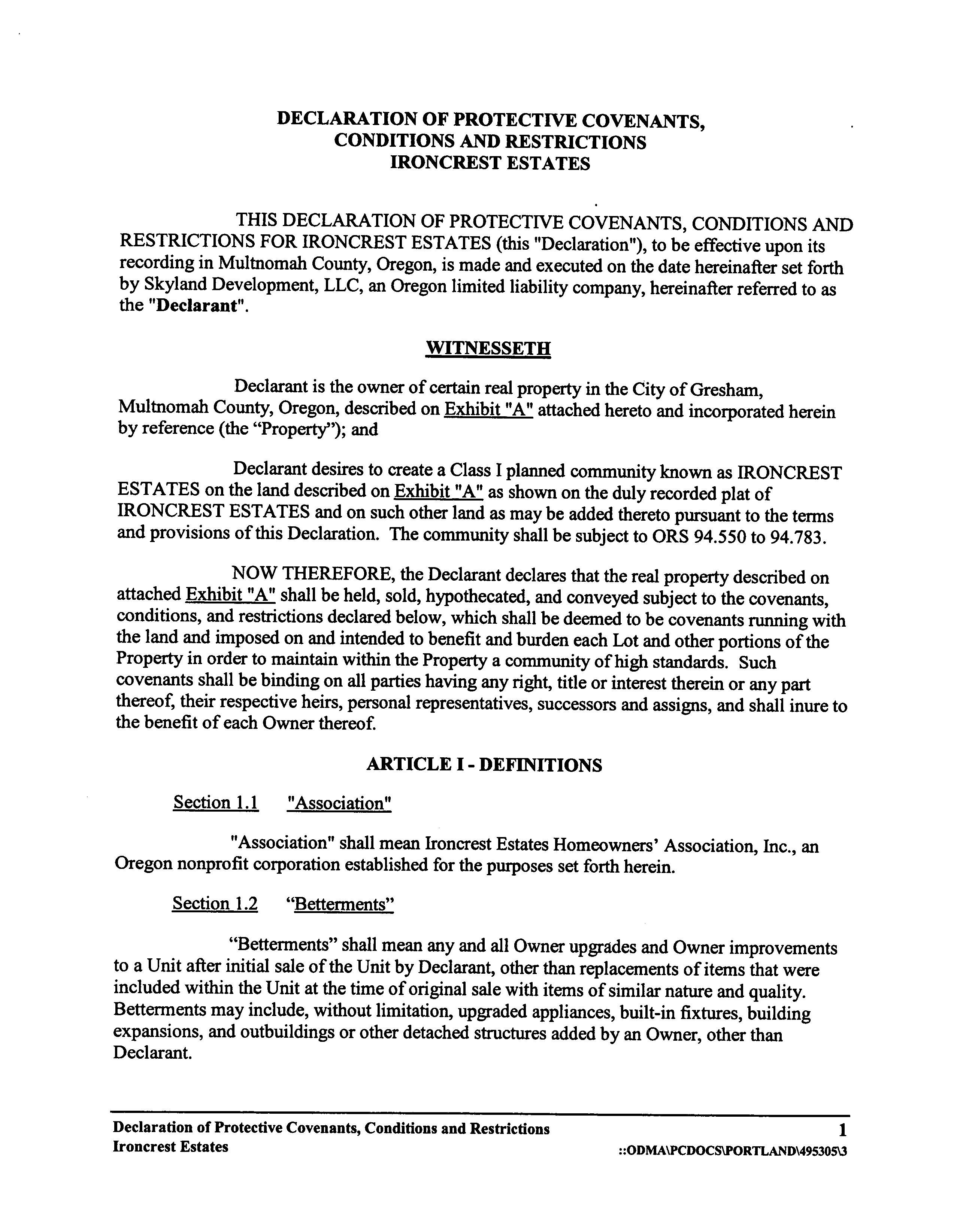 CCR's - Ironcrest Estates
