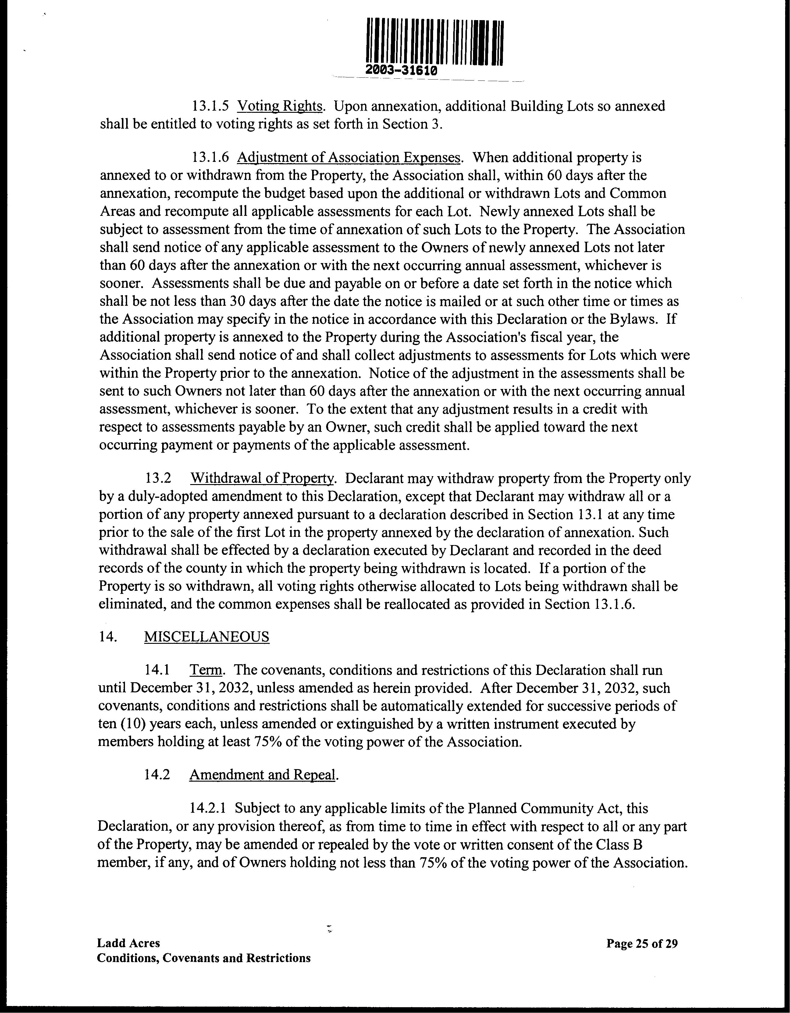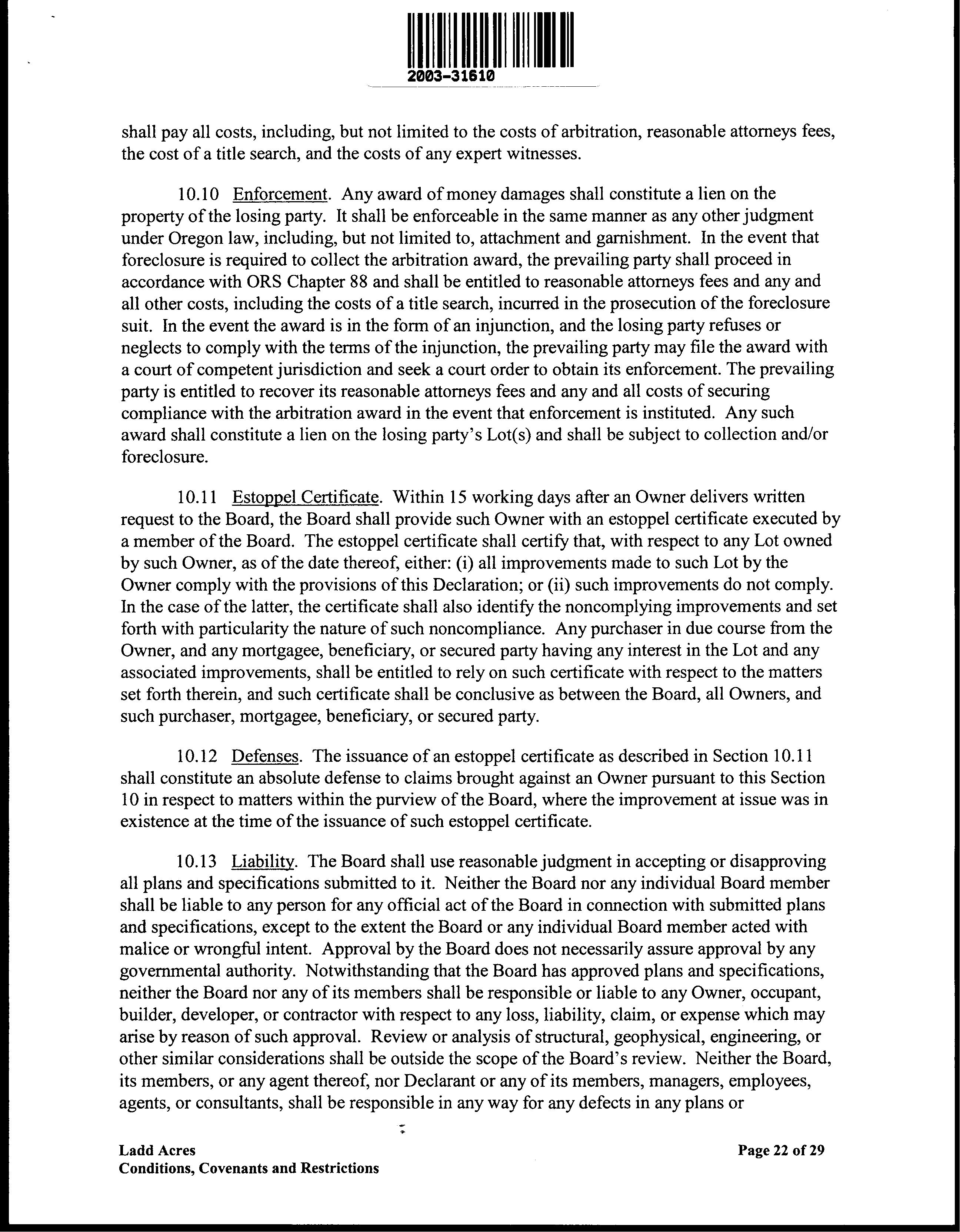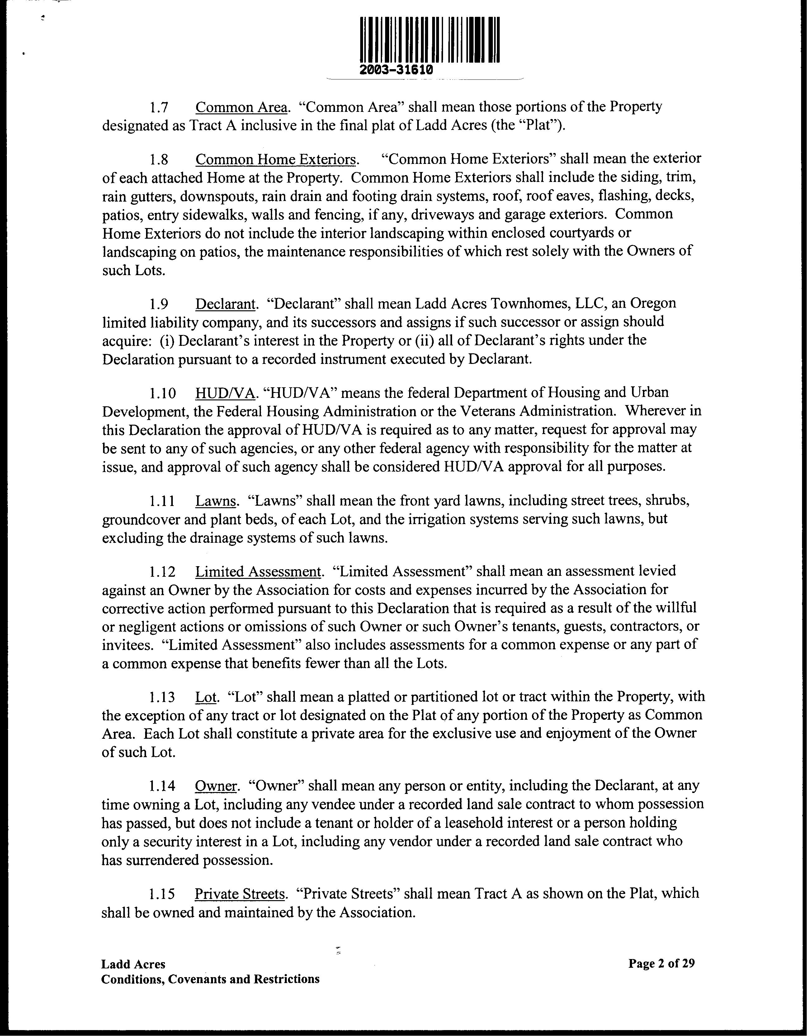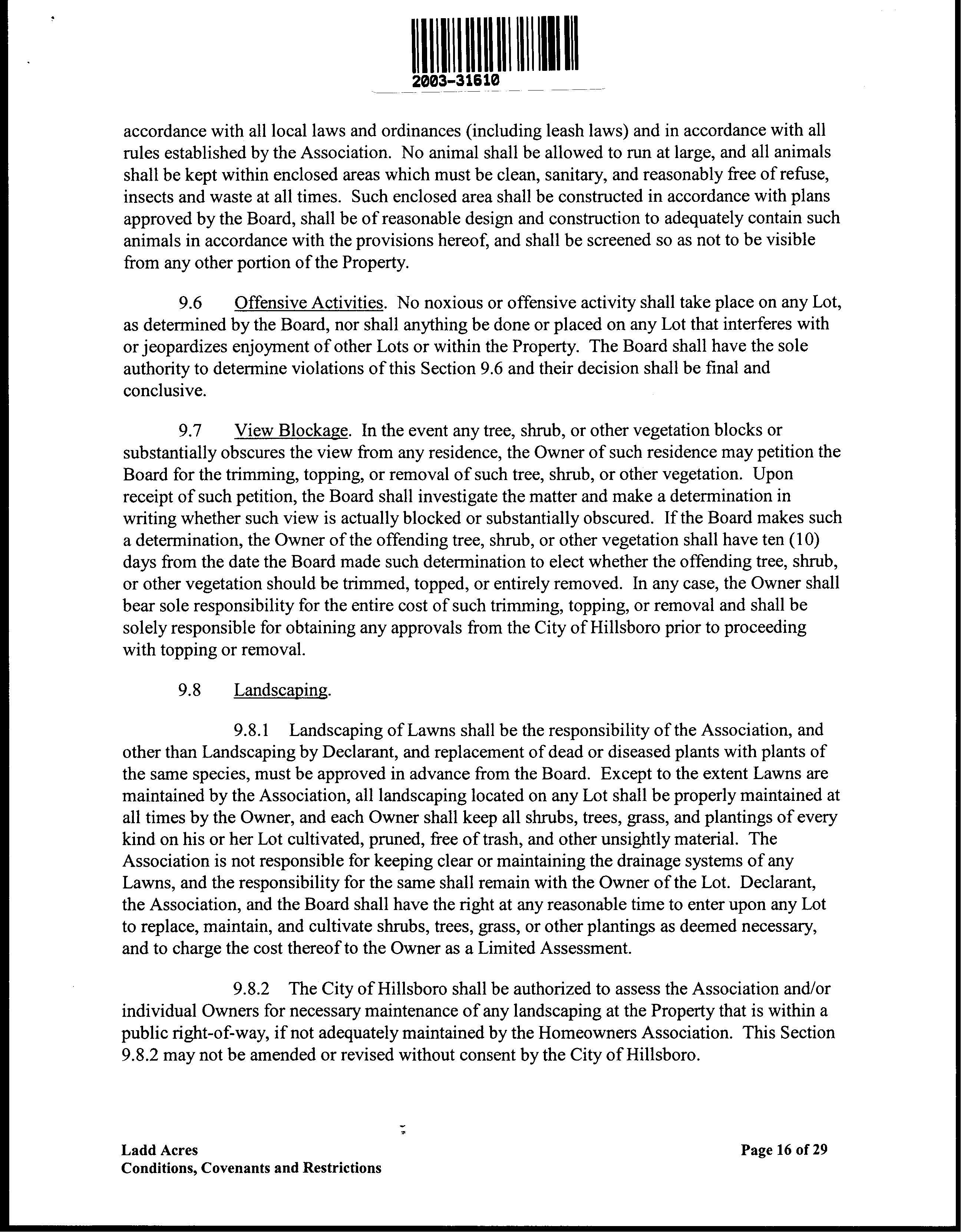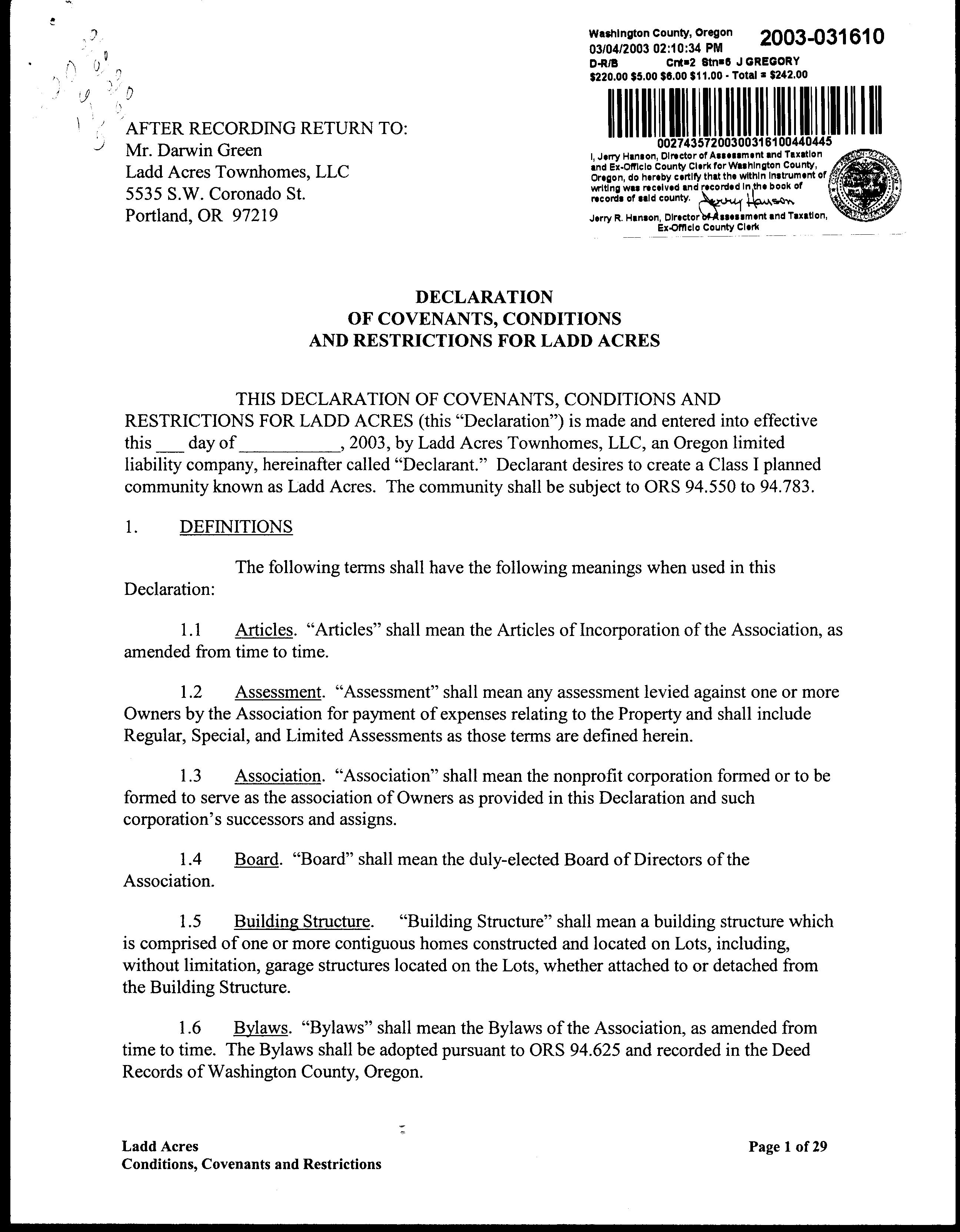 CCR's - Ladd Acres