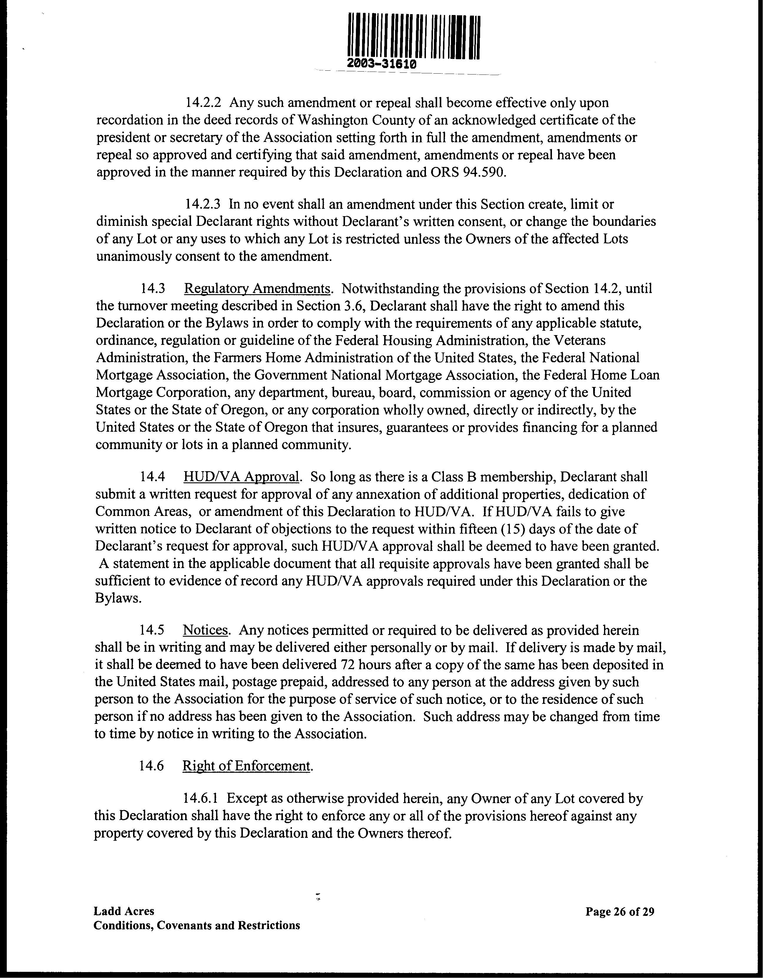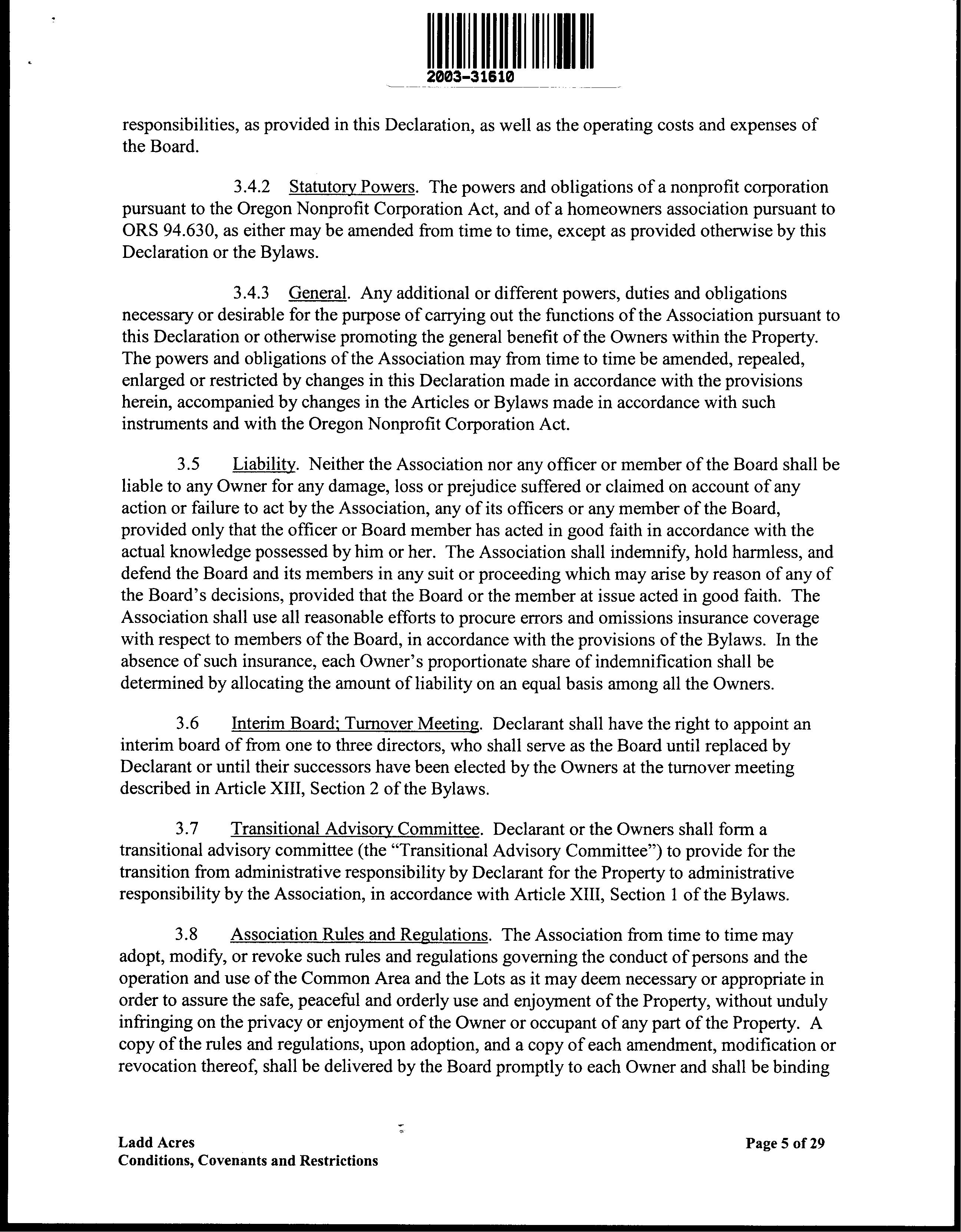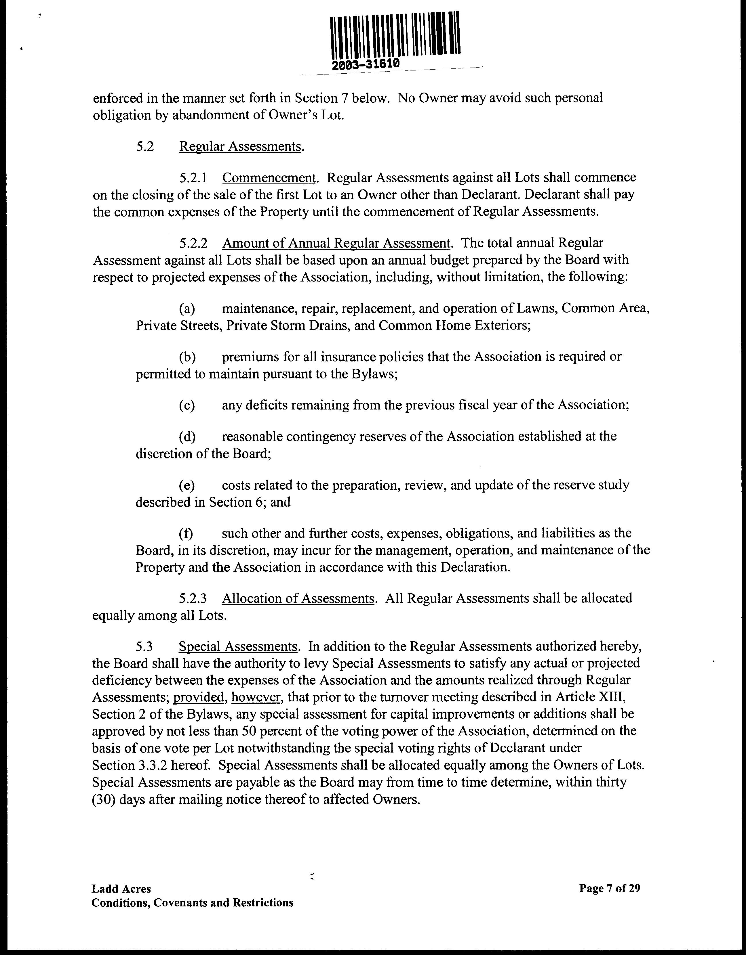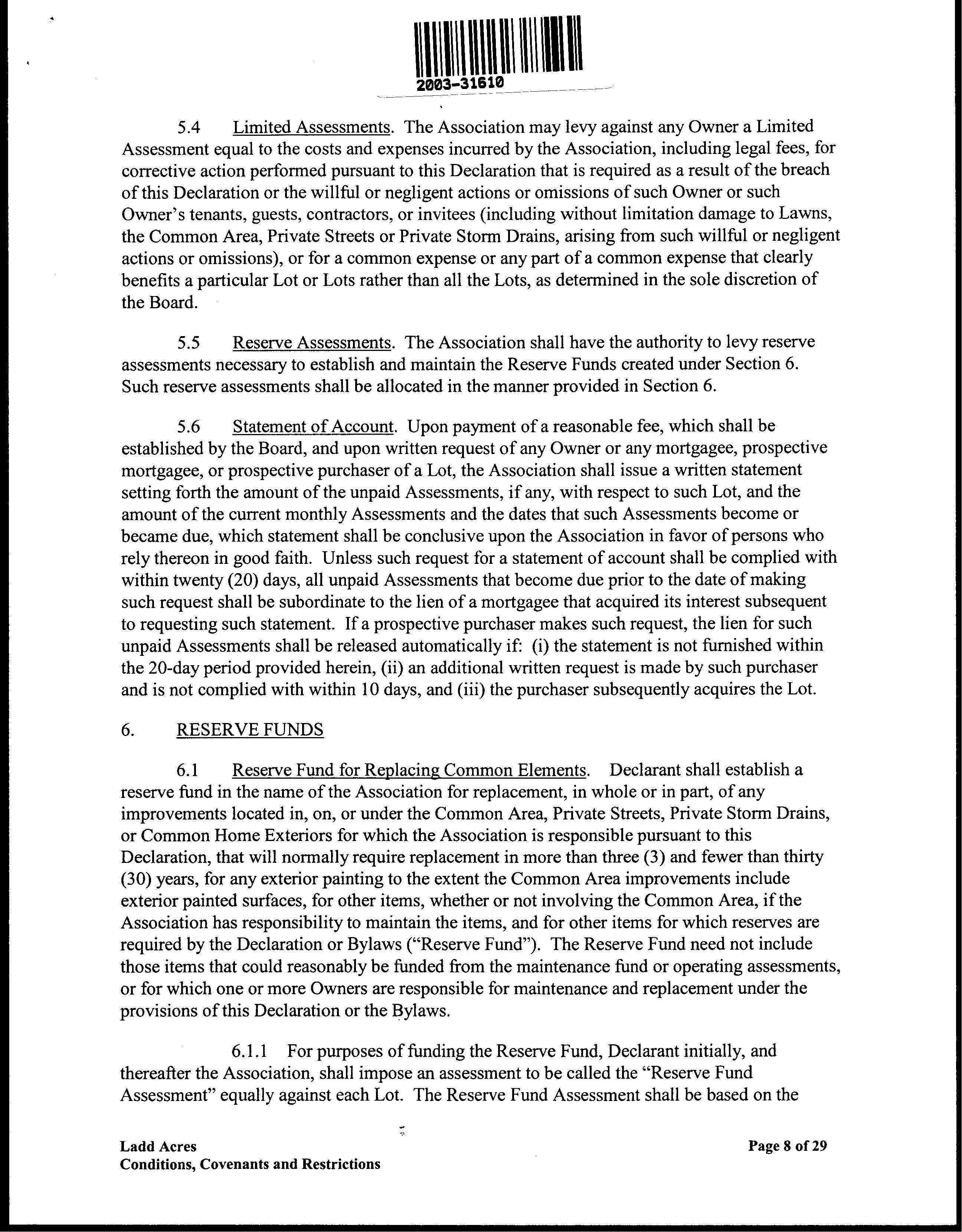 CCR's - Ladd Acres