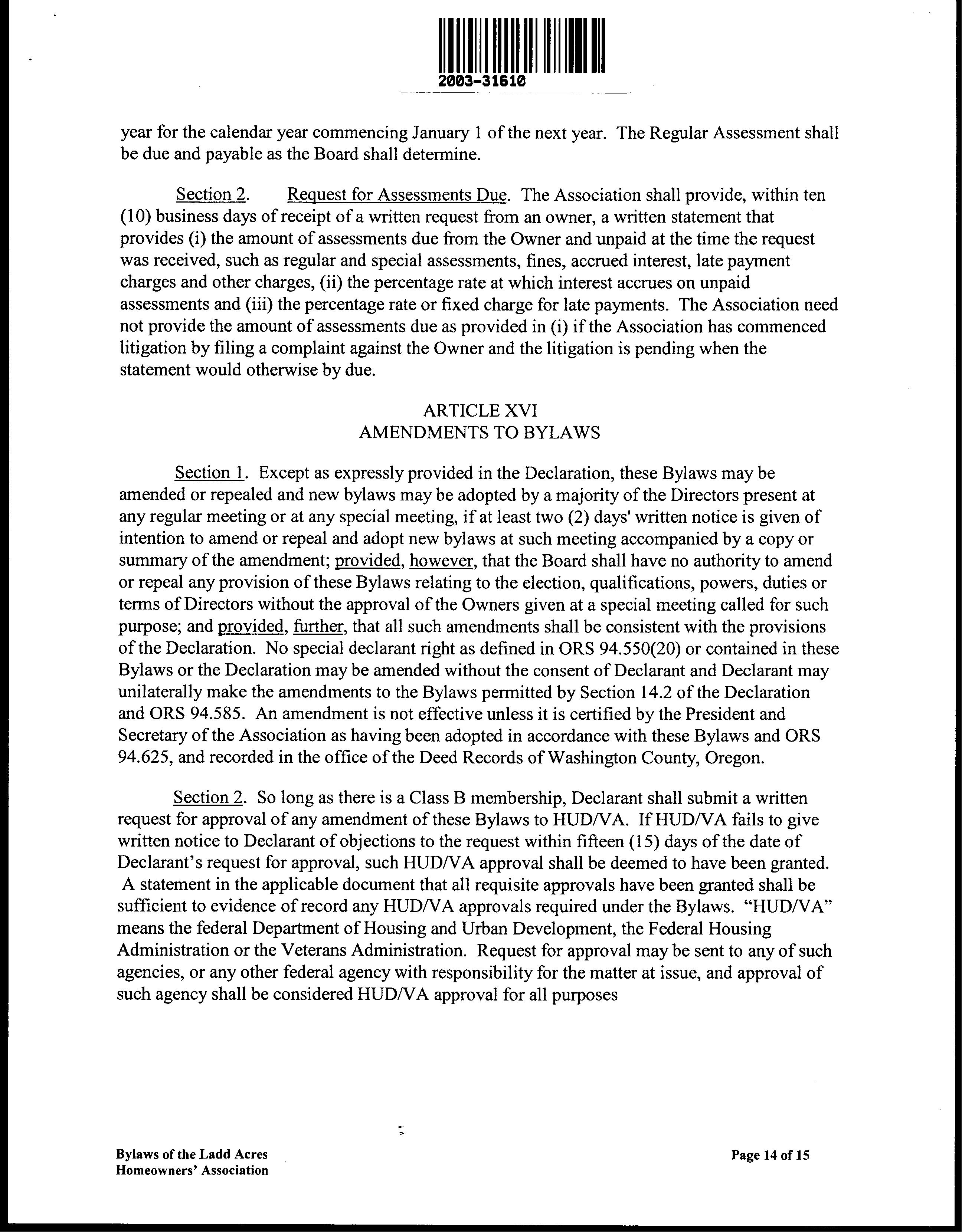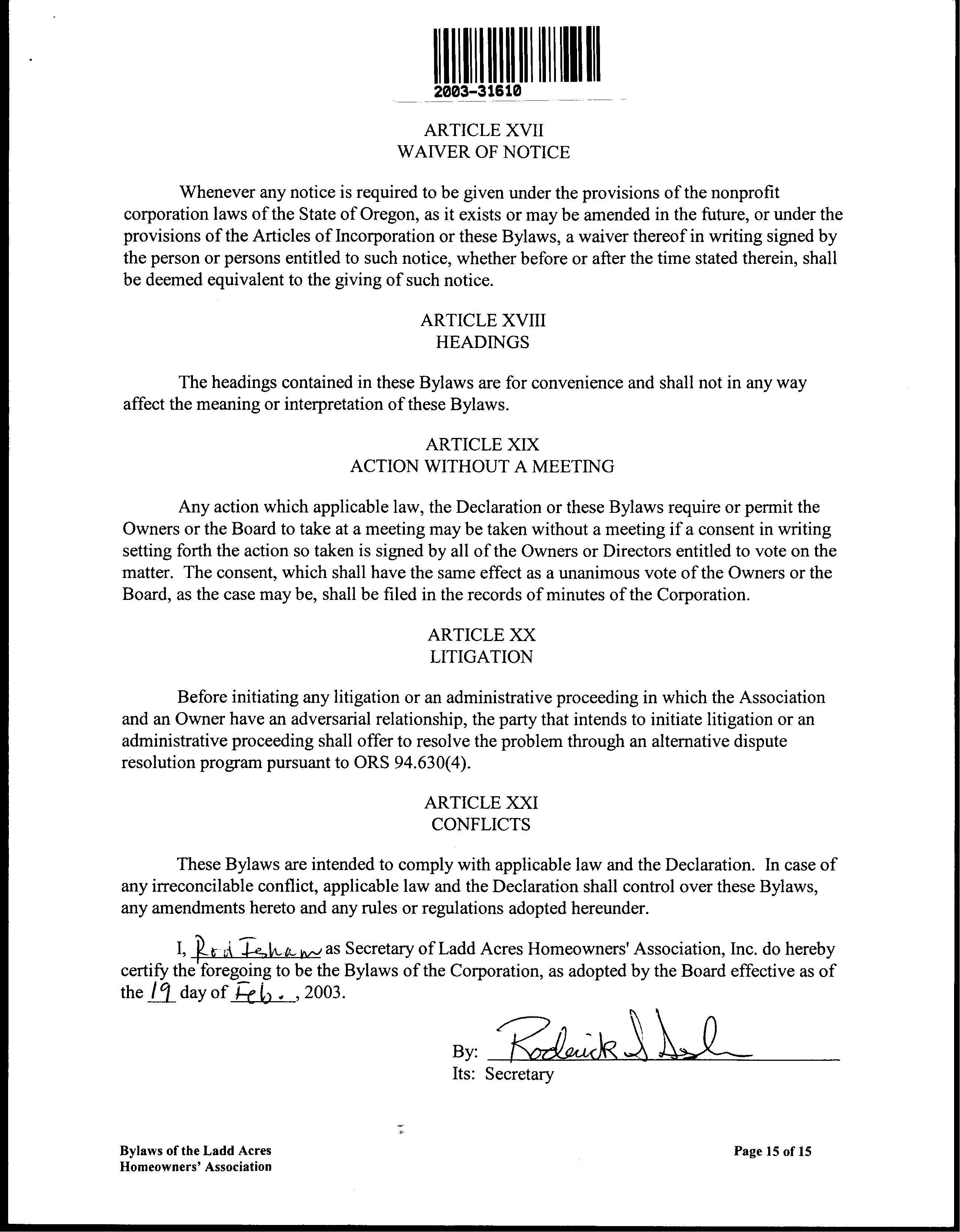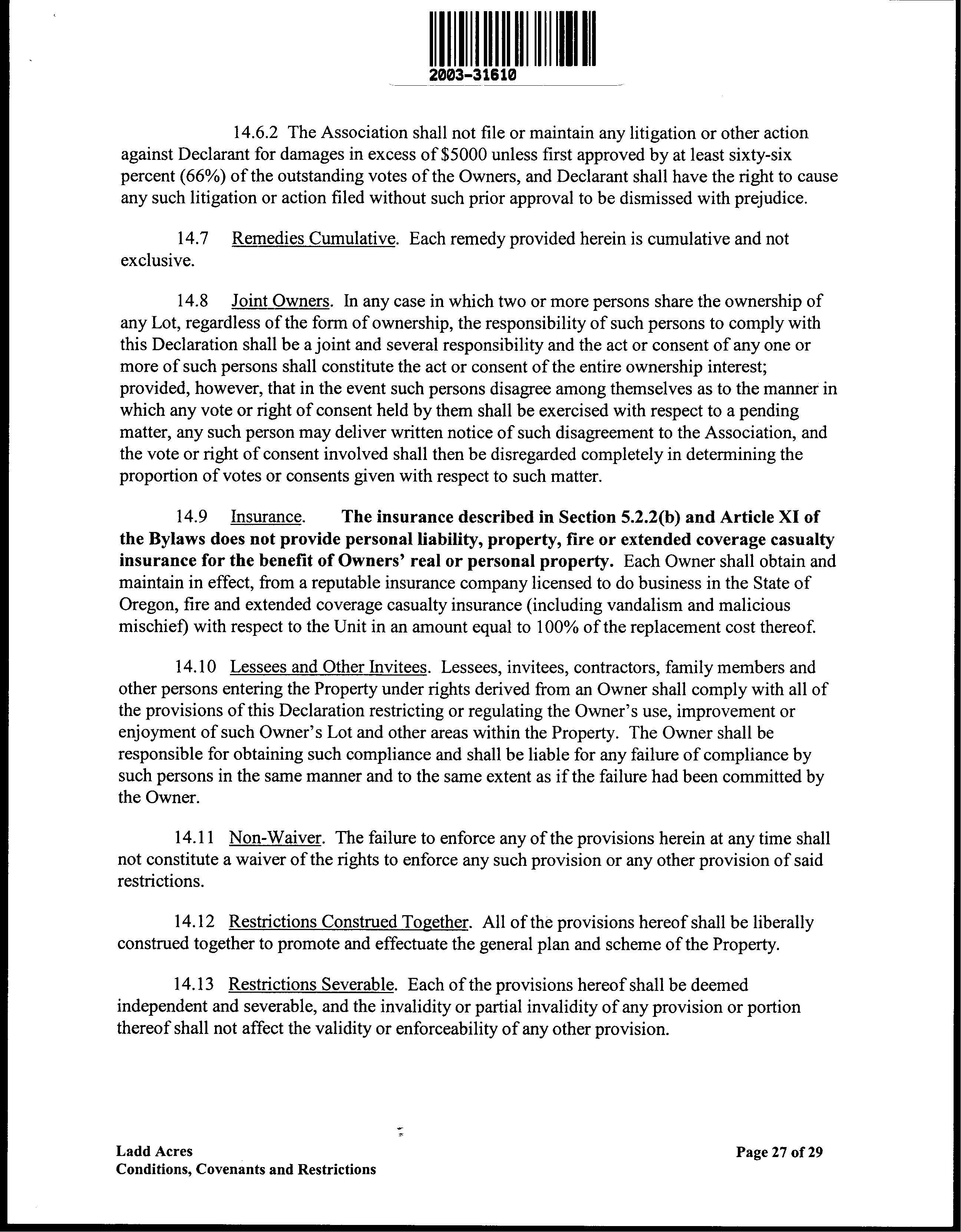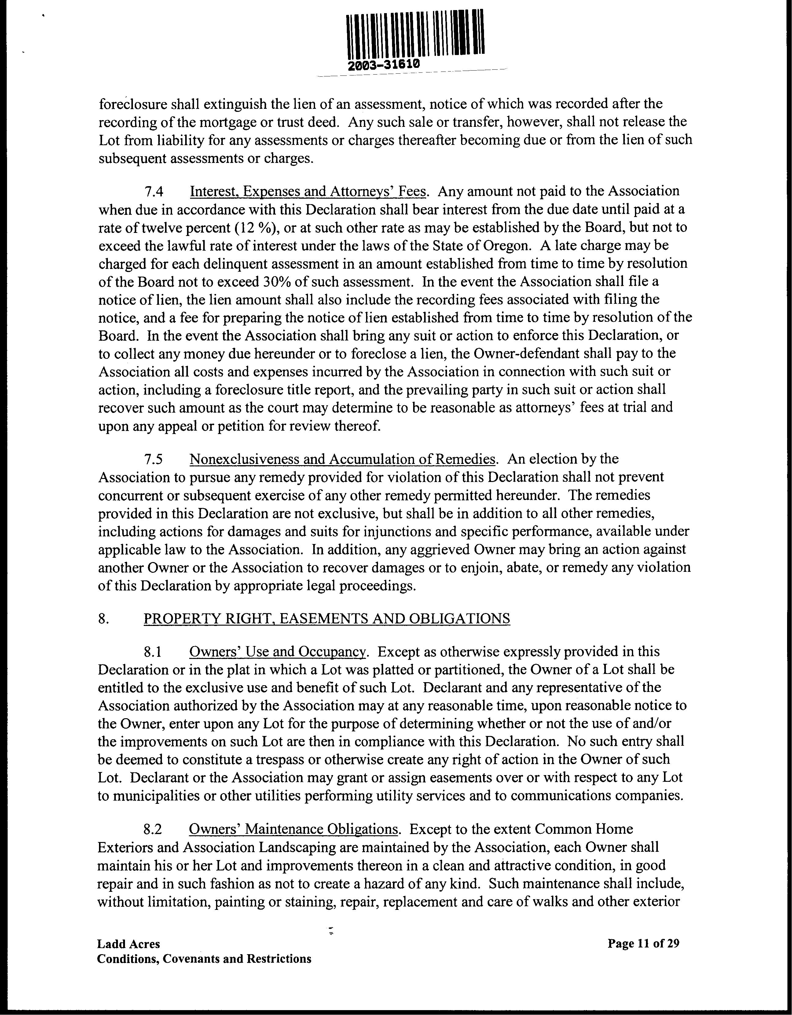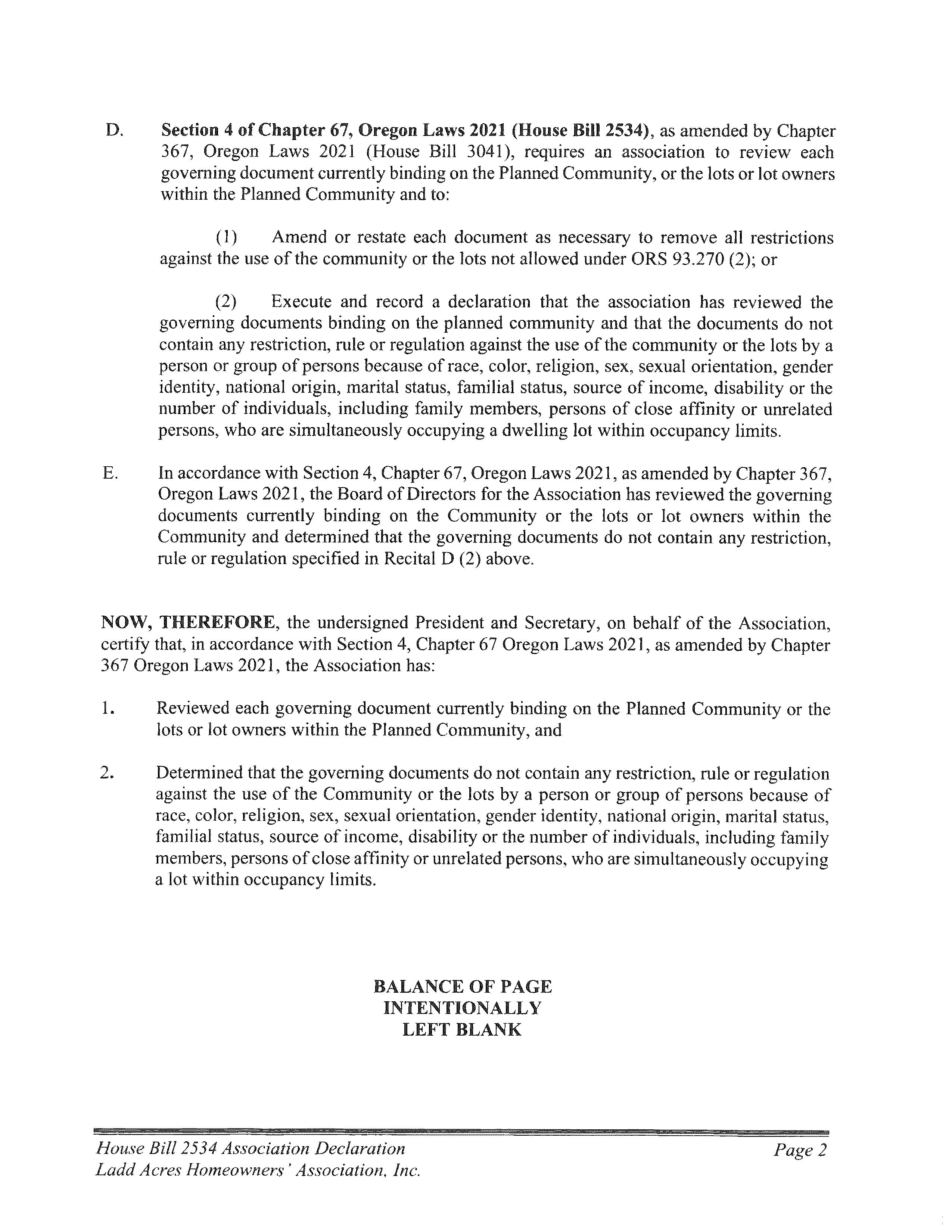 CCR's - Ladd Acres