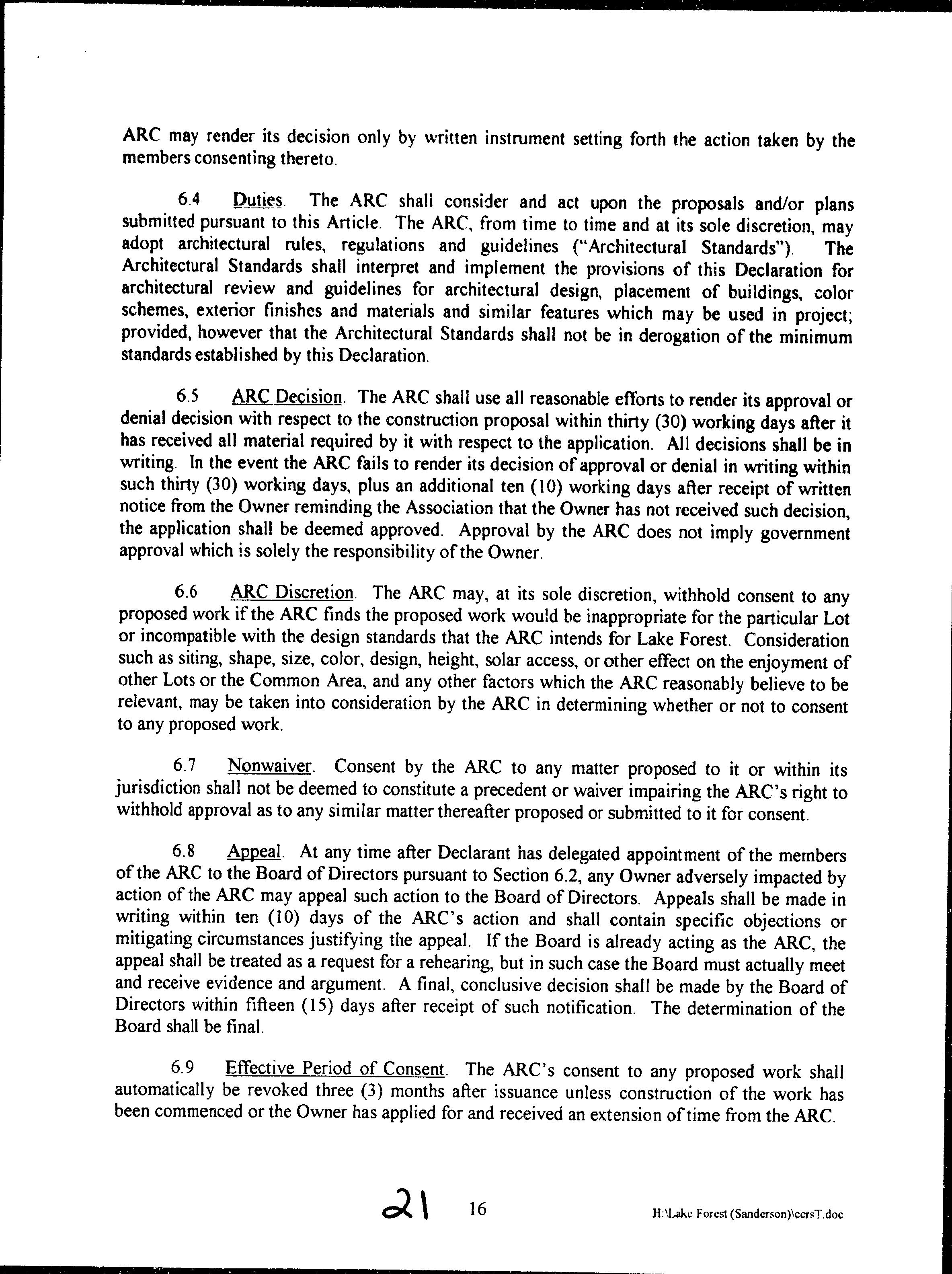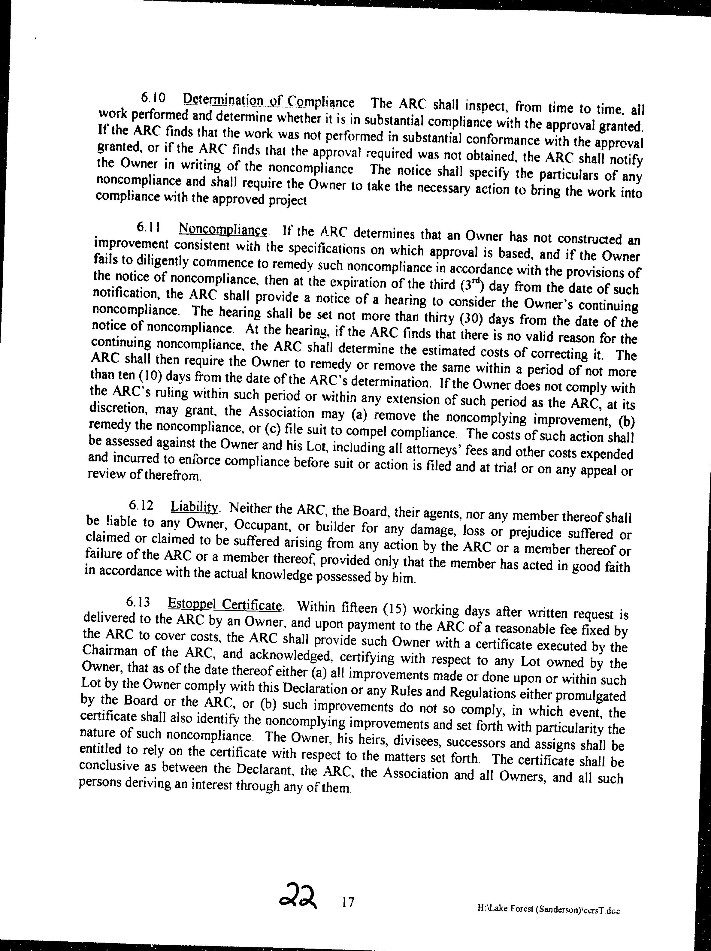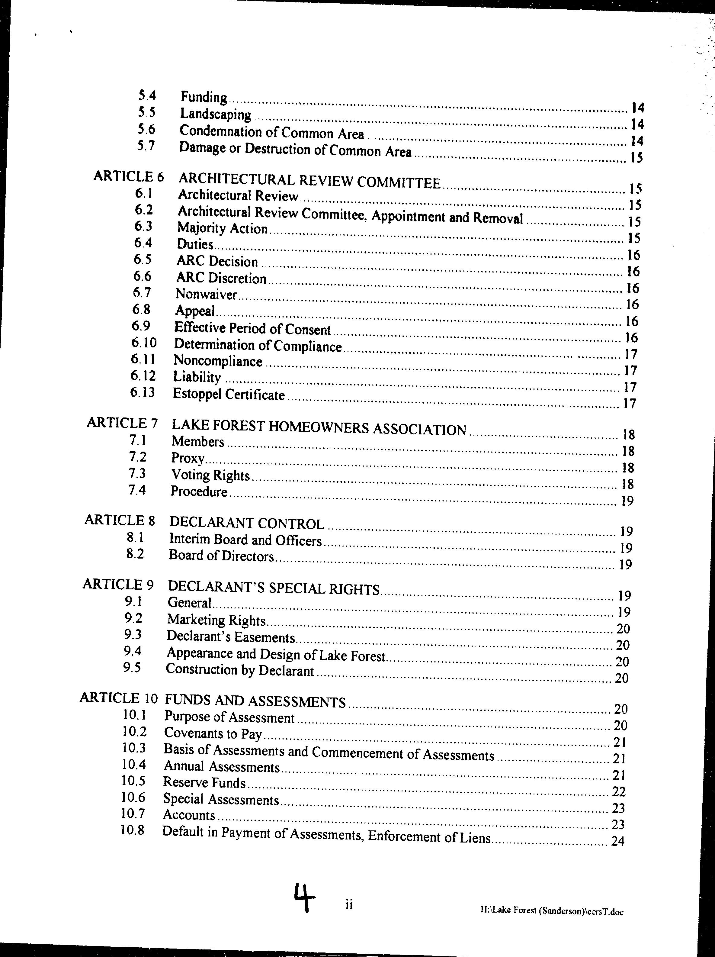 CCR's - Lake Forest