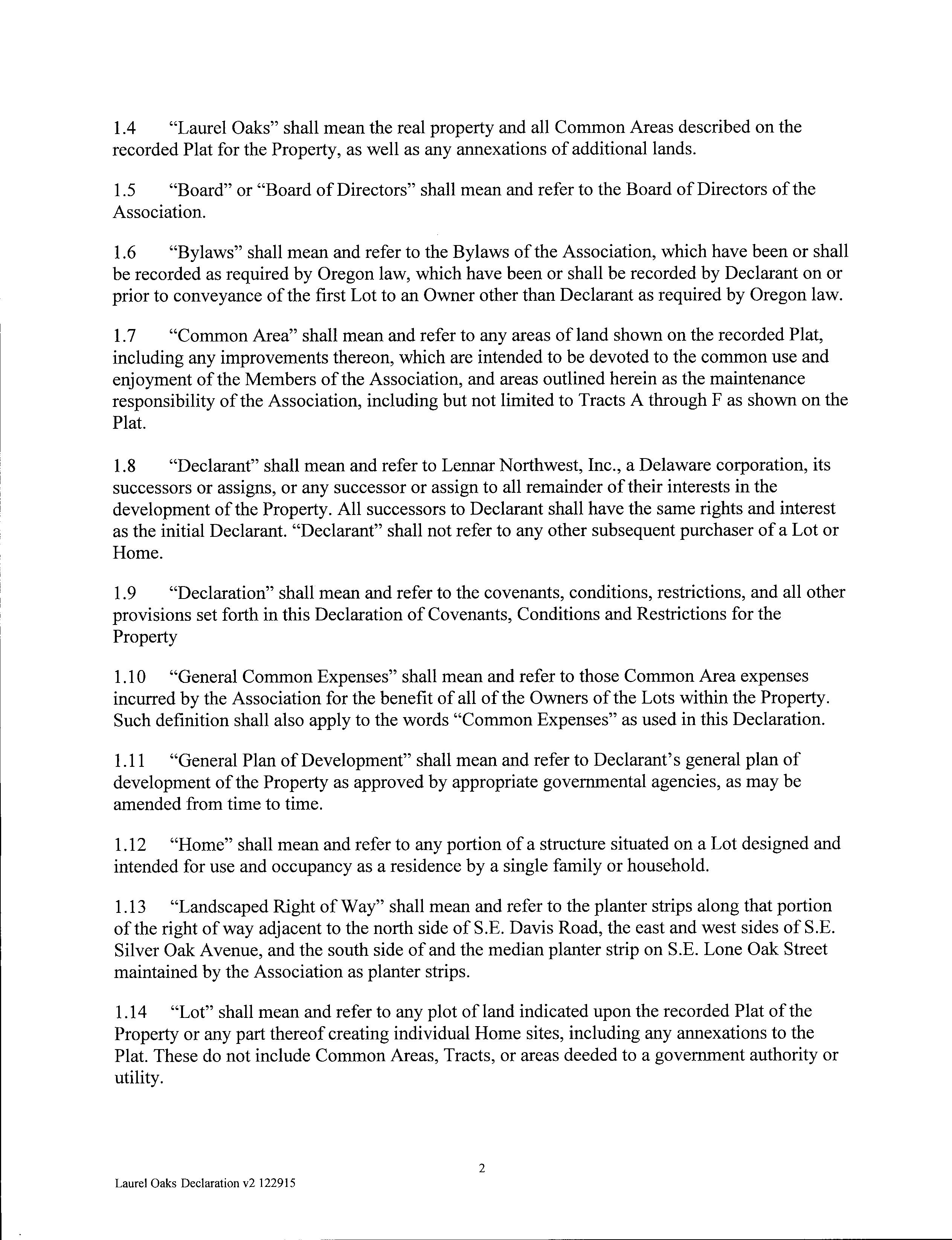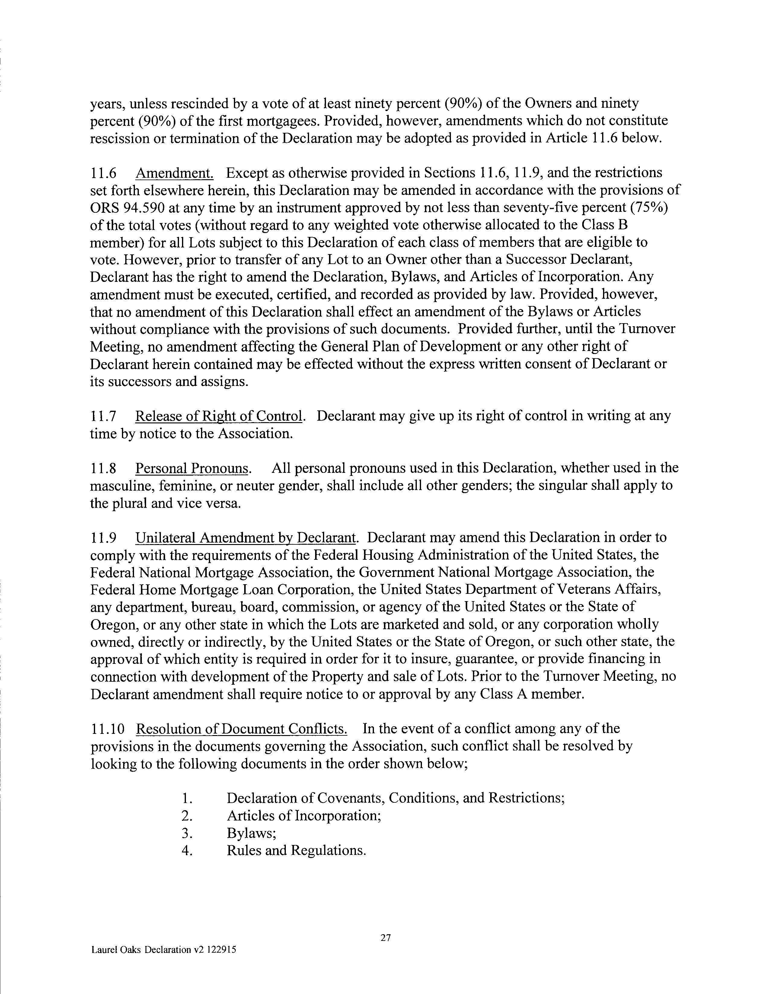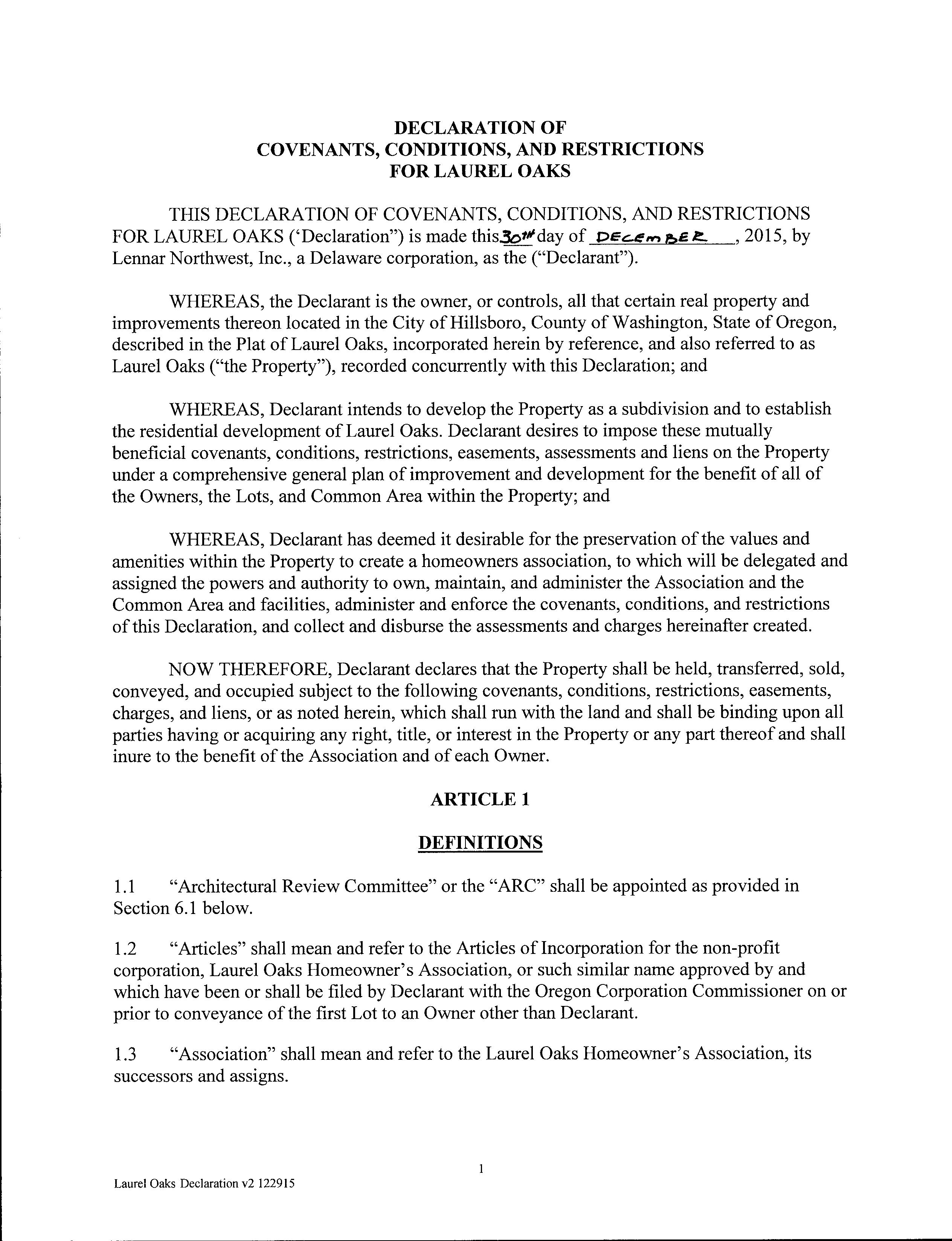CCR's - Laurel Oaks