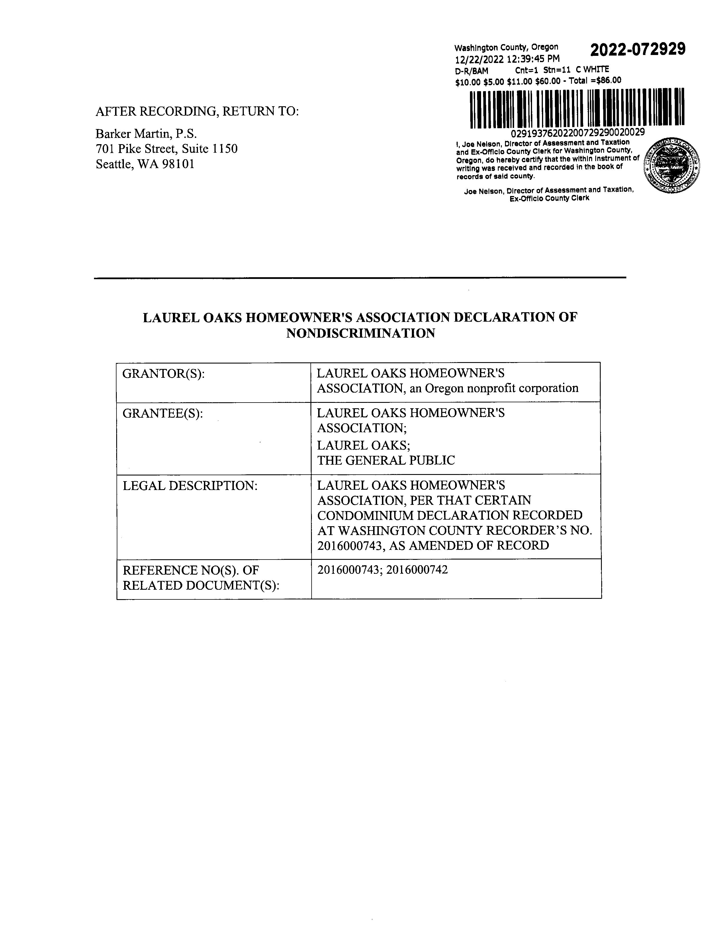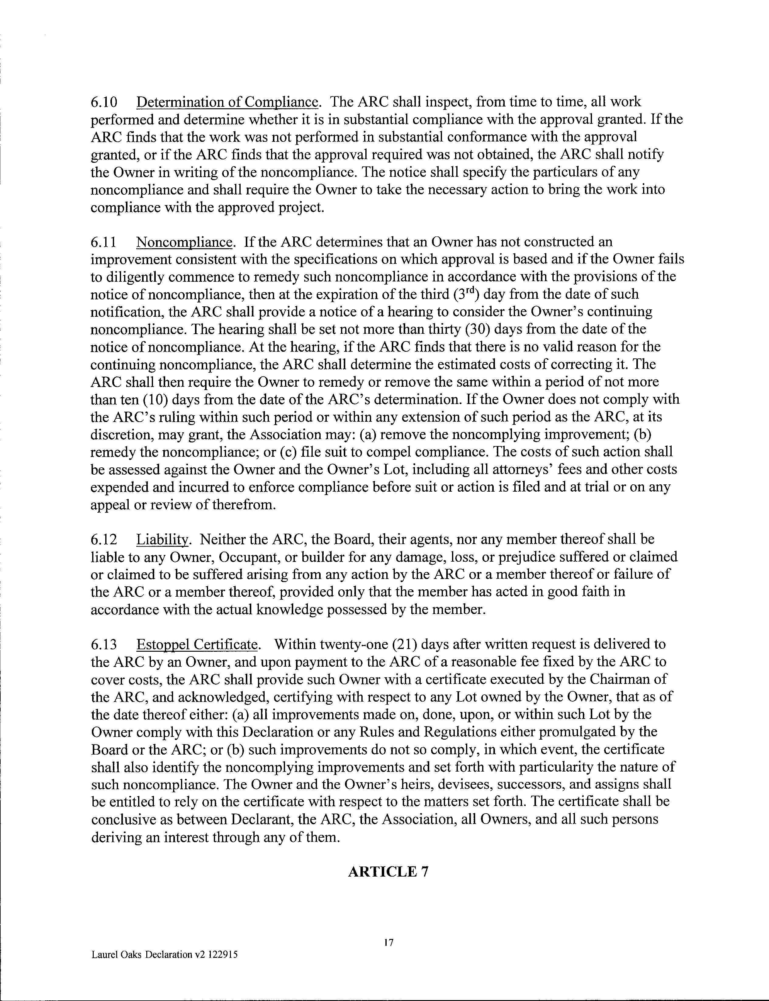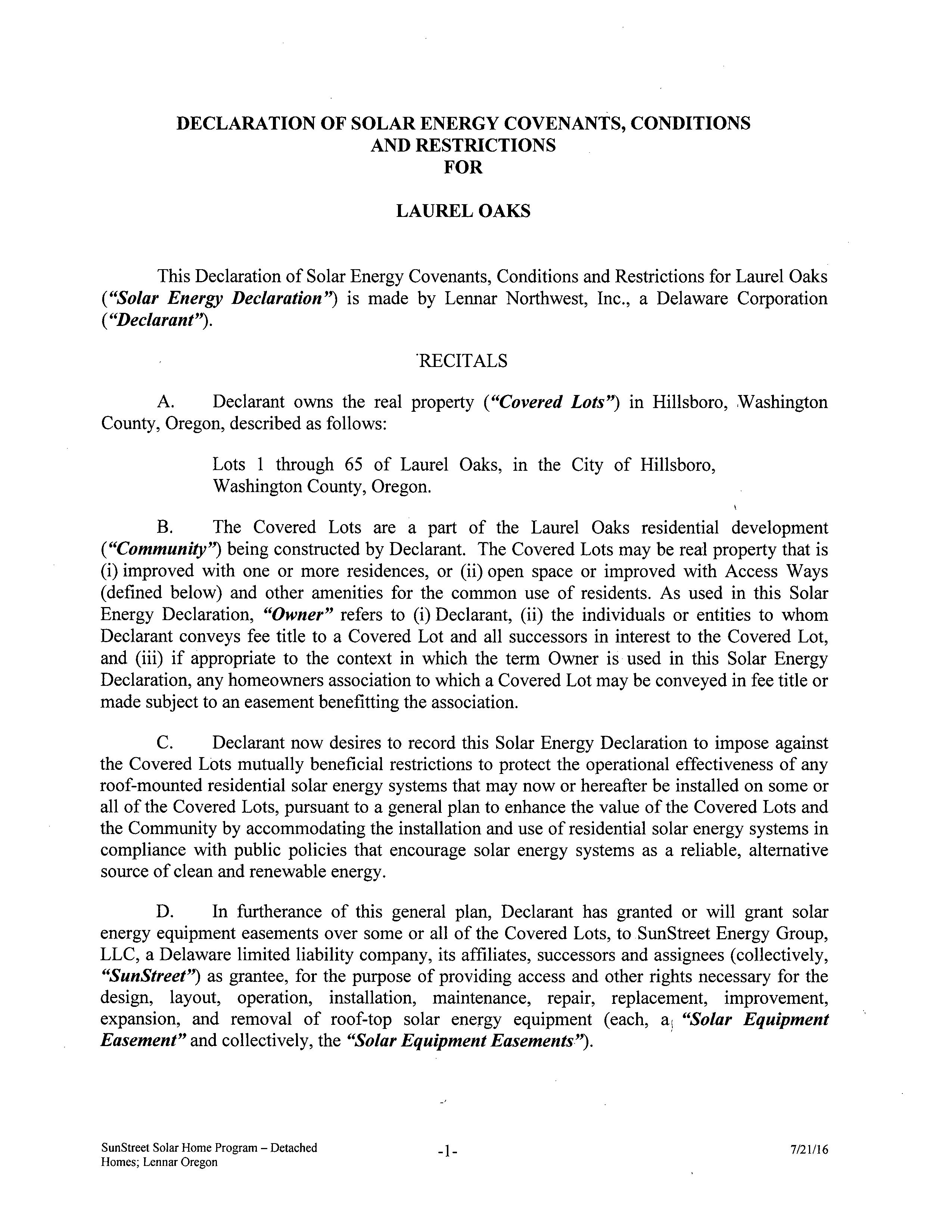 CCR's - Laurel Oaks