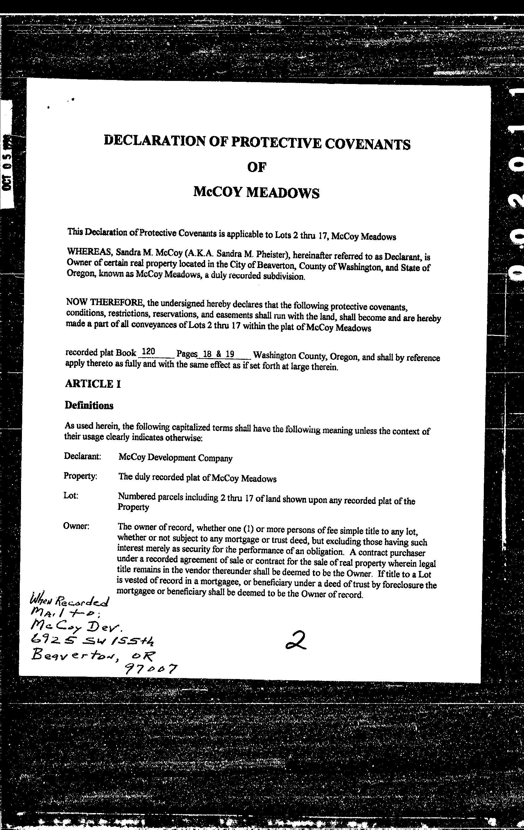 CCR's - McCoy Meadows