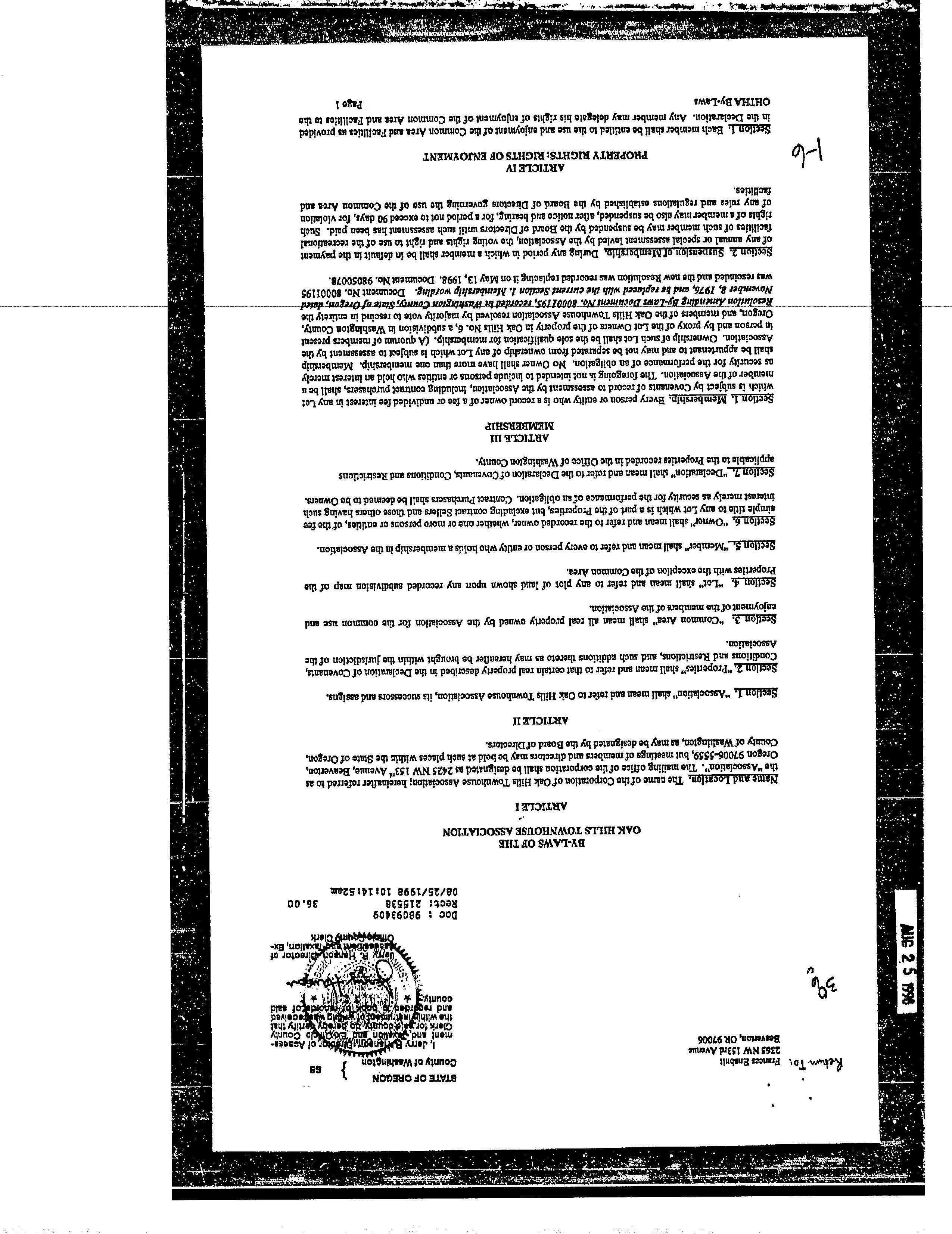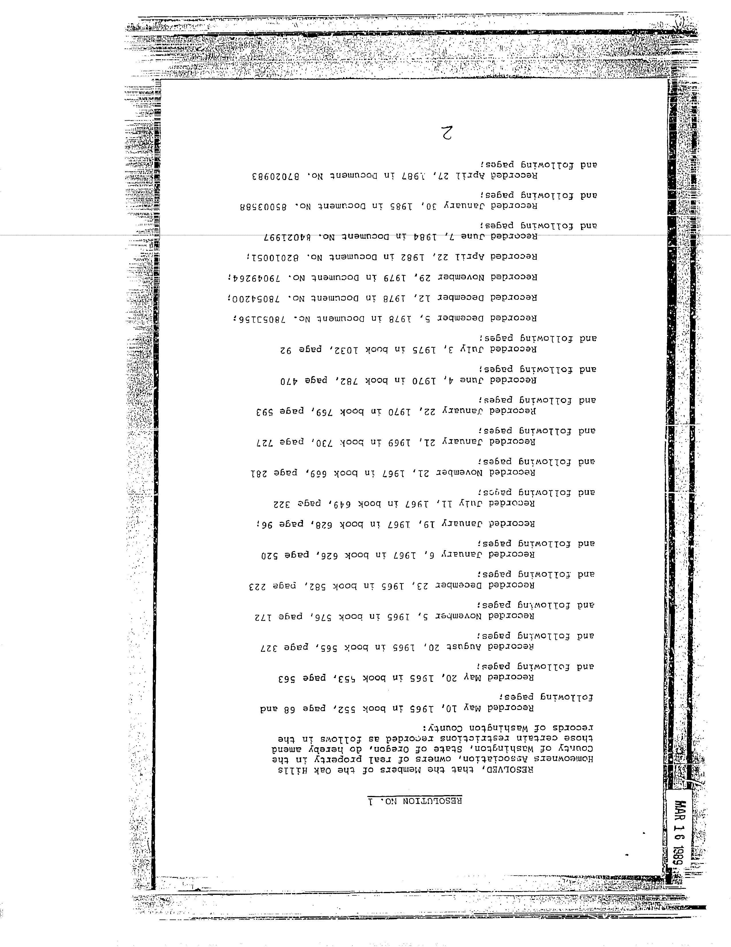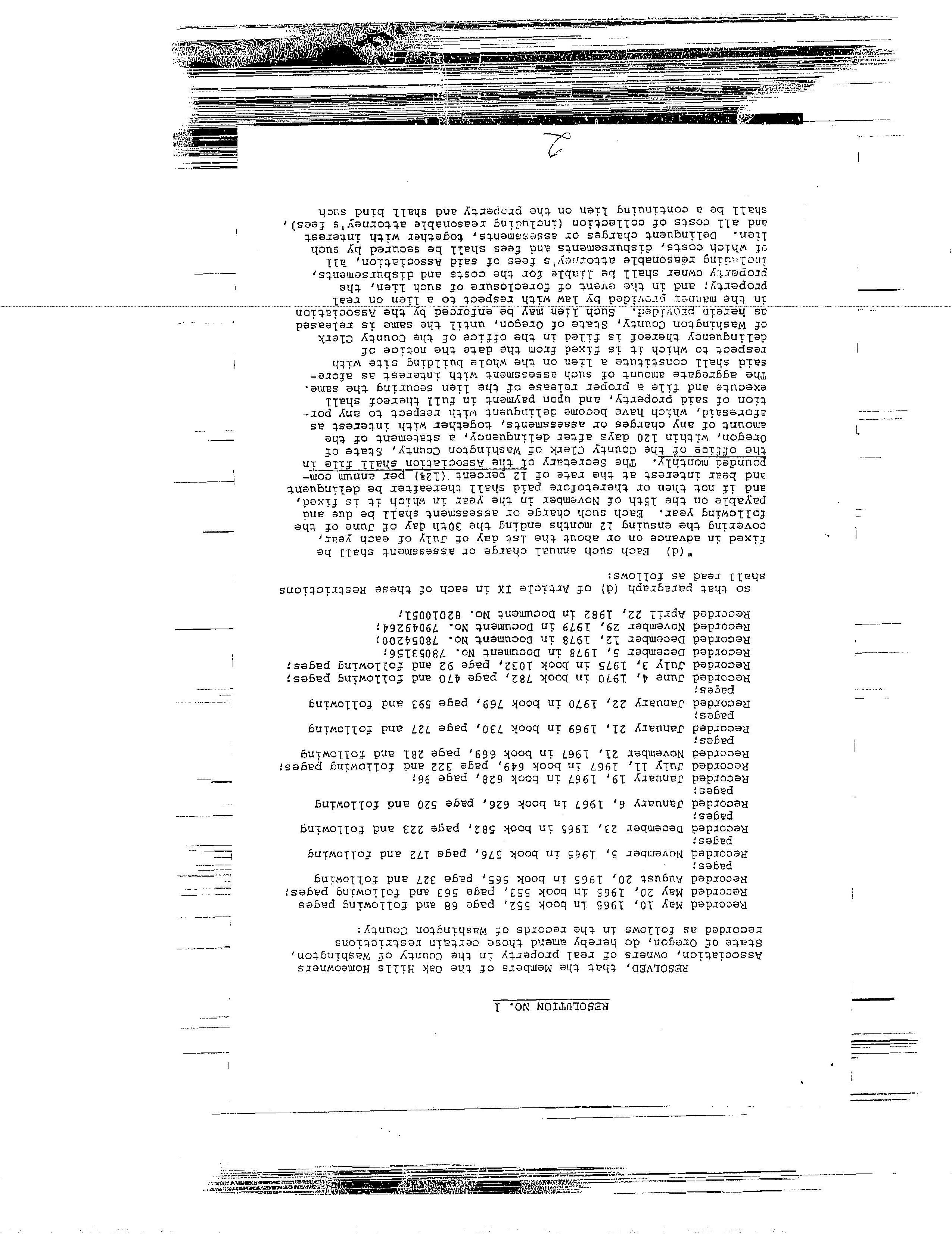 CCR's - Oak Hill 8