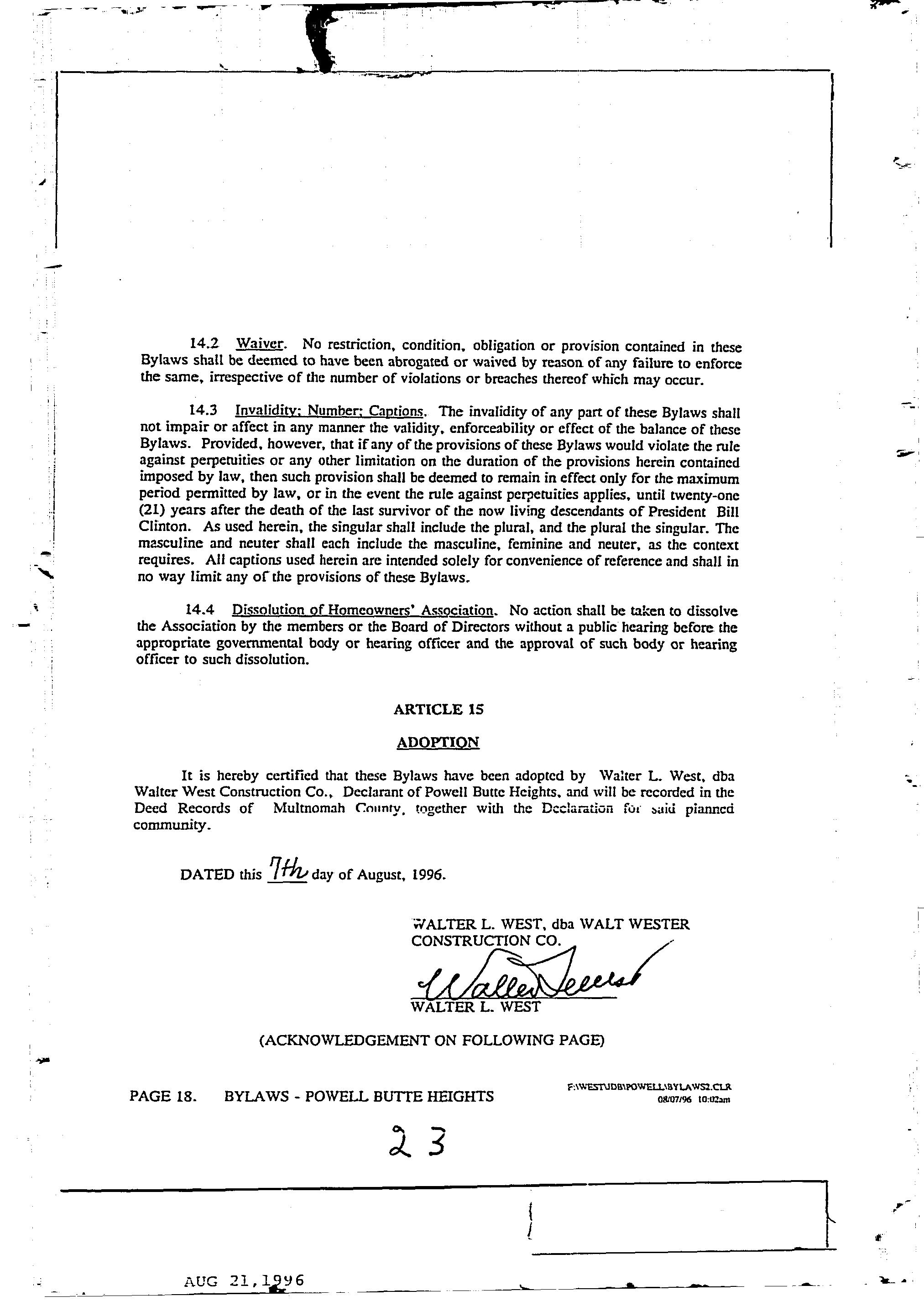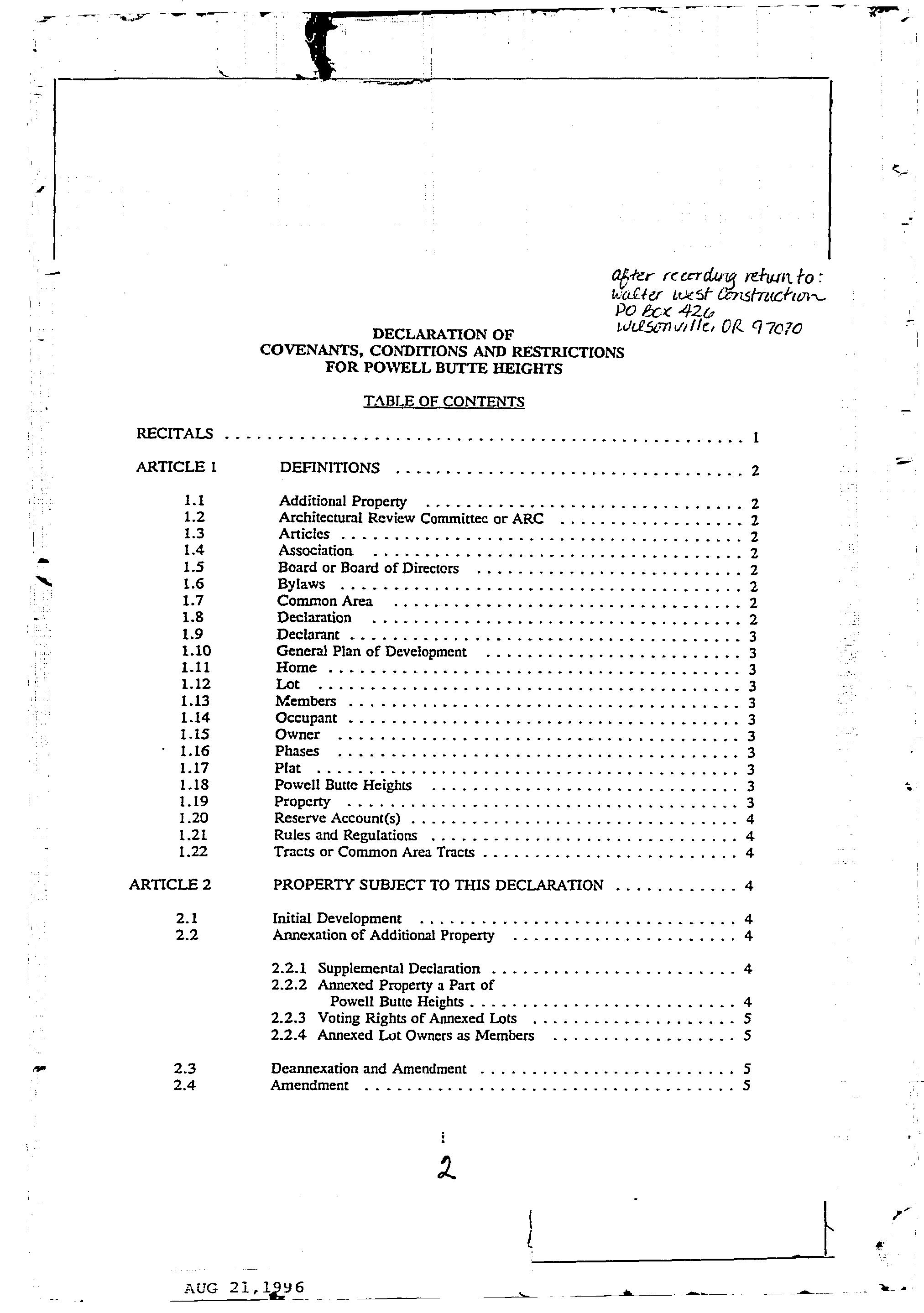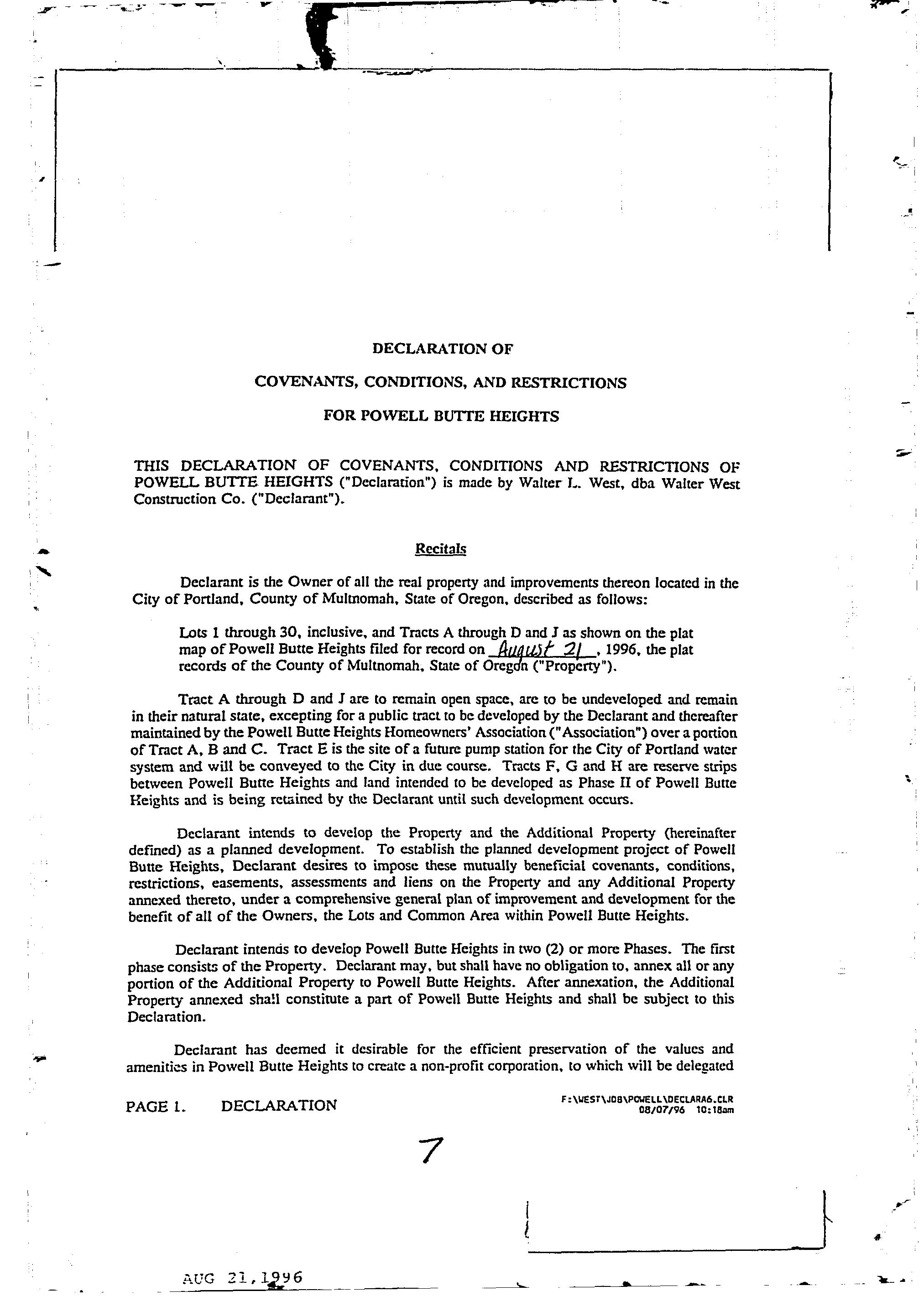 CCR's - Powell Butte Heights