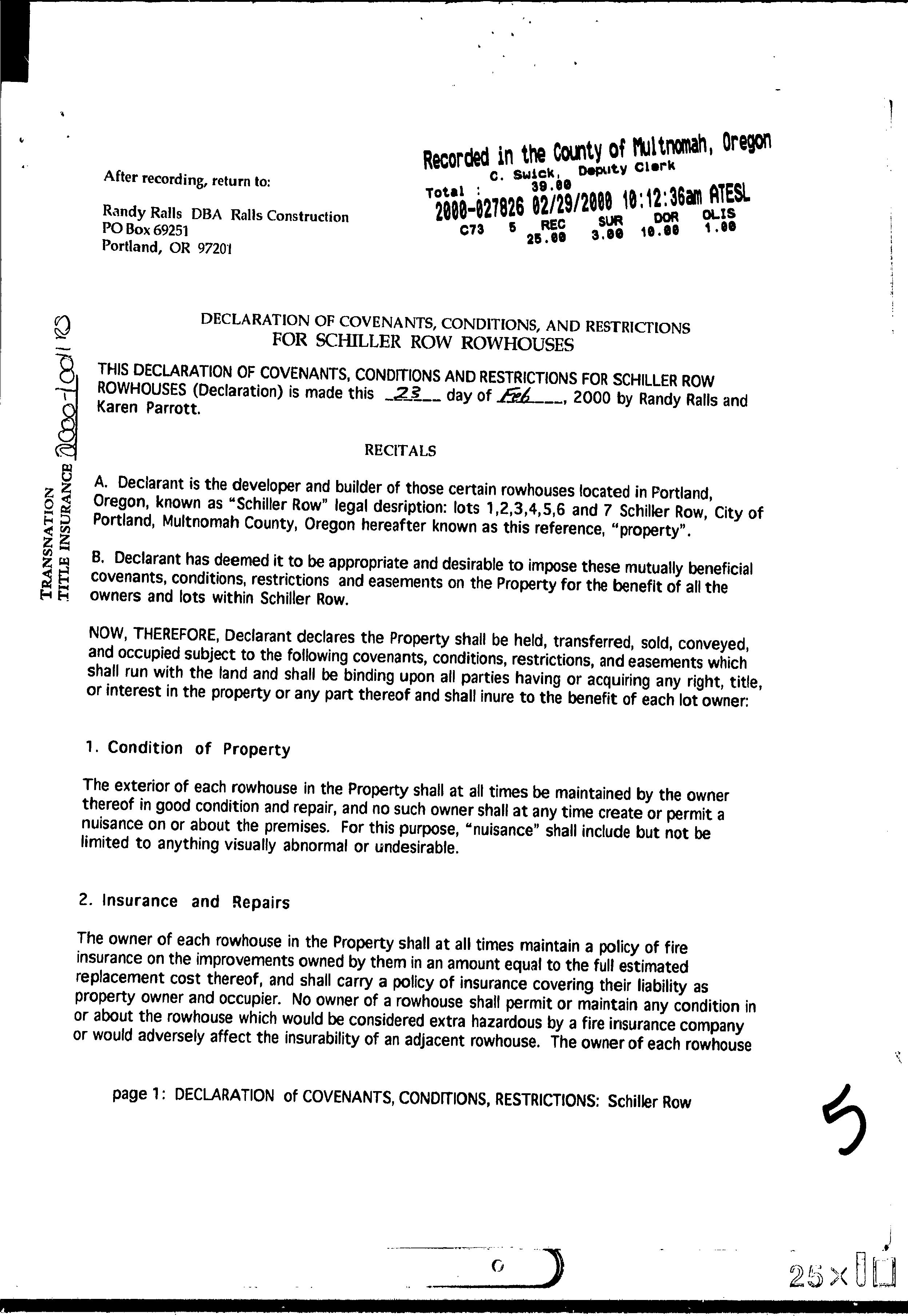 CCR's - Schiller Row