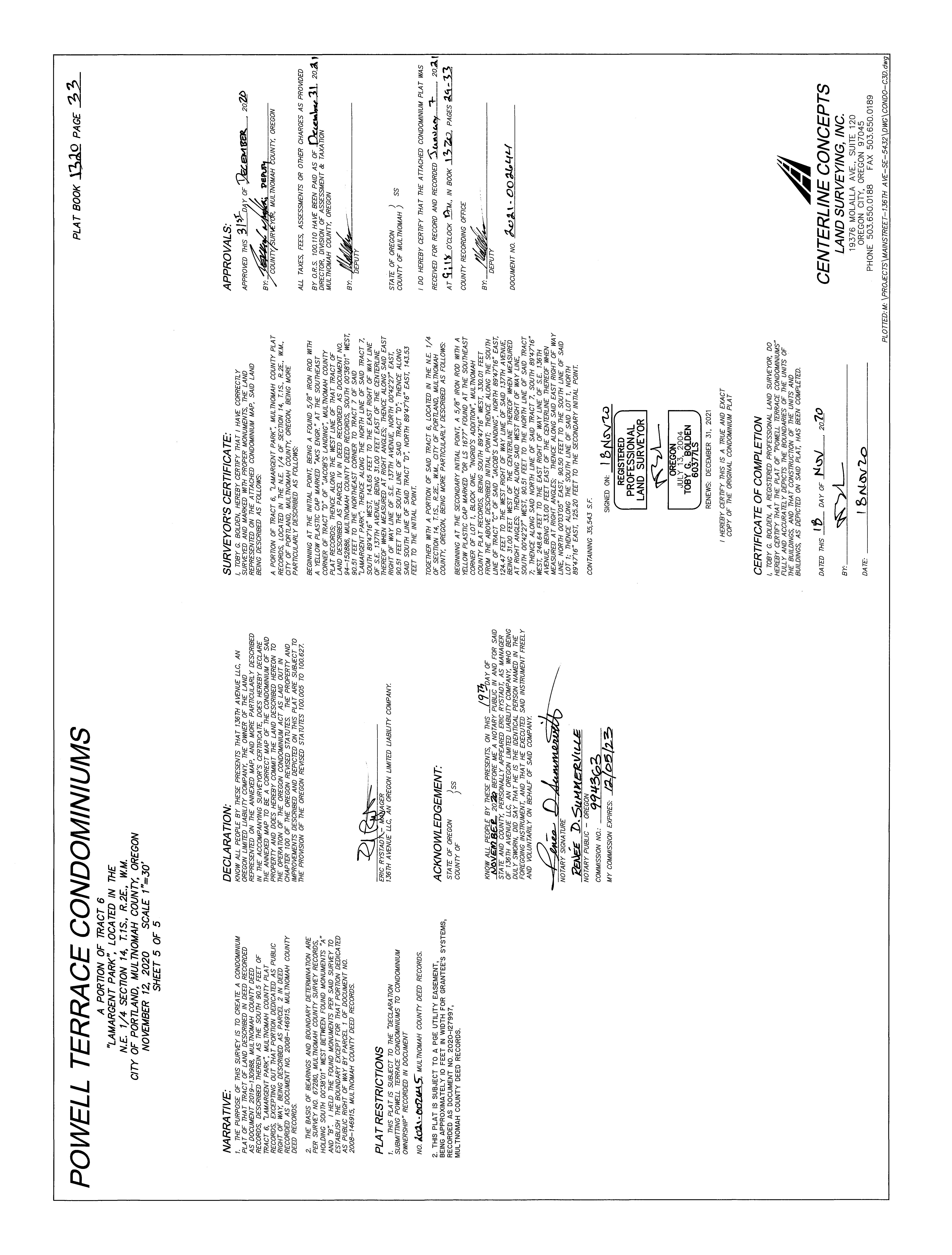 From: Tax ID 1S2E14AC Pcl 2400 CF 3/24/2015 Full 1/7/2021 Map 1320/29 1/7/2021