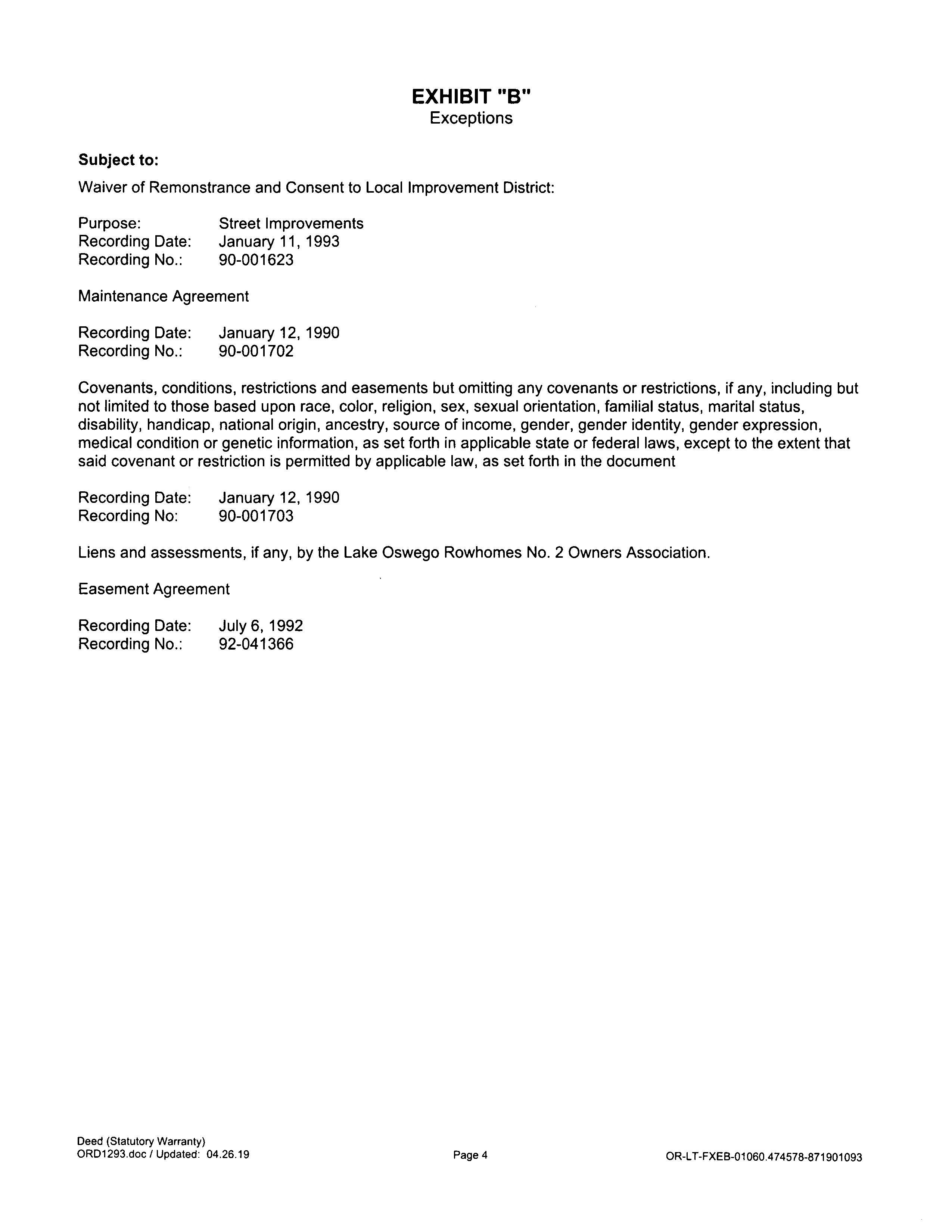 Page 2 Nearby Neighbor #7 Address 180 D AVE, LAKE OSWEGO, OR 97034 APN 21E03DA10600 Owner HANNA MARK Lot Size (SF/AC) Bedrooms 2 Year Built 1987 Living Area (SF) 1,636 Bathrooms/Partial 2/1 Garage/No. of Cars Garage/1 Phones Nearby Neighbor #8 Address 188 D AVE, LAKE OSWEGO, OR 97034 APN 21E03DA11000 Owner HUSHWE INVESTMENTS LLC; US CAPITAL TRUST LLC Lot Size (SF/AC) Bedrooms 2 Year Built 1987 Living Area (SF) 1,636 Bathrooms/Partial 2/1 Garage/No. of Cars Garage/1 Phones Nearby Neighbor #9 Address 633 2ND ST, LAKE OSWEGO, OR 97034 APN 21E03DA08200 Owner JERIC INC Lot Size (SF/AC) Bedrooms 2 Year Built 1915 Living Area (SF) 2,255 Bathrooms/Partial 3 Garage/No. of Cars Phones Nearby Neighbor #10 Address 148 D AVE, LAKE OSWEGO, OR 97034 APN 21E03DA08901 Owner IMKAMP ANTHONY J & AMY Lot Size (SF/AC) Bedrooms 2 Year Built 2007 Living Area (SF) 1,754 Bathrooms/Partial 2/1 Garage/No. of Cars Phones Nearby Neighbor #11 Address 136 D AVE, LAKE OSWEGO, OR 97034 APN 21E03DA08902 Owner MACKENZIE PETER & LISA KEOWN Lot Size (SF/AC) Bedrooms 2 Year Built 2007 Living Area (SF) 1,754 Bathrooms/Partial 2/1 Garage/No. of Cars Phones Nearby Neighbor #12 Address 628 1ST ST, LAKE OSWEGO, OR 97034 APN 21E03DA12100 Owner ROWE CAROLYN (TRUSTEE) Lot Size (SF/AC) Bedrooms 2 Year Built 1900 Living Area (SF) 1,776 Bathrooms/Partial 2/1 Garage/No. of Cars Phones Nearby Neighbor #13 Address 626 1ST ST, LAKE OSWEGO, OR 97034 APN 21E03DA12000 Owner DIXCEE DOROTHY M (TRUSTEE) Lot Size (SF/AC) Bedrooms 2 Year Built 1997 Living Area (SF) 1,496 Bathrooms/Partial 2/1 Garage/No. of Cars Phones Nearby Neighbor #14 Address 124 D AVE, LAKE OSWEGO, OR 97034 APN 21E03DA08903 Owner GREEN CHRISTINE ANN & PHILLIP PATRICK Lot Size (SF/AC) Bedrooms 2 Year Built 2007 Living Area (SF) 1,754 Bathrooms/Partial 2/1 Garage/No. of Cars Phones