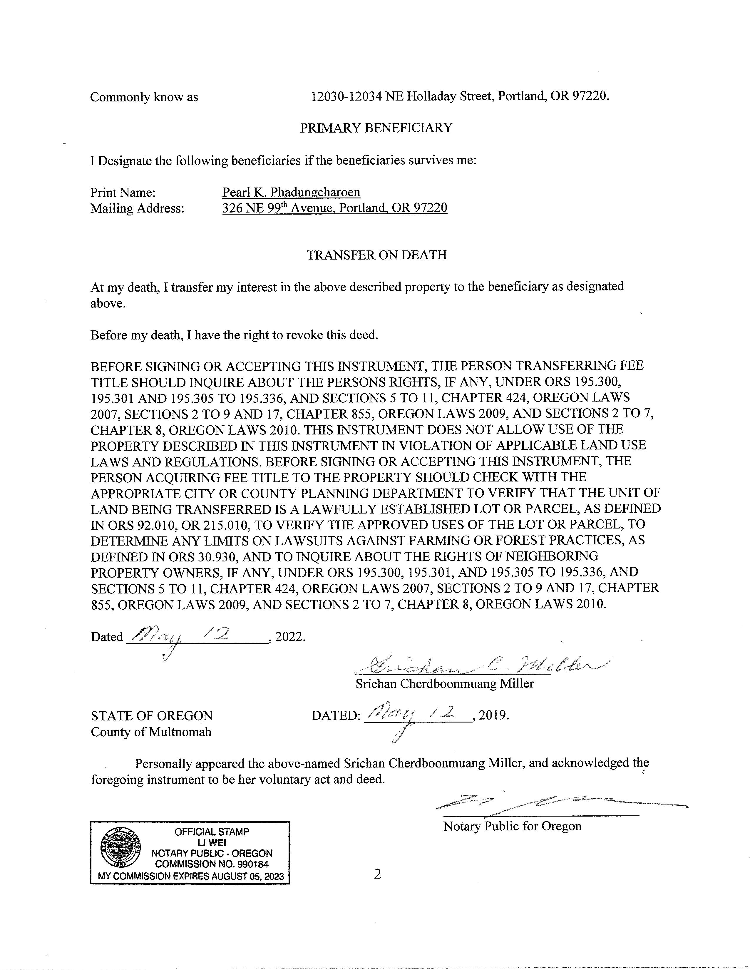 Mailing Address 326NE99THAVEPORTLAND,OR97220