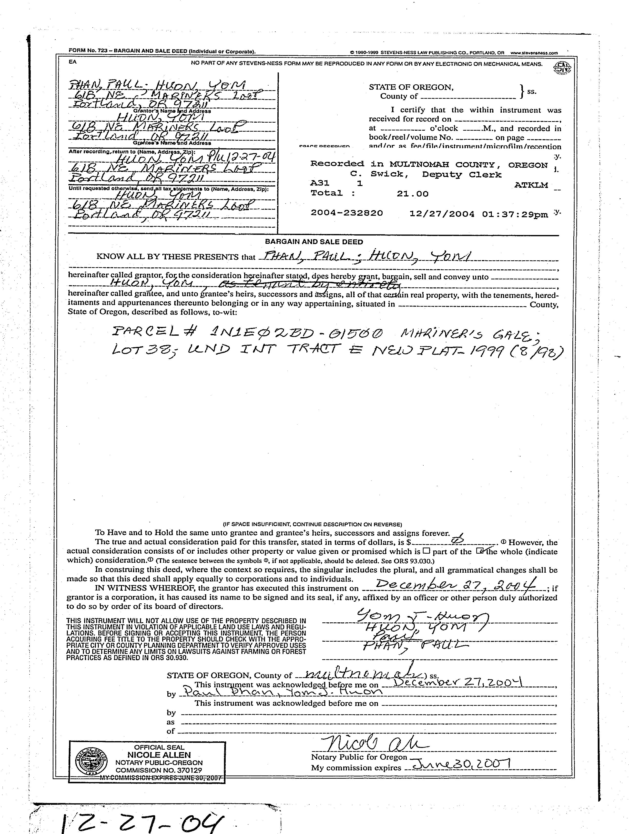 Owner:HuonYom Grantor:PHAN PAUL
