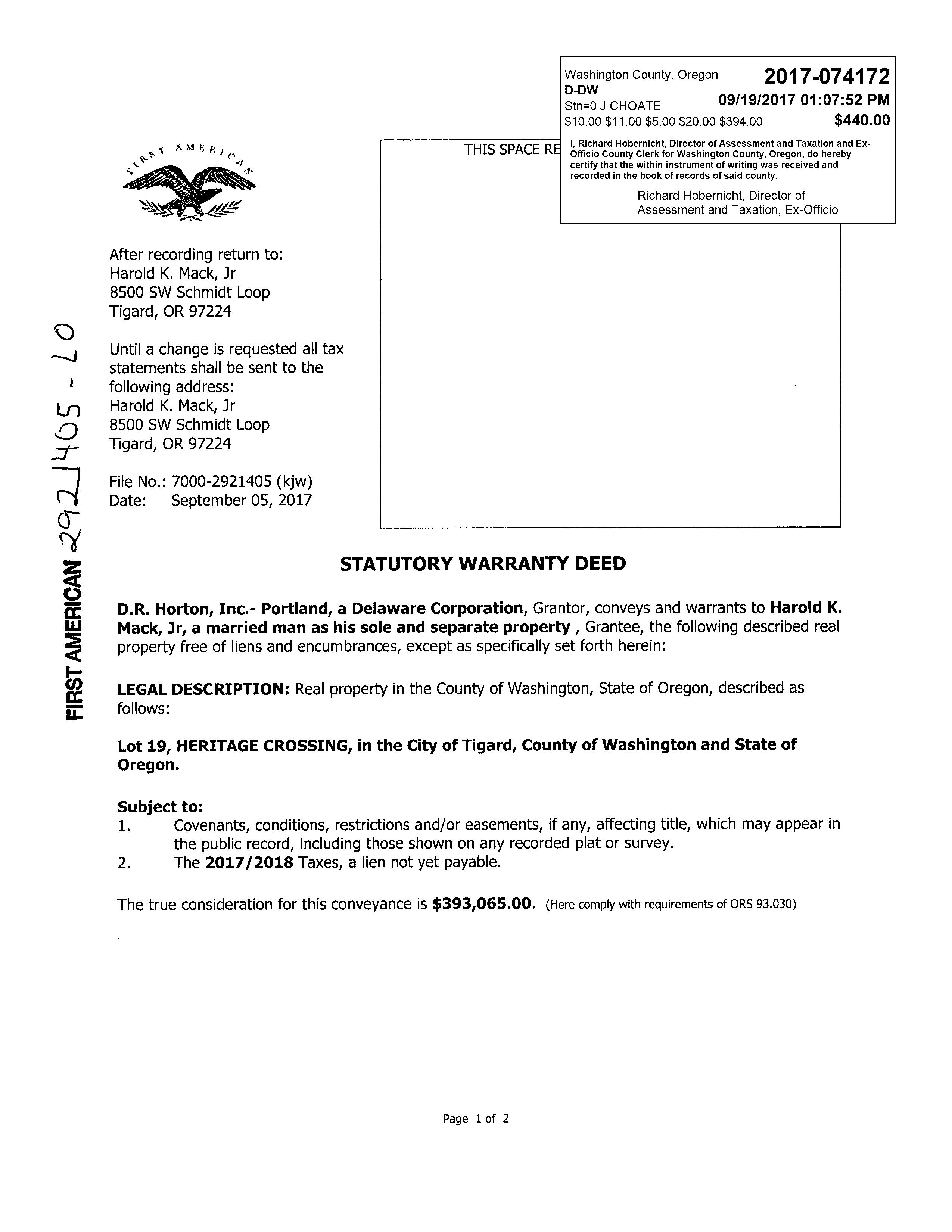 SW SCHMIDT LOOP Order ID: R97612424 City, State & Zip PORTLAND, OR 97224-1844