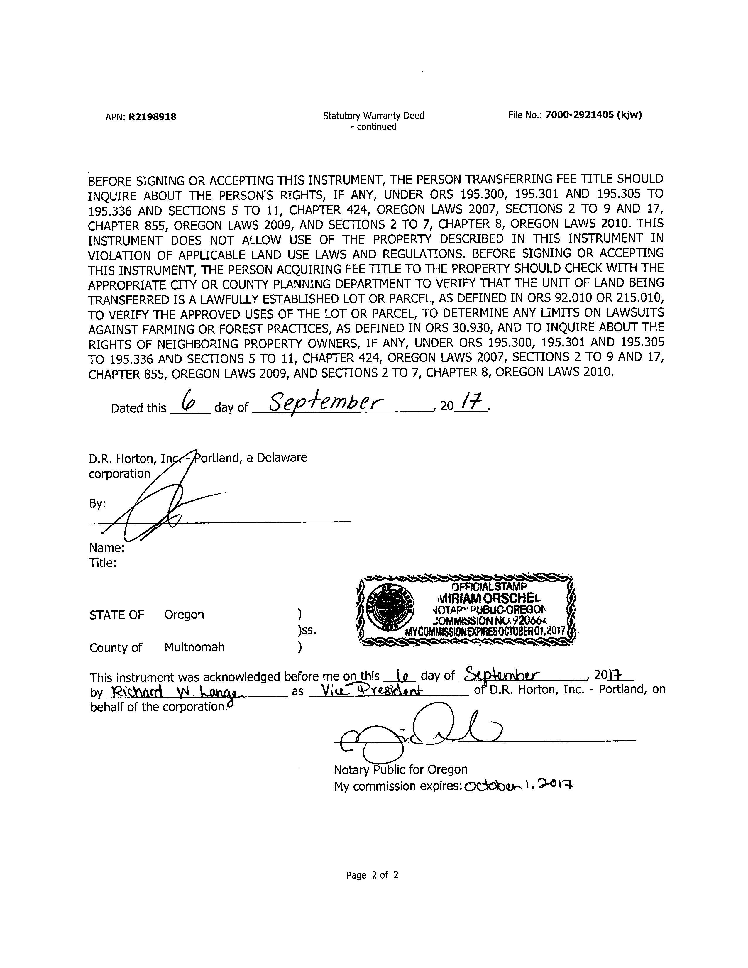 SALEDATE SELLER BUYER INST# SALEPRICE INSTTYPE 9/6/2017 Unknown Unknown 2017074172 $393,065 DW 10/31/2016 Unknown Unknown 2016098487 $9,920,000 DW If applicable, the described property is receiving special valuation based upon its use. Additional rollback taxes which may become due based on the provisions of the special valuation are not indicated in this listing.