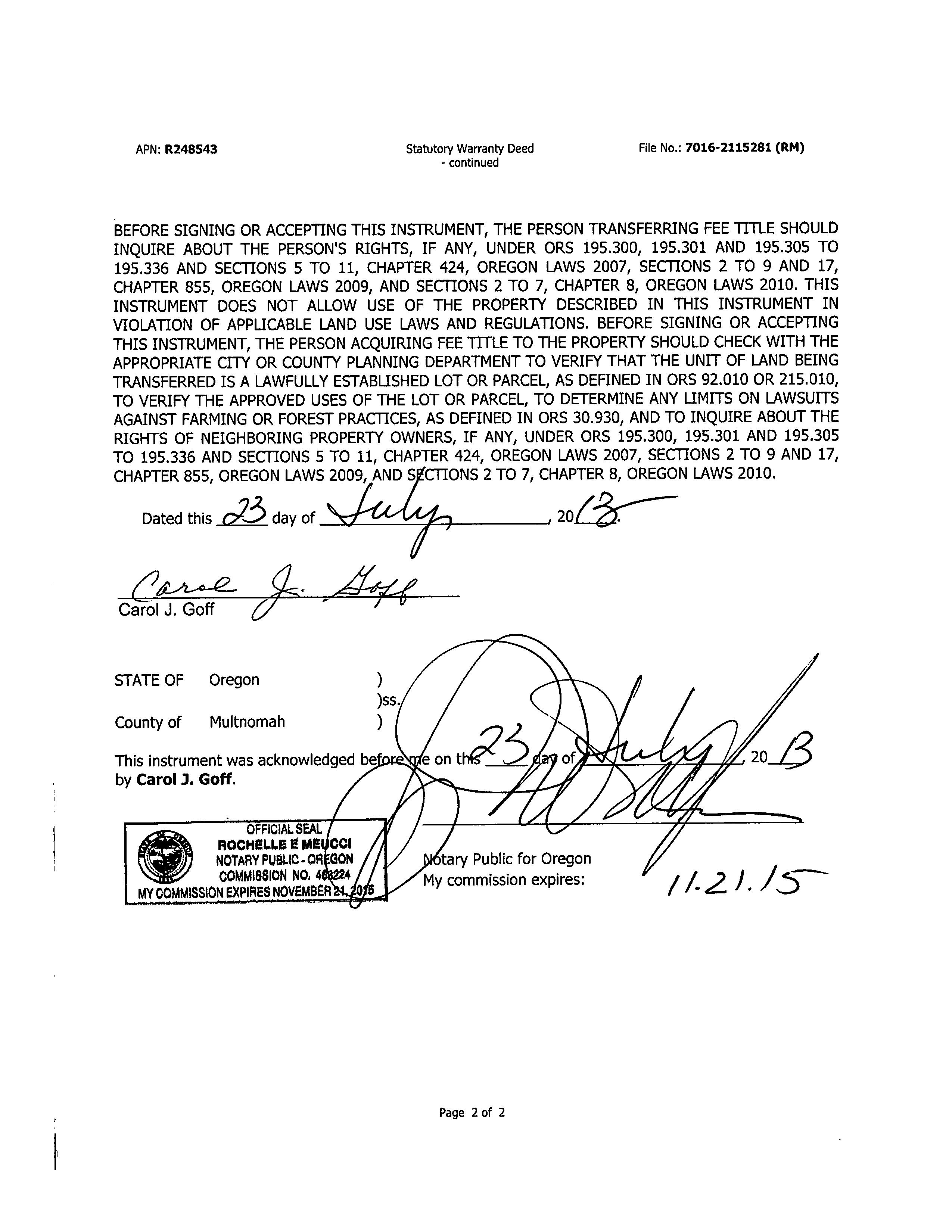 LANDSEGMENTS LANDNO LANDTYPE LANDSIZE L1 RESRESIDENTIALLAND 5,000Sq.ft TOTALS 5,000Sq.ft/0.11acres ASSESSEDVALUES YEAR IMPROVEMENTS LAND SPECIALMARKET/USE RMV M5VALUE EXEMPTIONS M50ASSESSED 2023 $207,220 $265,000 - / - $472,220 $472,220 $105,490 2022 $215,880 $265,000 - / - $480,880 $480,880 $102,420 2021 $213,720 $225,000 - / - $438,720 $438,720 $99,440 2020 $187,720 $195,000 - / - $382,720 $382,720 $96,550 2019 $189,890 $188,000 - / - $377,890 $377,890 $93,740 2018 $189,890 $180,000 - / - $369,890 $369,890 $91,010 2017 $187,720 $165,000 $0 / $0 $352,720 $352,720 $88,360 2016 $147,300 $150,000 - / $0 $297,300 $297,300 $85,790 2015 $135,020 $121,000 - / $0 $256,020 $256,020 $83,300 2014 $110,460 $100,000 $0 / $0 $210,460 $210,460 $80,880 2013 $90,620 $88,500 $0 / $0 $179,120 $179,120 $78,530 SALESHISTORY DEED SELLER BUYER INSTR# DATE CONSIDERATIONAMOUNT WD GOFF,CAROLJ ALBERSON,ANDREWR&GAINES,JAIMER 2013101825 7/23/2013 $229,000 INST GOFF,CAROLJ GOFF,CAROLJ BP02120245? Improvement #1 Improvement Type Building Type Class - SINGLEFAMILYRESIDENTIAL 2ORMORESTYW/BSMT 3.0