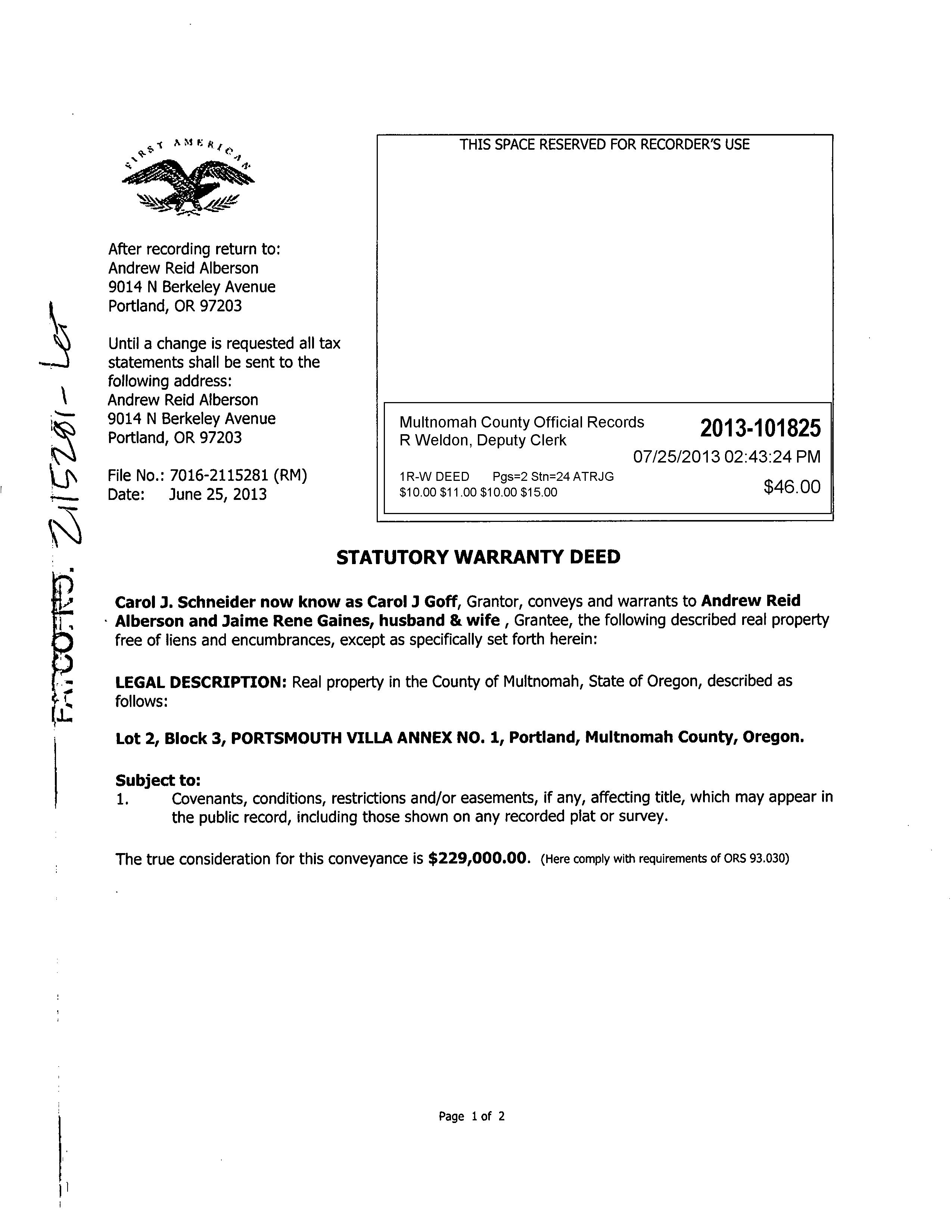 ALBERSON,ANDREWR&GAINES,JAIMER 9014NBERKELEYAVE,PORTLAND,OR