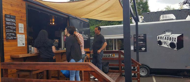 Variety of specialty foodcarts & outside beer garden. Functions as a community-supported outside concert venue.