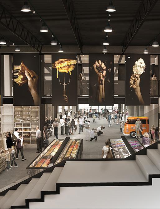 31 food carts with a wide variety of food and beverage options to choose from, including a speakeasy bar with indoor/outdoor seating.