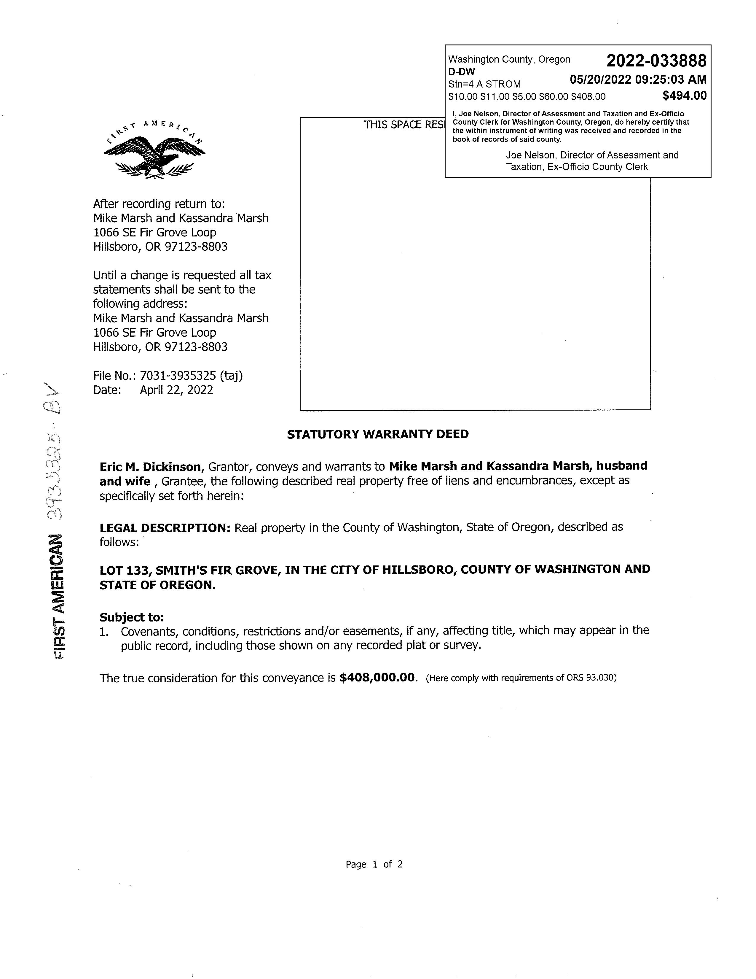 MailingAddress 1066SEFIRGROVELOOP,HILLSBORO,OR97123-8803