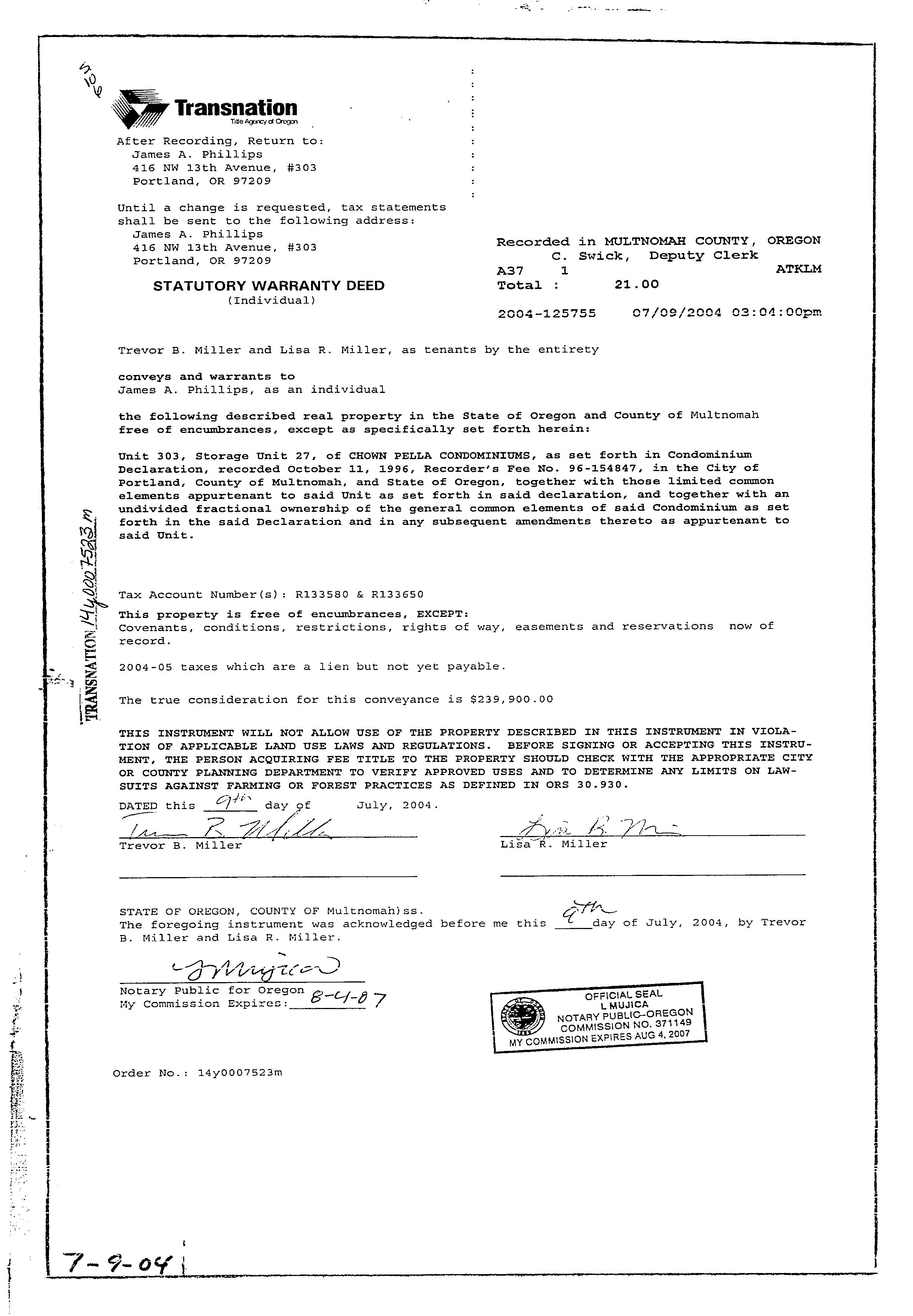Mail Address: 416 NW 13th Ave #303, Portland OR 97209 *Owner Occupied