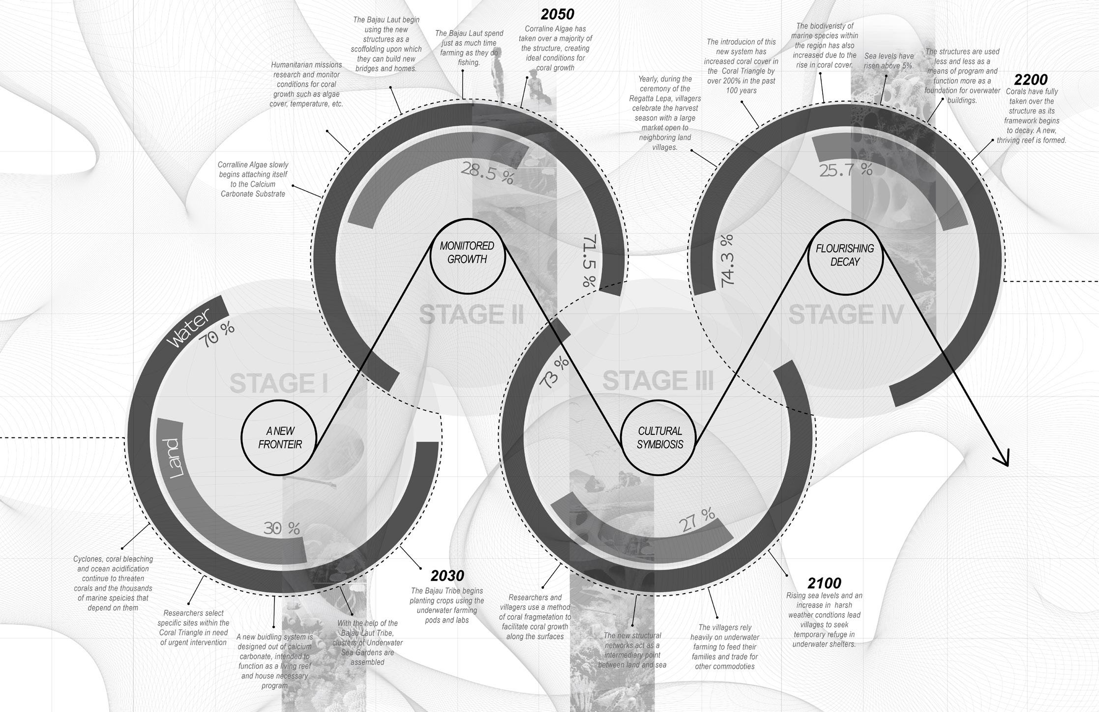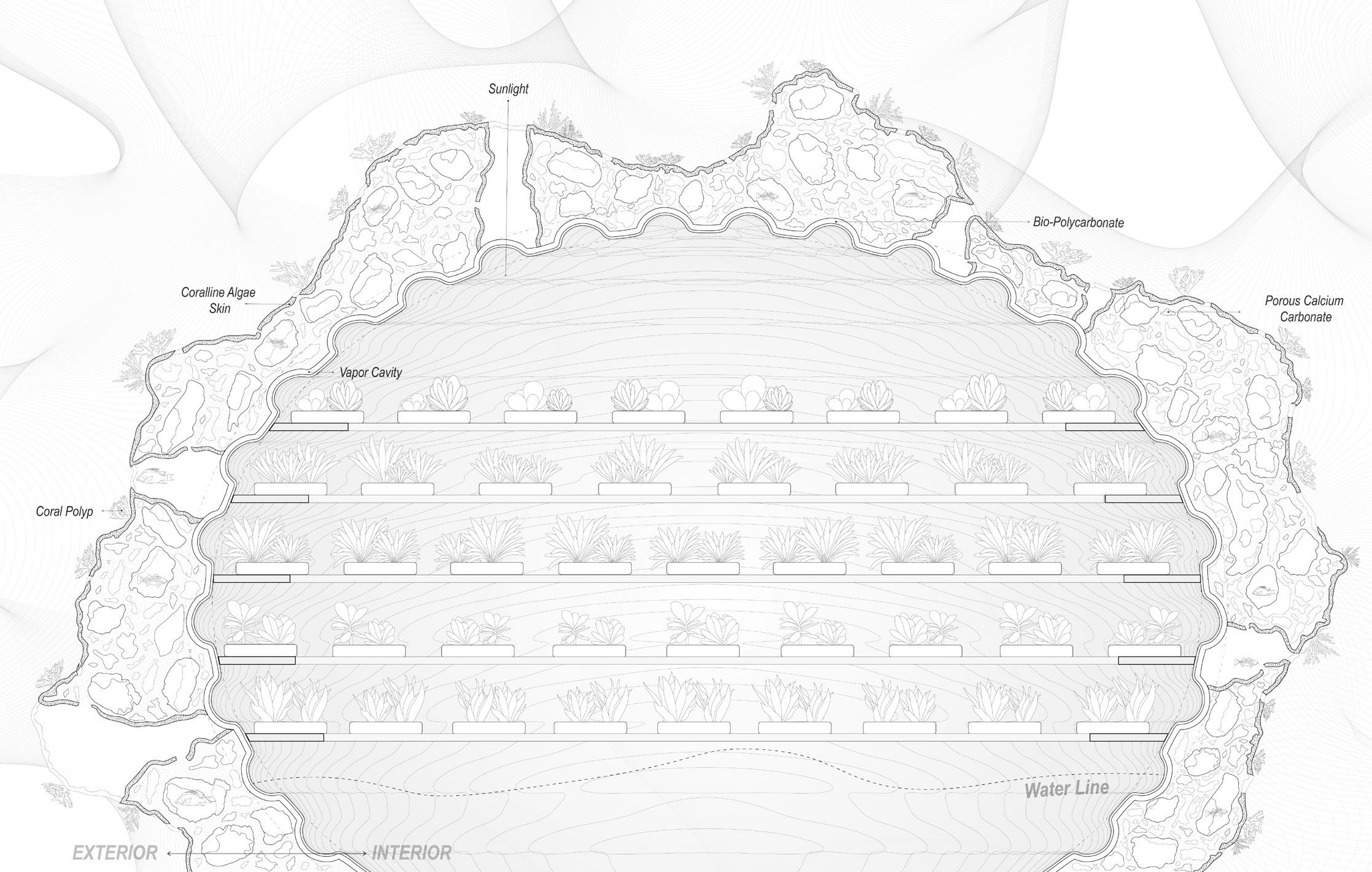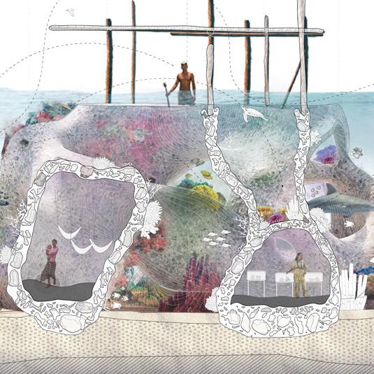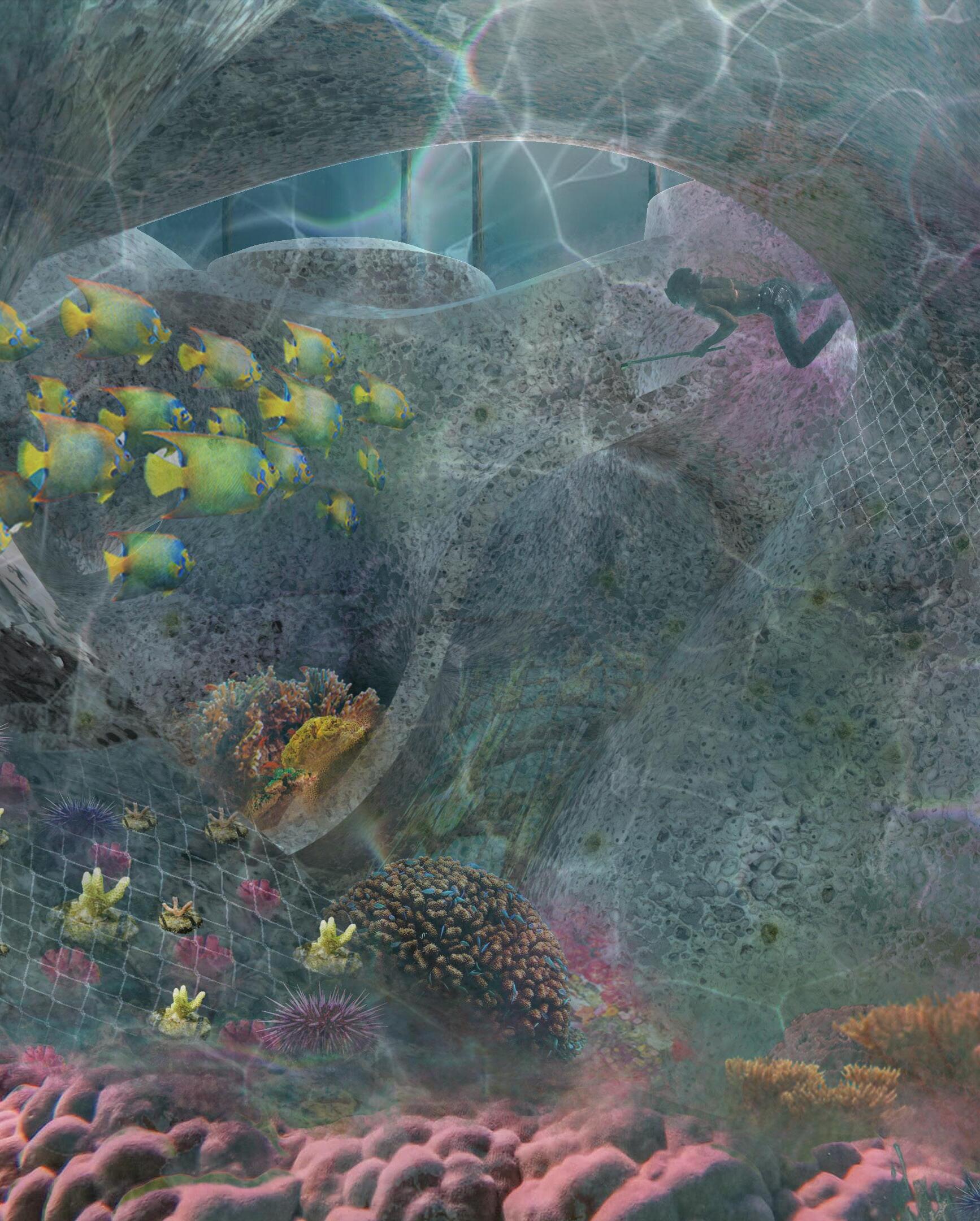 By understanding the life cycle of corals and the formation of coral reefs, we believe architectural interventions can help improve the living conditions of communities directly affected by coral loss. We propose a modular additive system designed to facilitate reef restoration, integrating architectural programs such as underwater farming, emergency shelters, and trading markets for local production.
