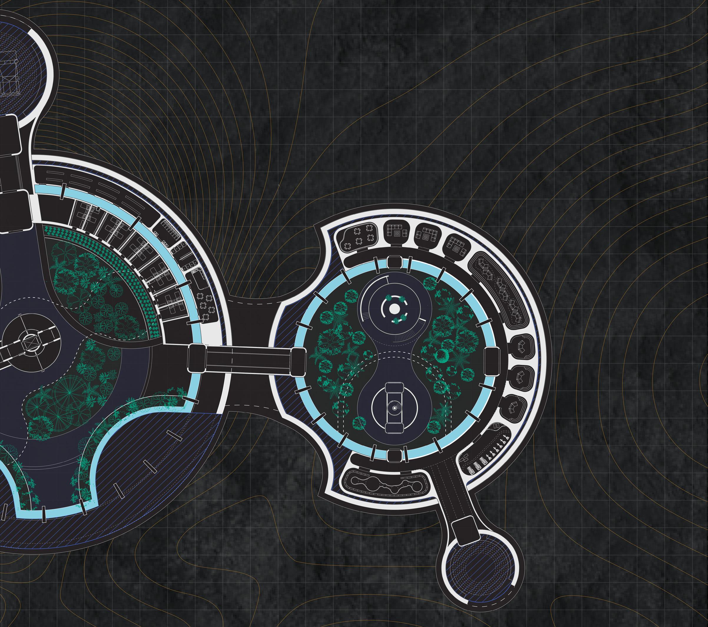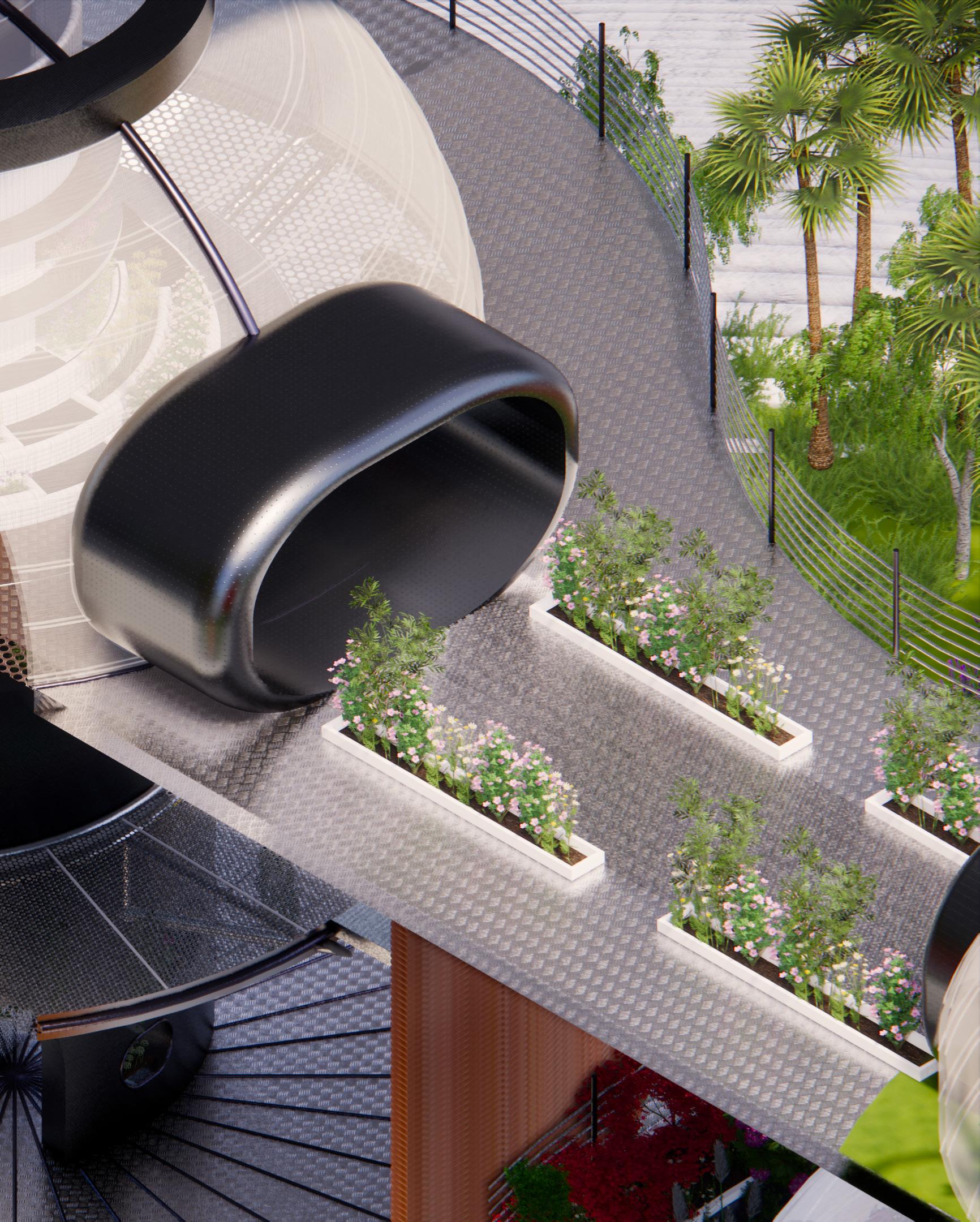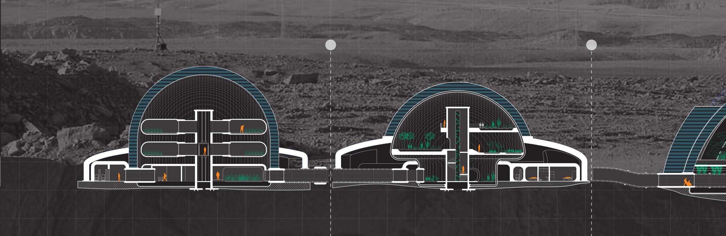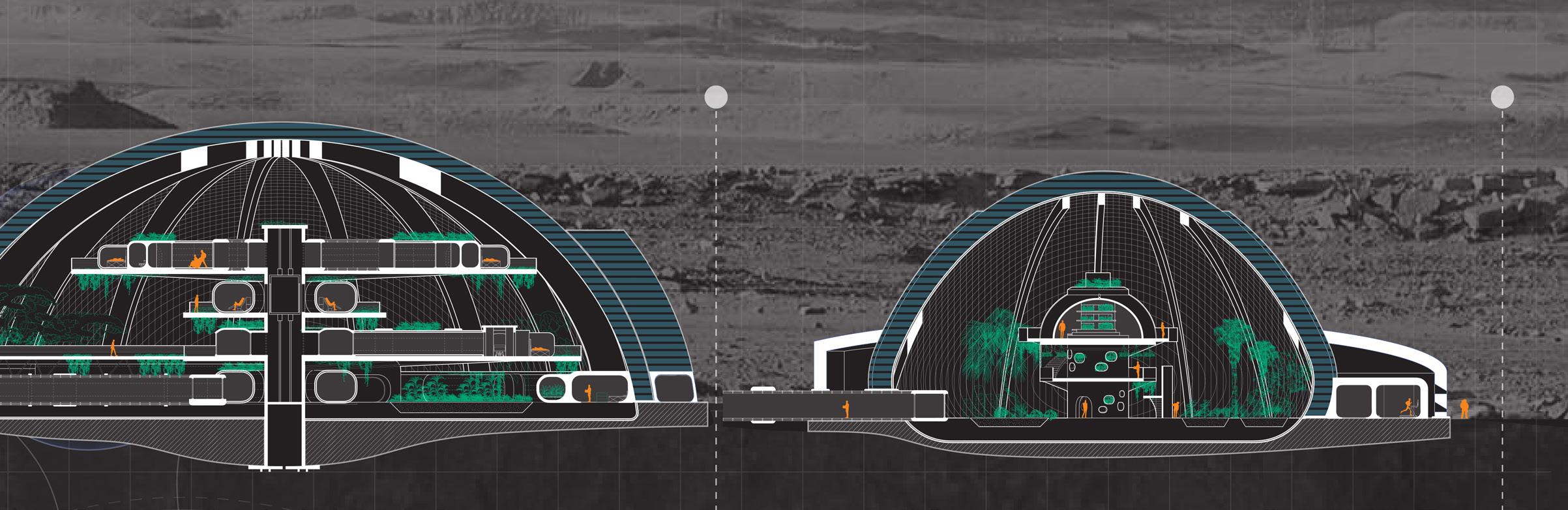 Located on Mars’ Deuteronilus Mensae, a maze of canyons and valleys where traces of buried glacier ice have been detected, the “Medicinal Botanical Gardens” project proposes a preventive and curative facility for radiation exposure illnesses resulting from the high radiation levels in the Martian atmosphere. In alignment with NASA’s “ARTEMIS: Moon to Mars” expedition, we envision this project taking shape in the year 2080.