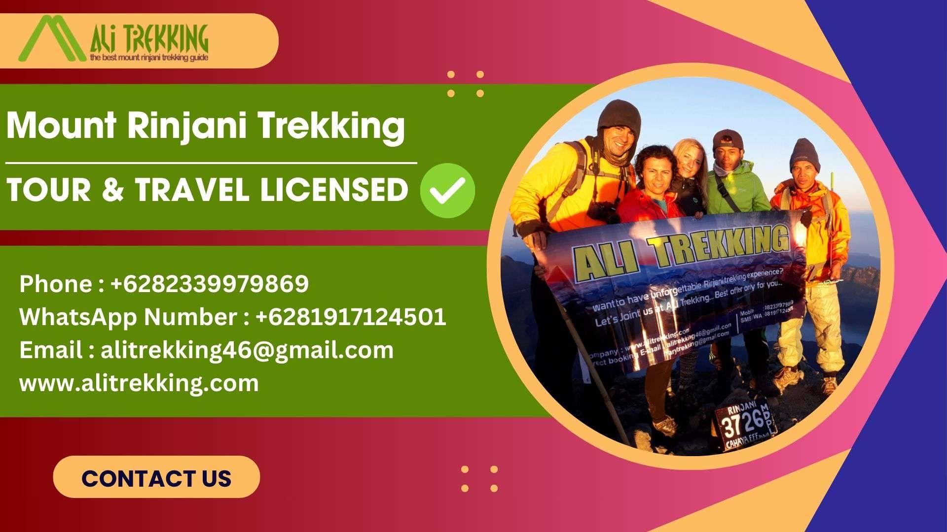 Discover Lombok trekking packages with Ali Trekking. Enjoy expert guidance and stunning landscapes. Phone : +6282339979869WhatsApp Number : +6281917124501Email : alitrekking46@gmail.com TOUR & TRAVEL LICENSEDCV. ALI TREKKING LOMBOKW25.U1/337/HK.03/3/2017 National Park ( IUPJWA ) Number :SK. 687/T. 39/TU /KSA/5/2018