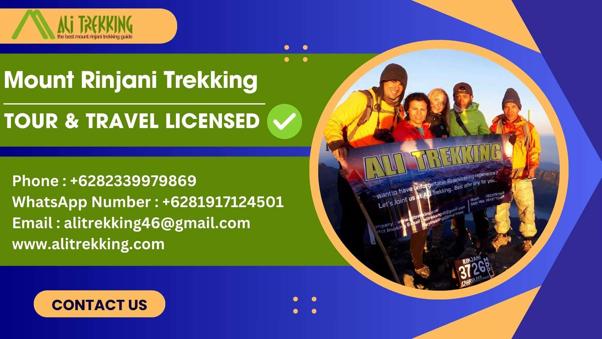 Explore top options for Mount Rinjani trekking tours with Ali Trekking. Expert guidance and beautiful landscapes. Phone : +6282339979869WhatsApp Number : +6281917124501Email : alitrekking46@gmail.com TOUR & TRAVEL LICENSEDCV. ALI TREKKING LOMBOKW25.U1/337/HK.03/3/2017 National Park ( IUPJWA ) Number :SK. 687/T. 39/TU /KSA/5/2018