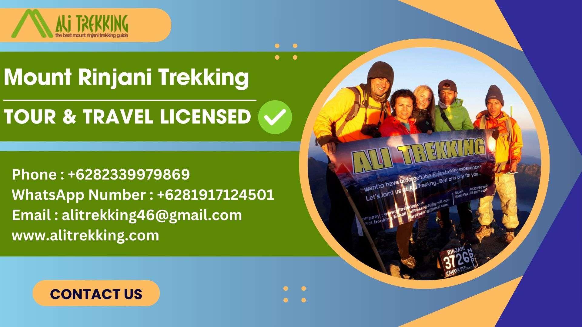 Enjoy a thrilling Rinjani adventure with Ali Trekking. Professional guides and unforgettable landscapes. Phone : +6282339979869WhatsApp Number : +6281917124501Email : alitrekking46@gmail.com TOUR & TRAVEL LICENSEDCV. ALI TREKKING LOMBOKW25.U1/337/HK.03/3/2017 National Park ( IUPJWA ) Number :SK. 687/T. 39/TU /KSA/5/2018