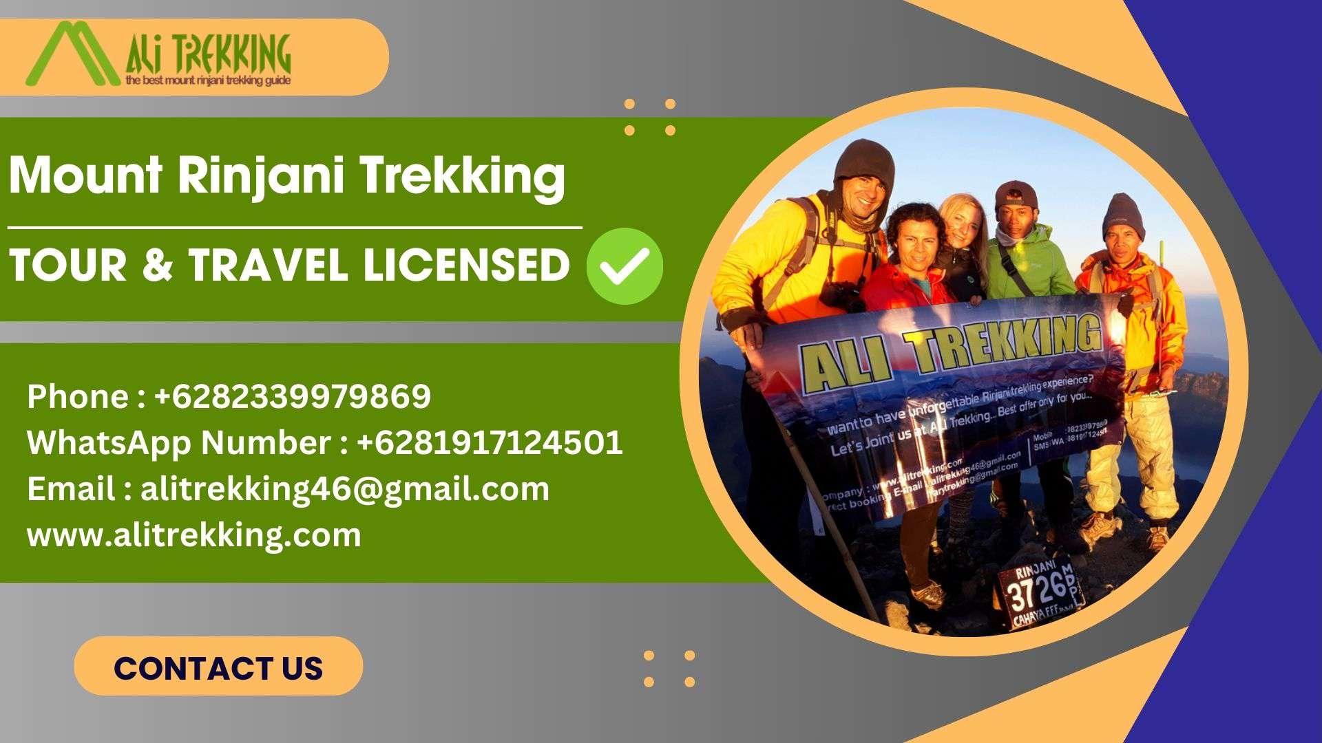 Get a guide to Rinjani trekking costs and packages with Ali Trekking. Affordable options and expert support. Phone : +6282339979869WhatsApp Number : +6281917124501Email : alitrekking46@gmail.com TOUR & TRAVEL LICENSEDCV. ALI TREKKING LOMBOKW25.U1/337/HK.03/3/2017 National Park ( IUPJWA ) Number :SK. 687/T. 39/TU /KSA/5/2018